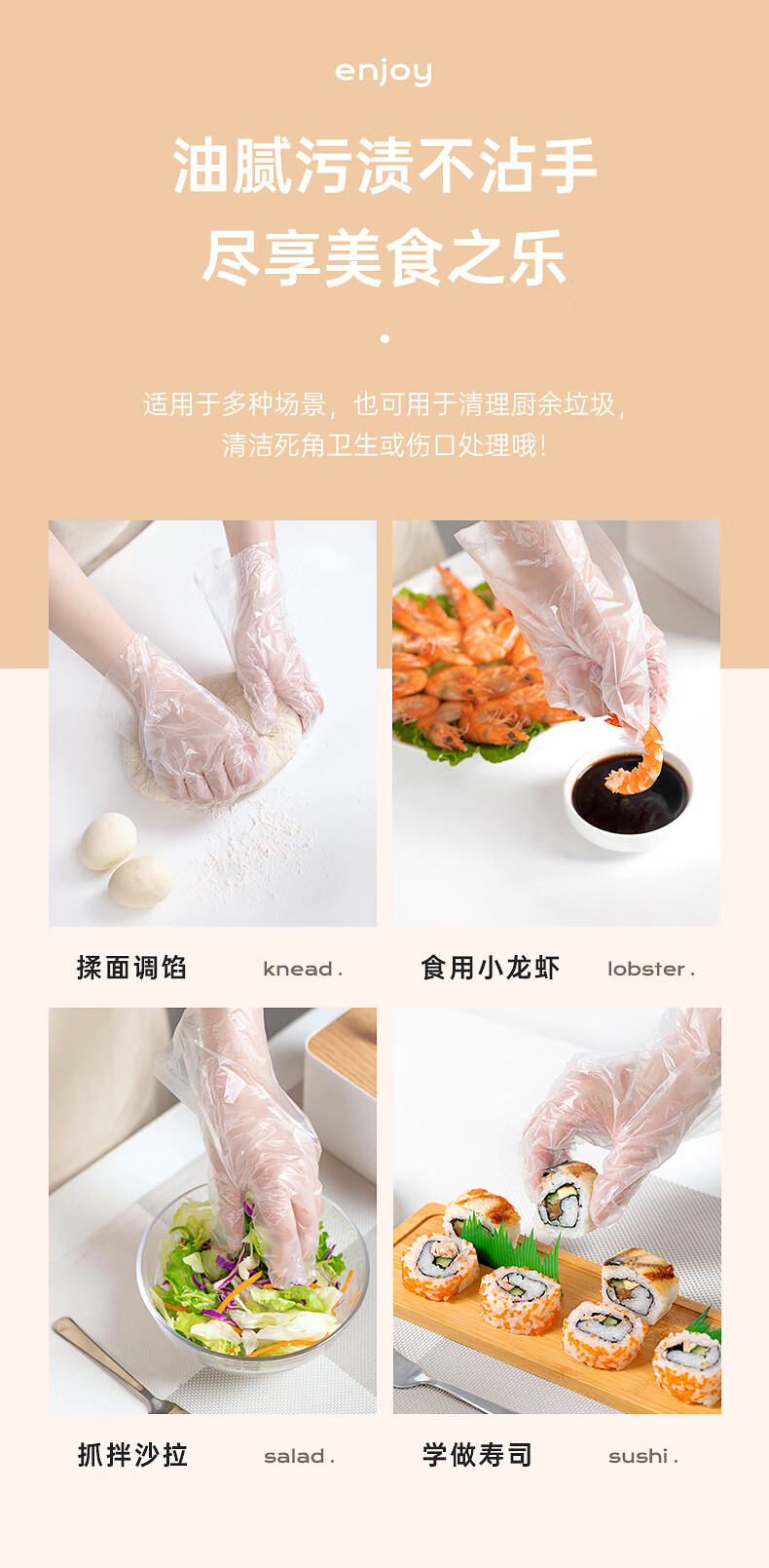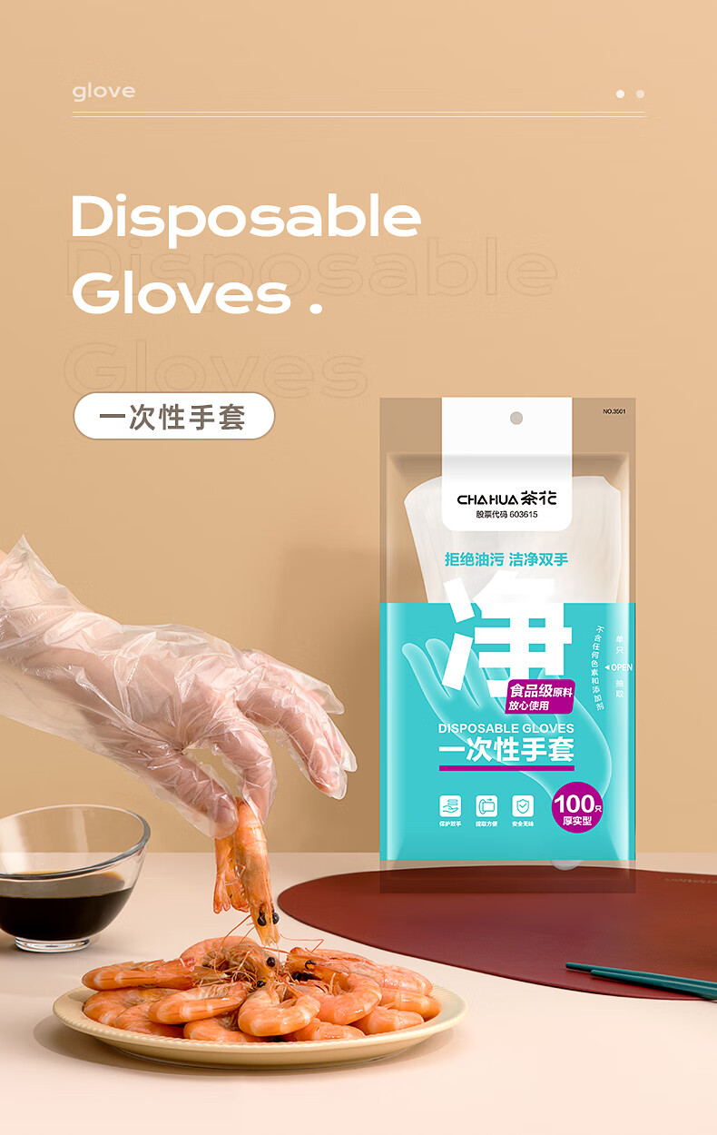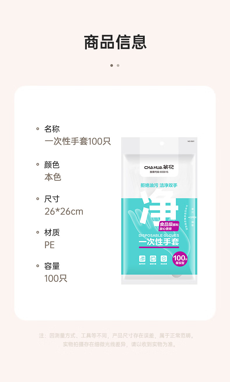 茶花(CHAHUA) PE一次性手套 100只 一次性手套 白色(单位:袋)