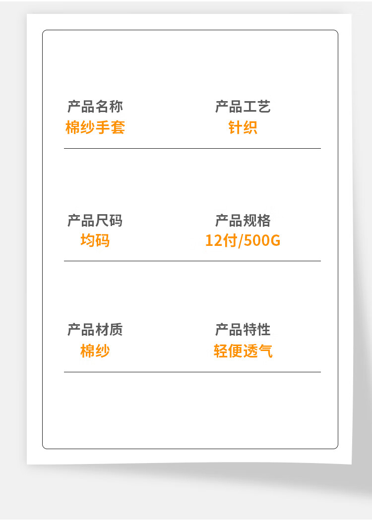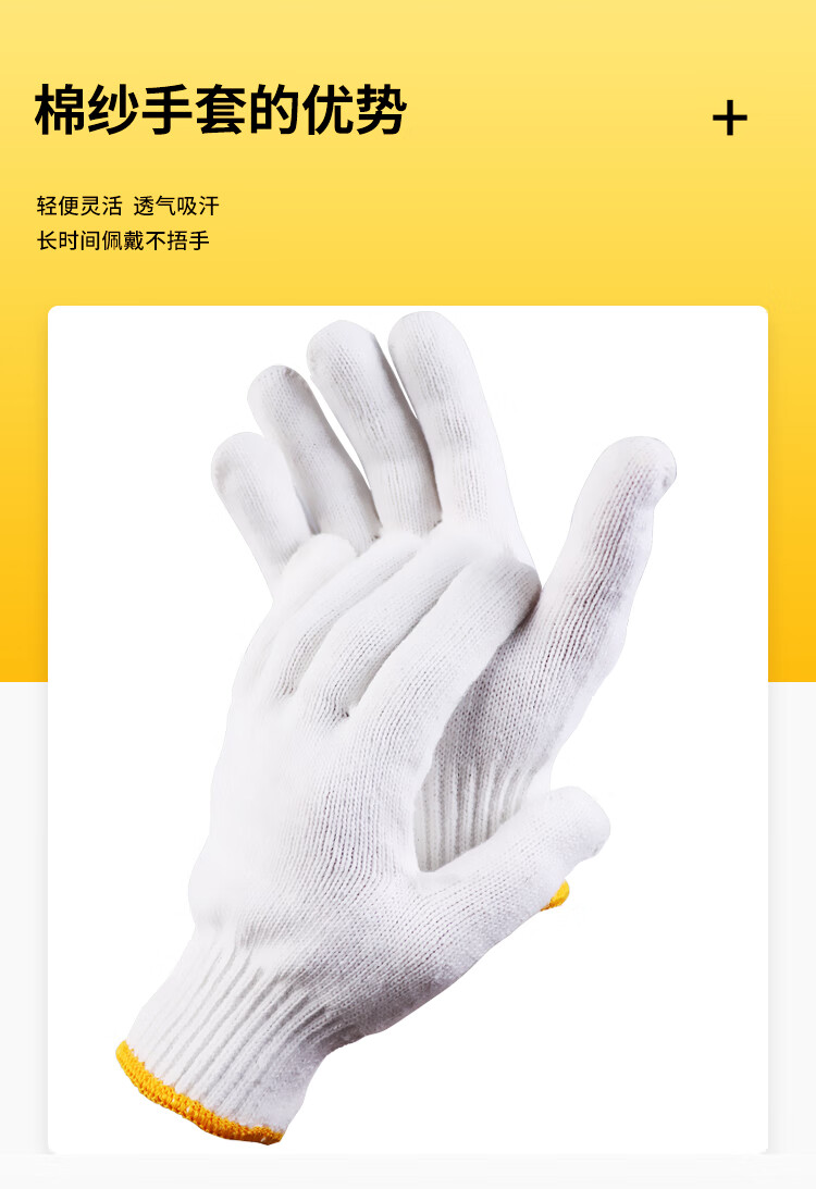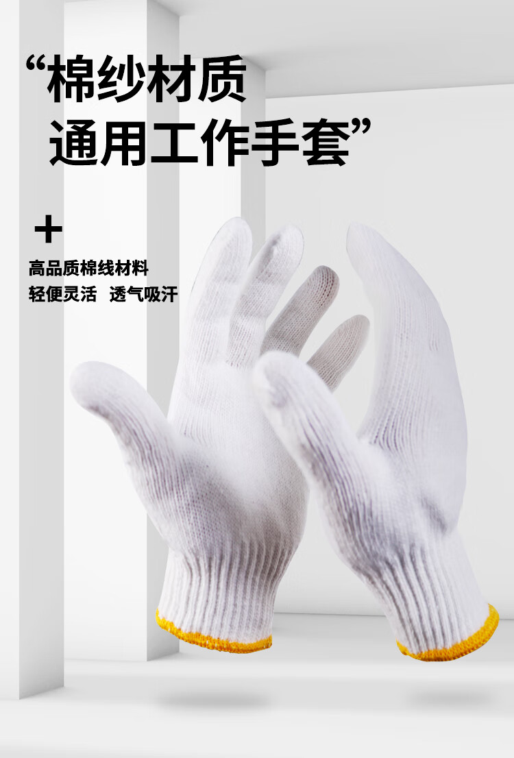 百舸(BAIGE) 棉线劳保手套 12双 劳保手套 白色(单位:包)