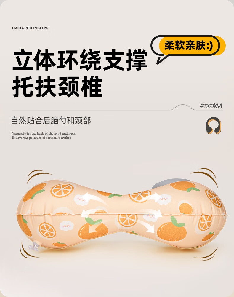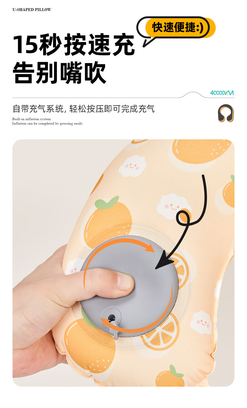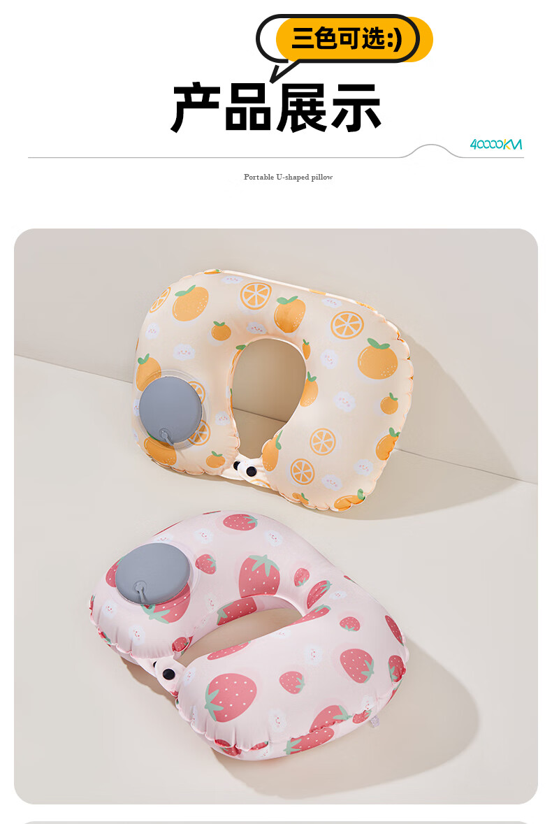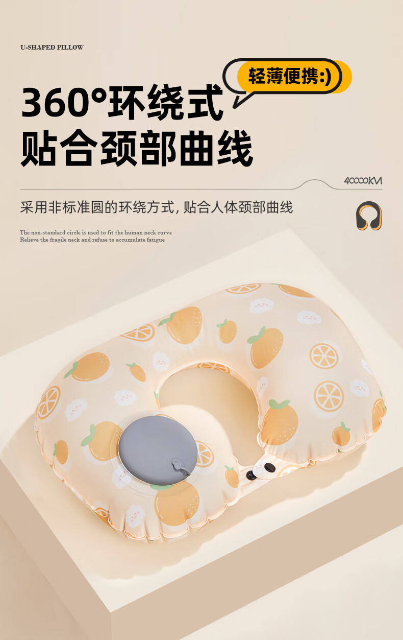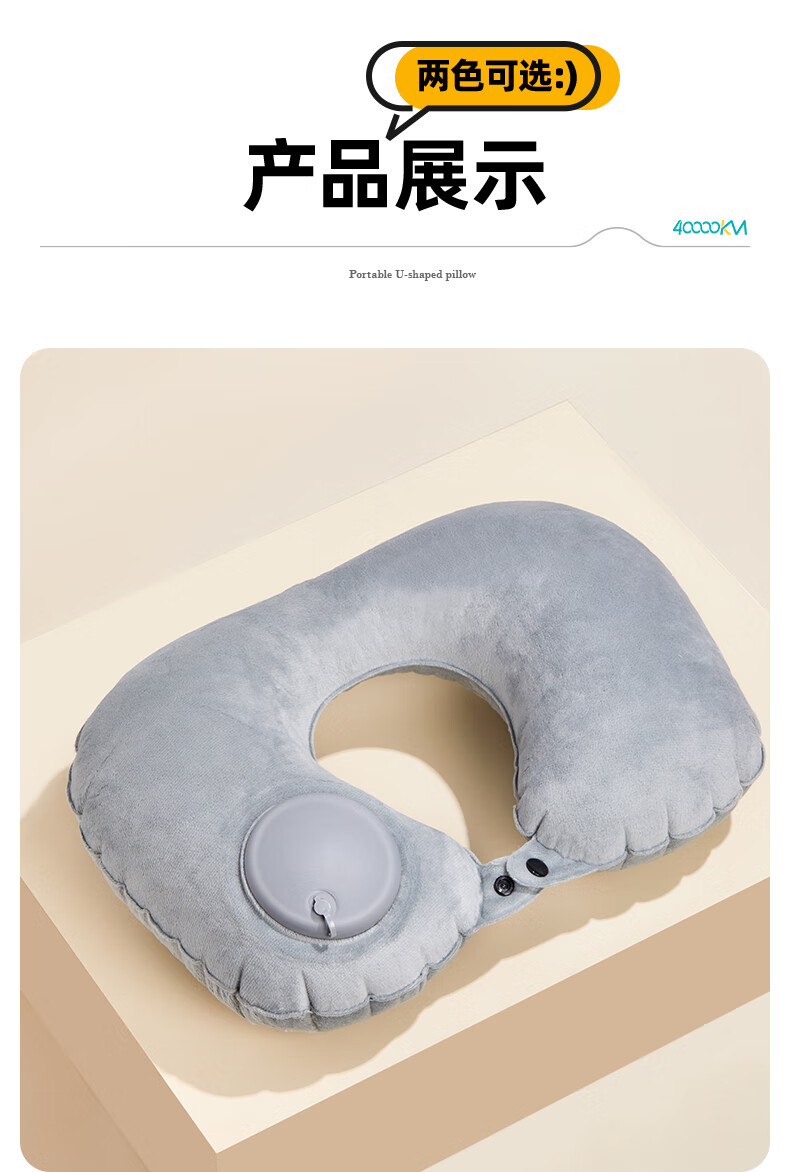 四万公里 按压充气u型枕 40*28cm 充气u型枕头 粉色(单位:个)