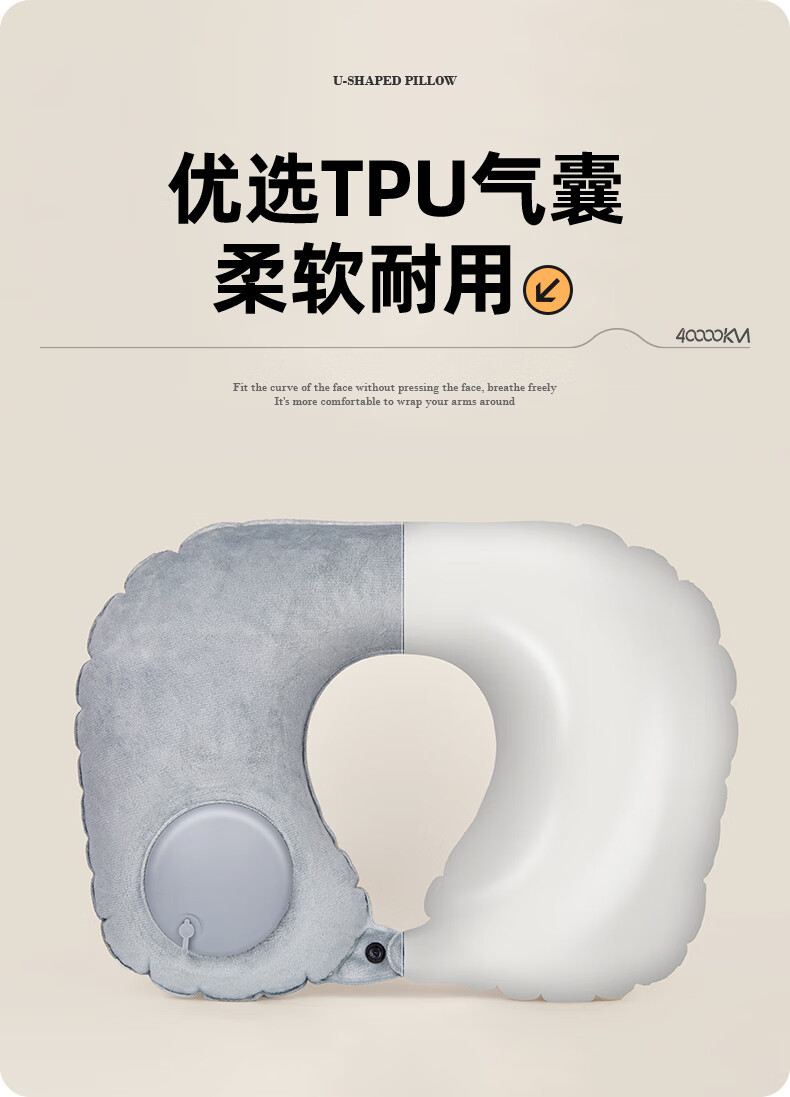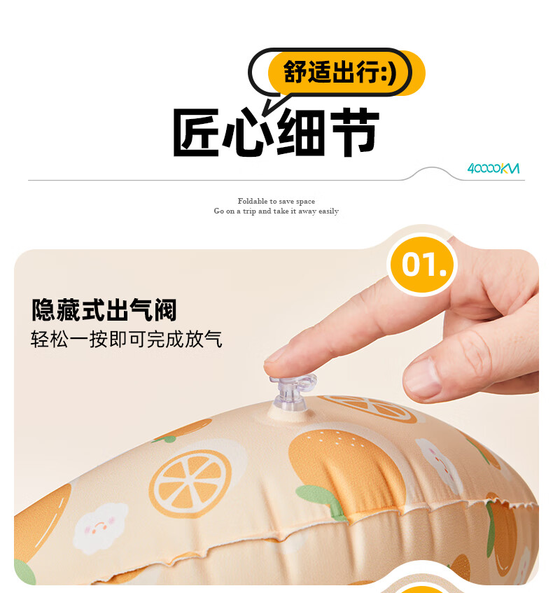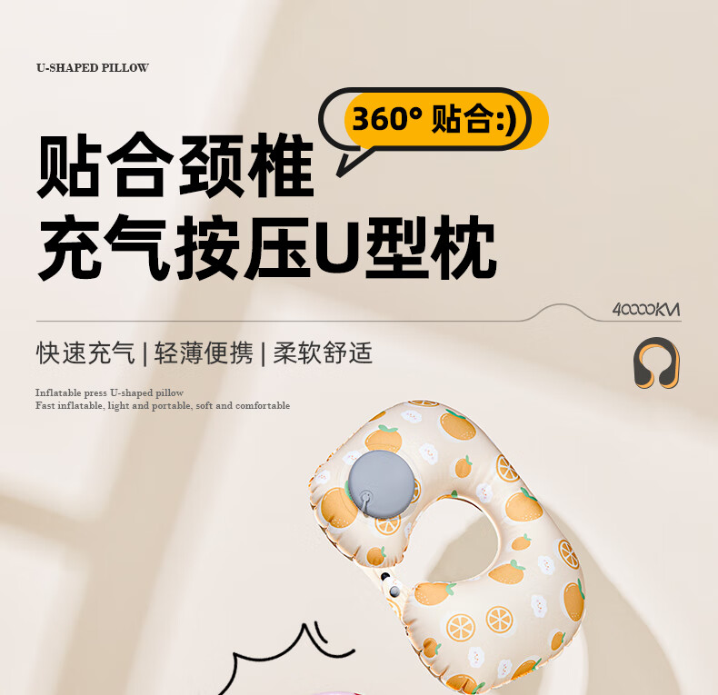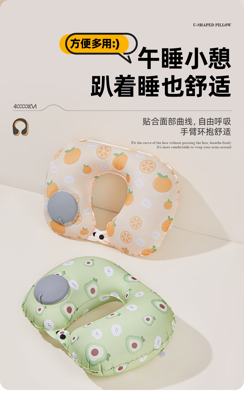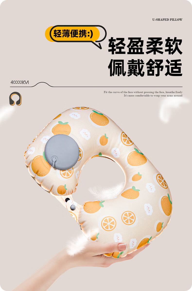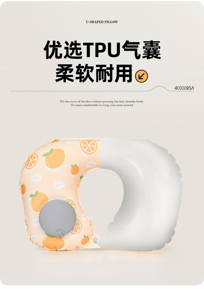 四万公里 按压充气u型枕 40*28cm 充气u型枕头 粉色(单位:个)