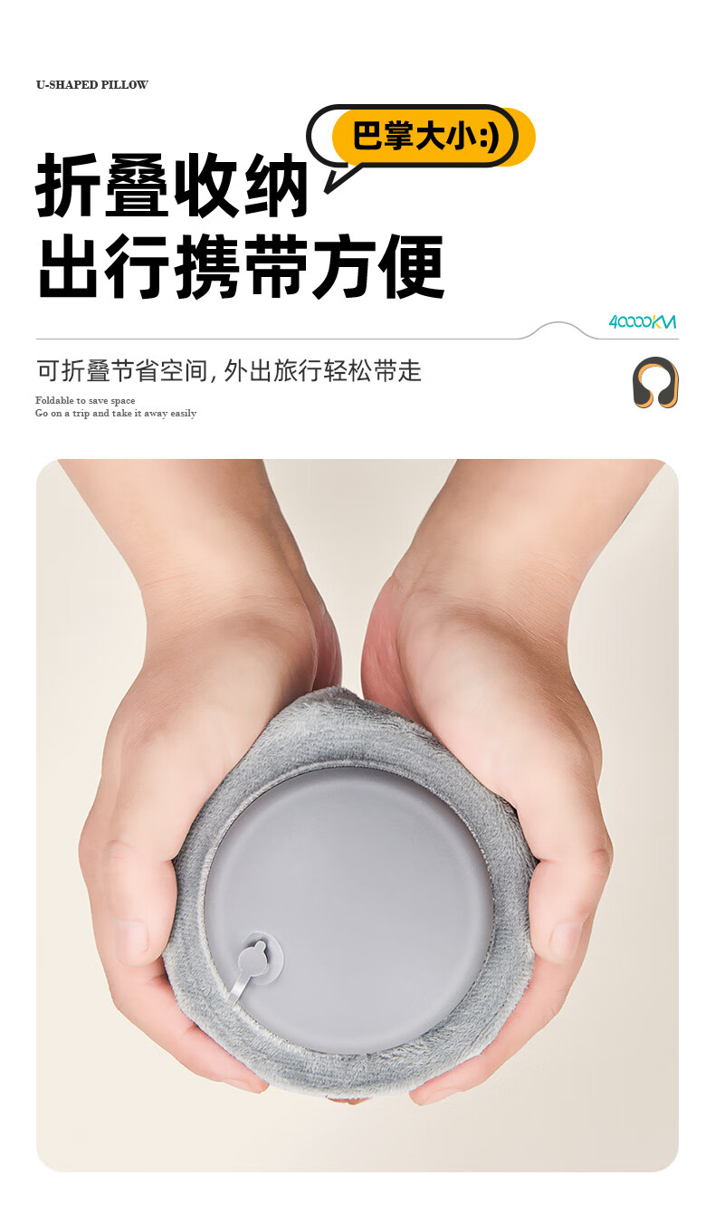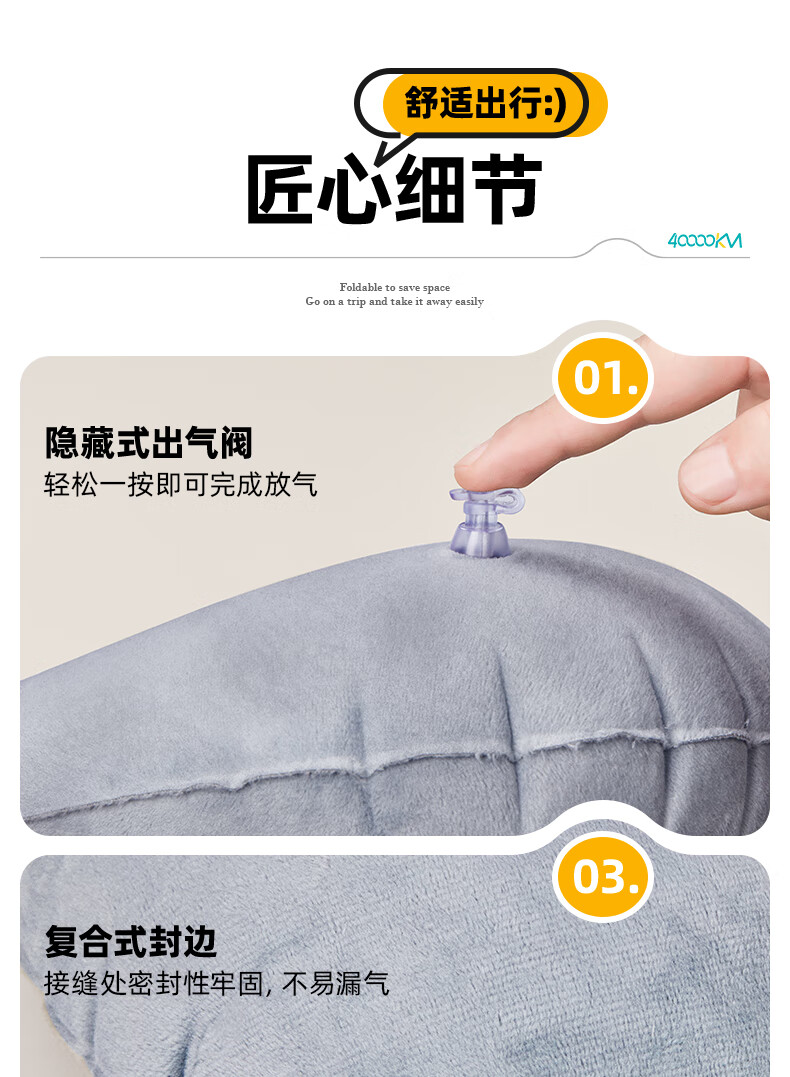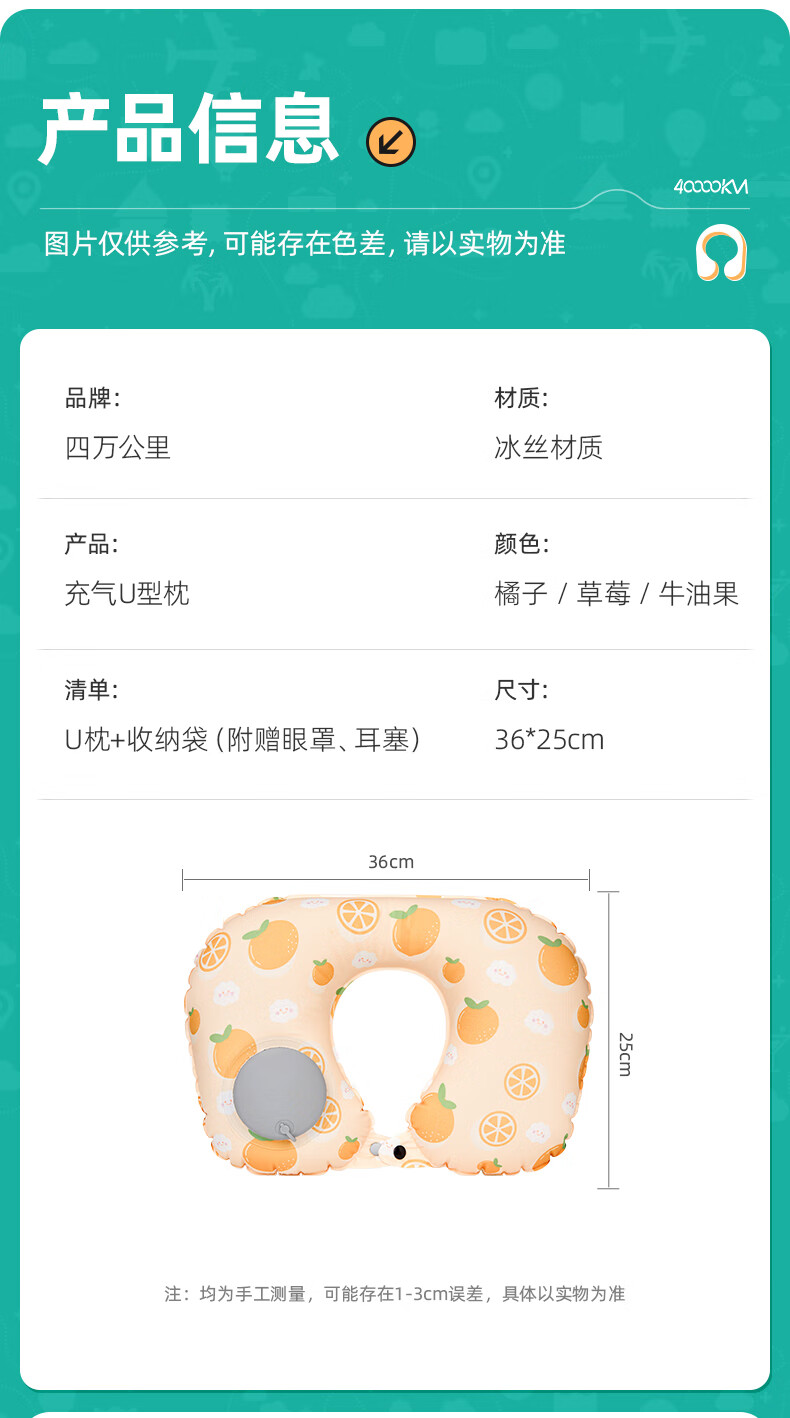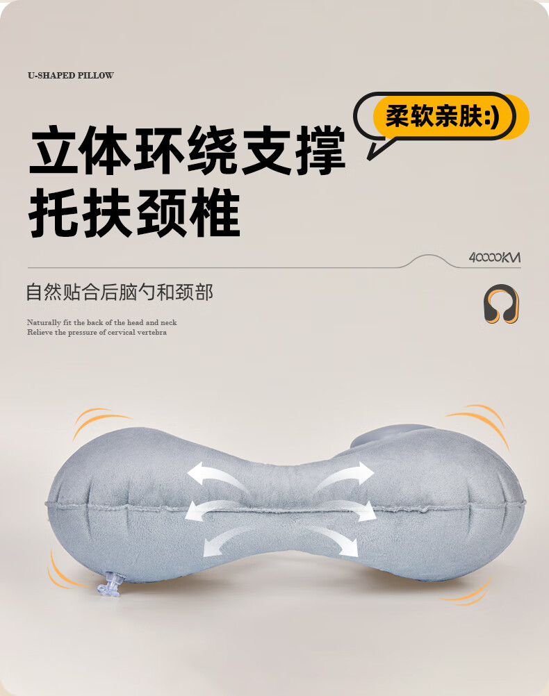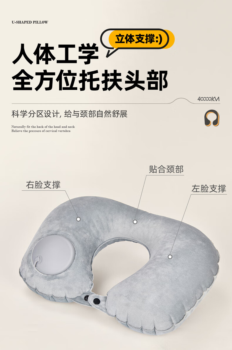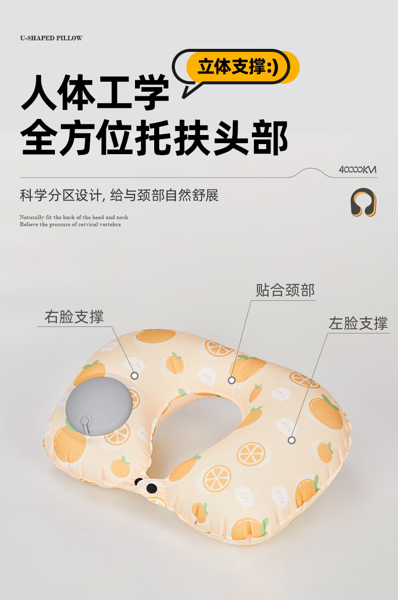 四万公里 按压充气u型枕 40*28cm 充气u型枕头 粉色(单位:个)