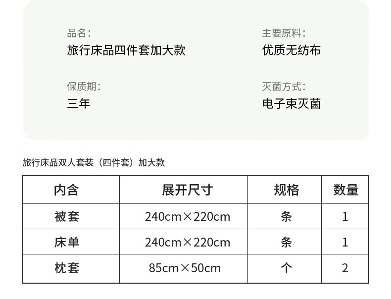 四万公里 加厚被罩枕套 三件套 一次性床单 蓝色(单位:套)