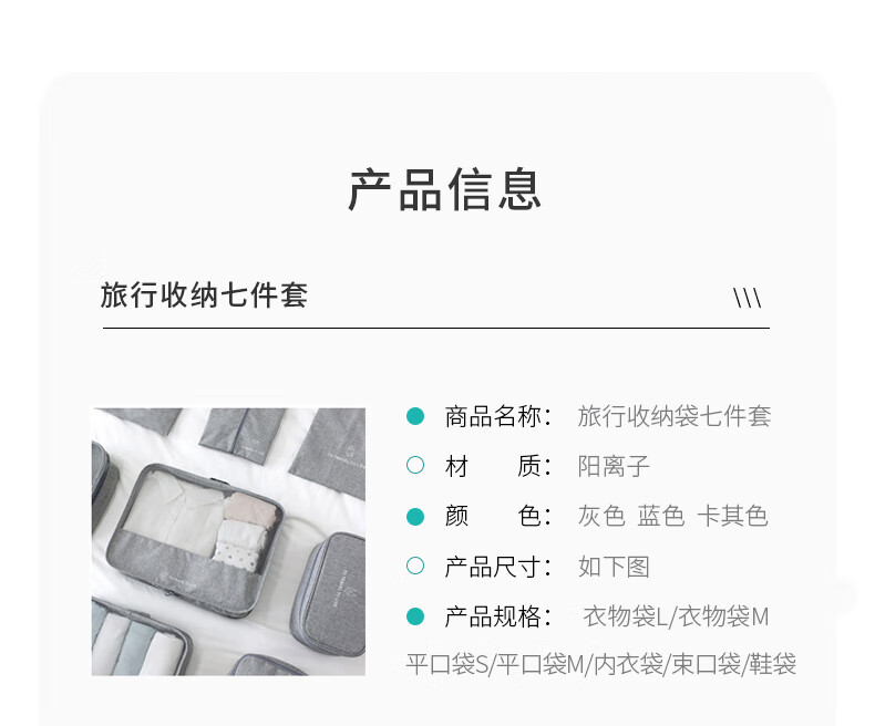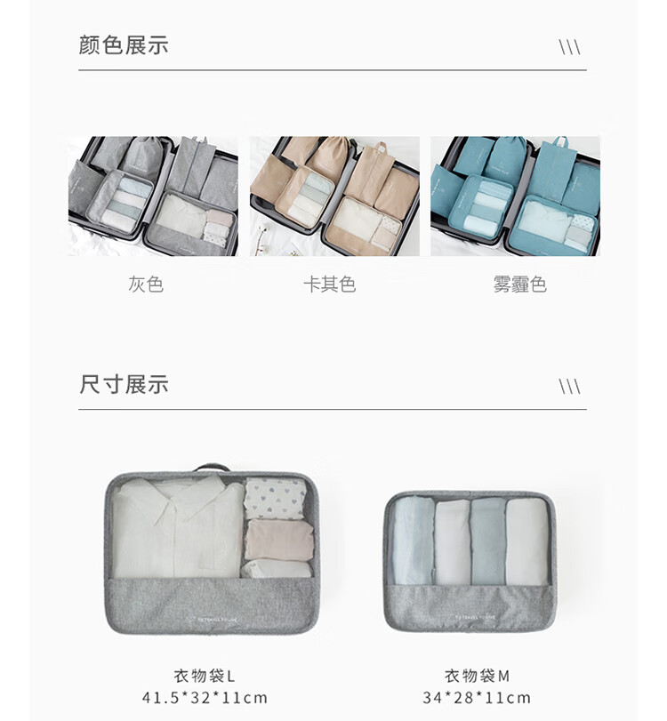 四万公里 SW7185 旅行收纳袋七件套 旅行收纳袋 灰色(单位:套)