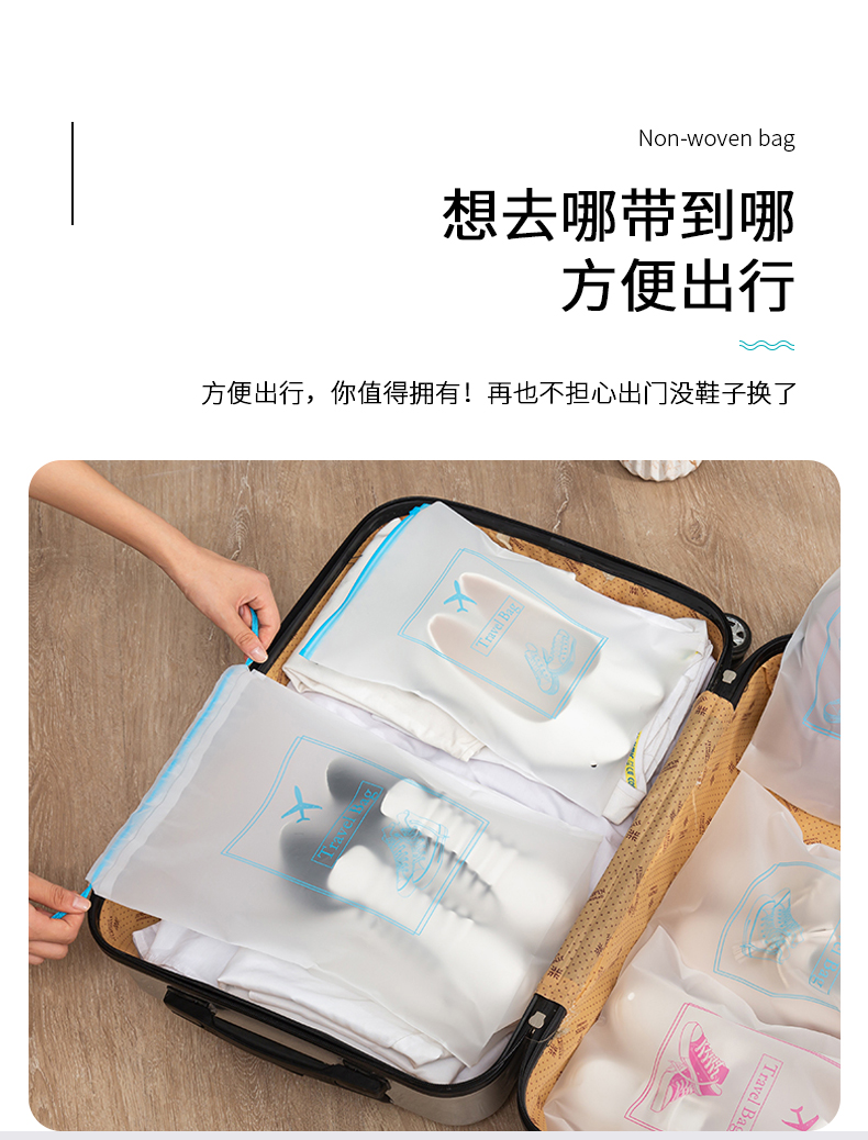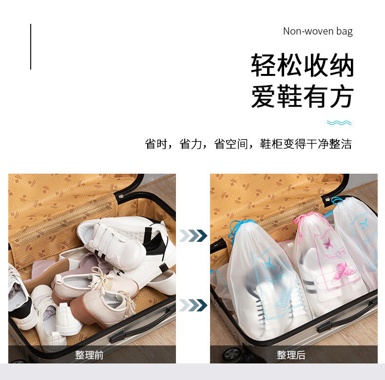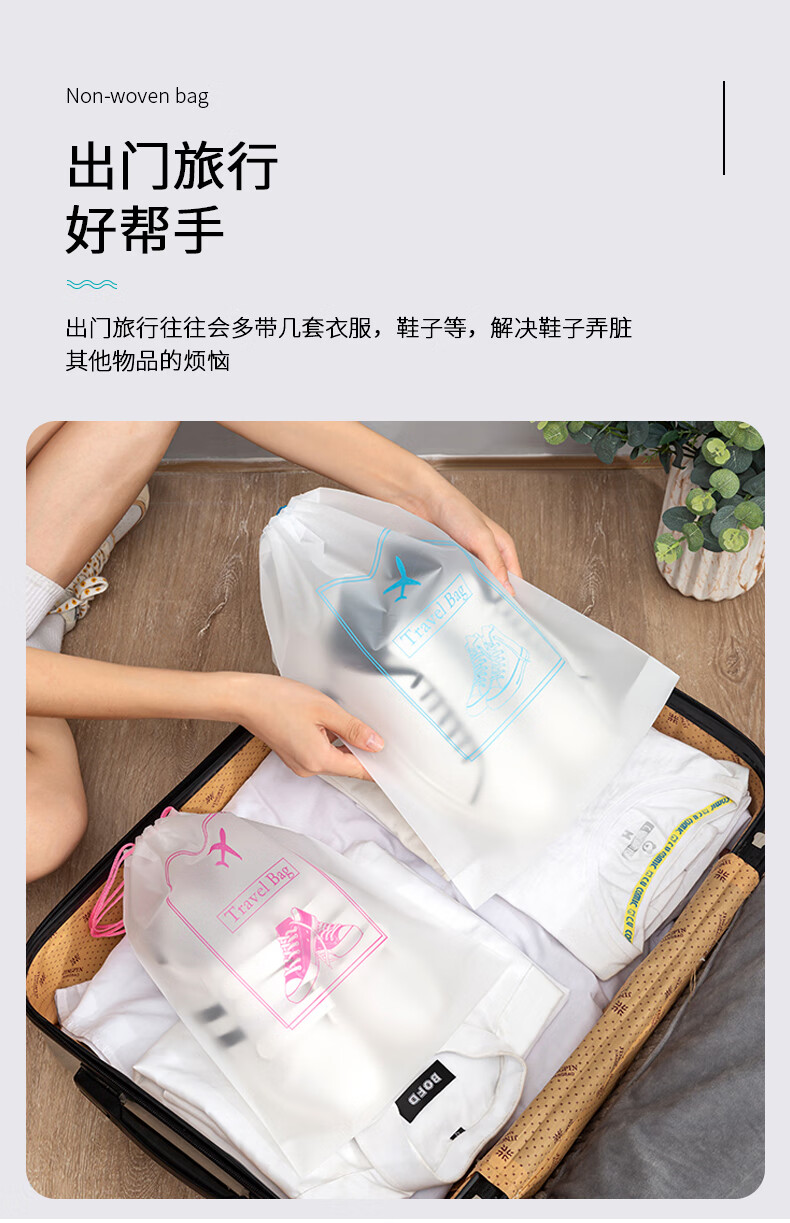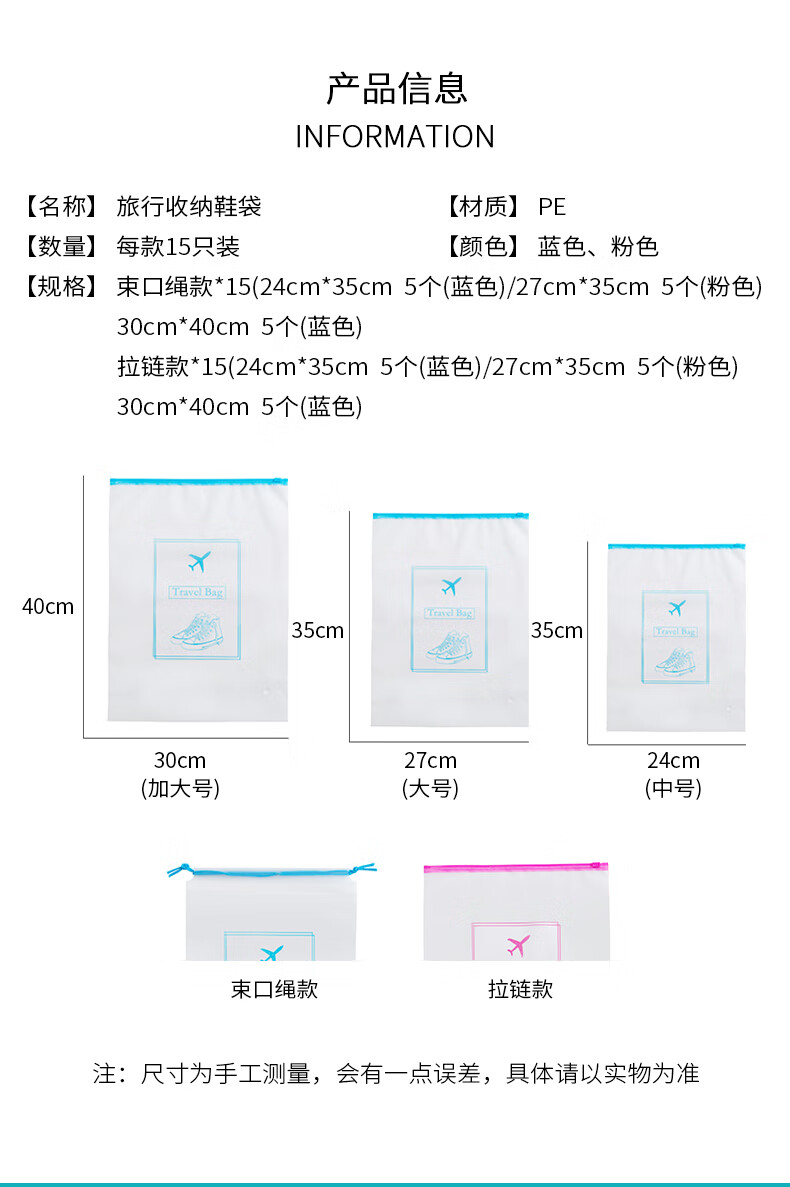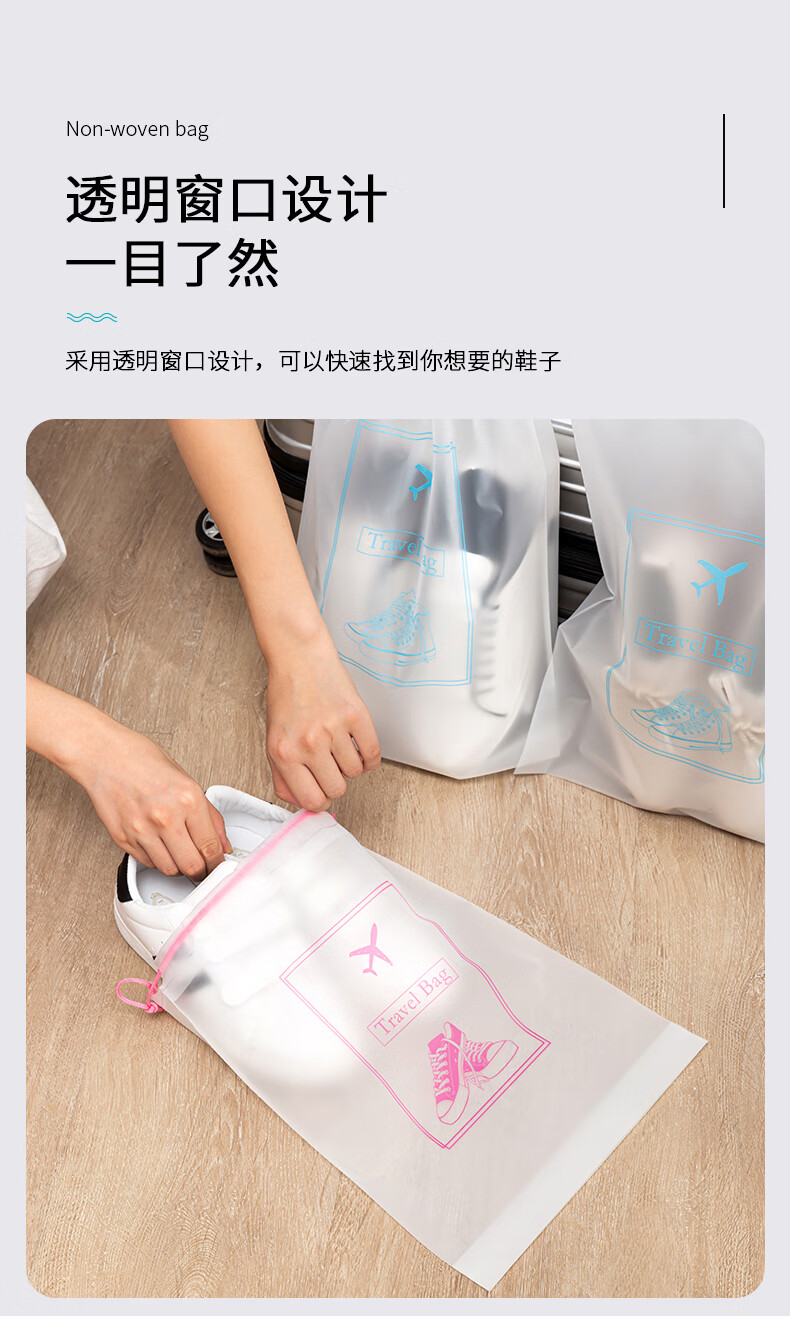 四万公里 SW7385 大中小抽绳款15个装 鞋子收纳 粉蓝色(单位:组)
