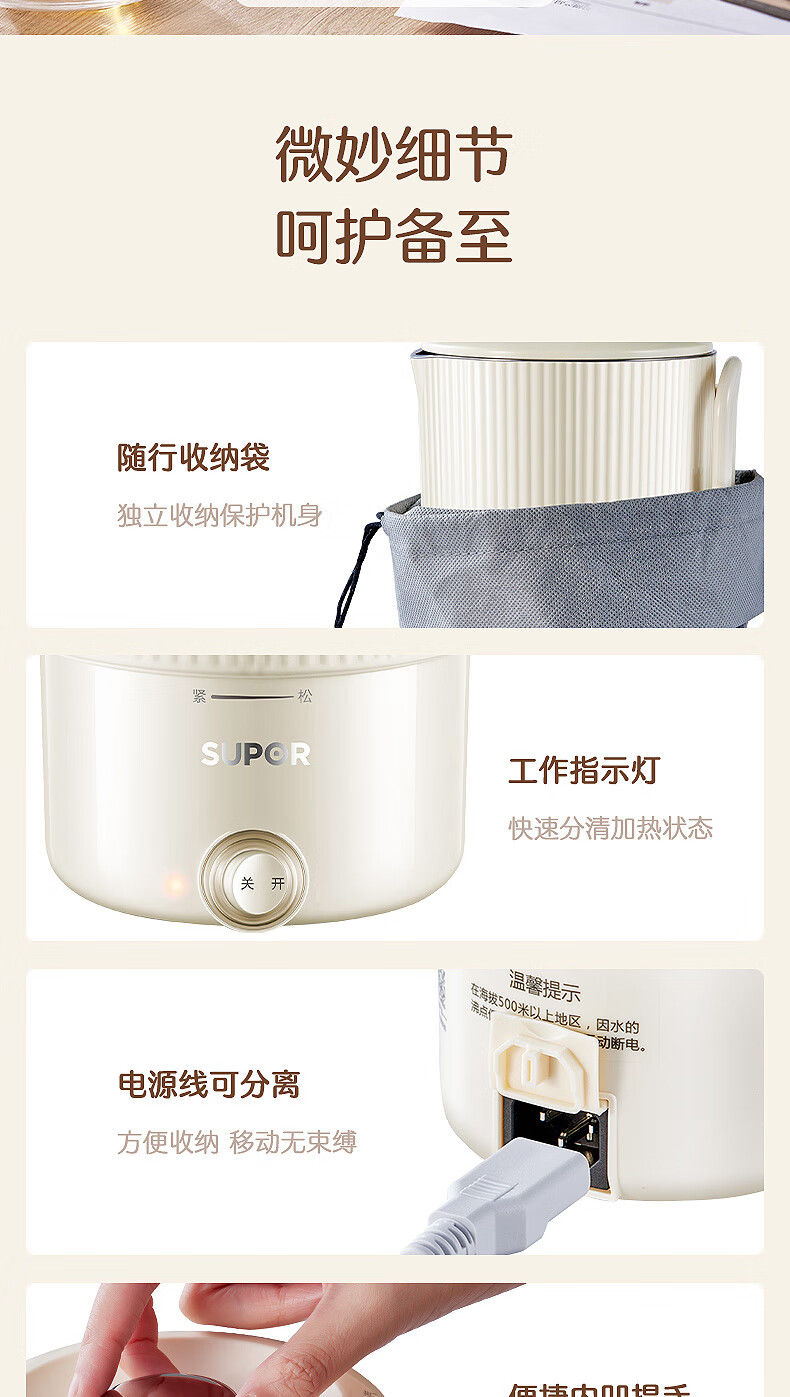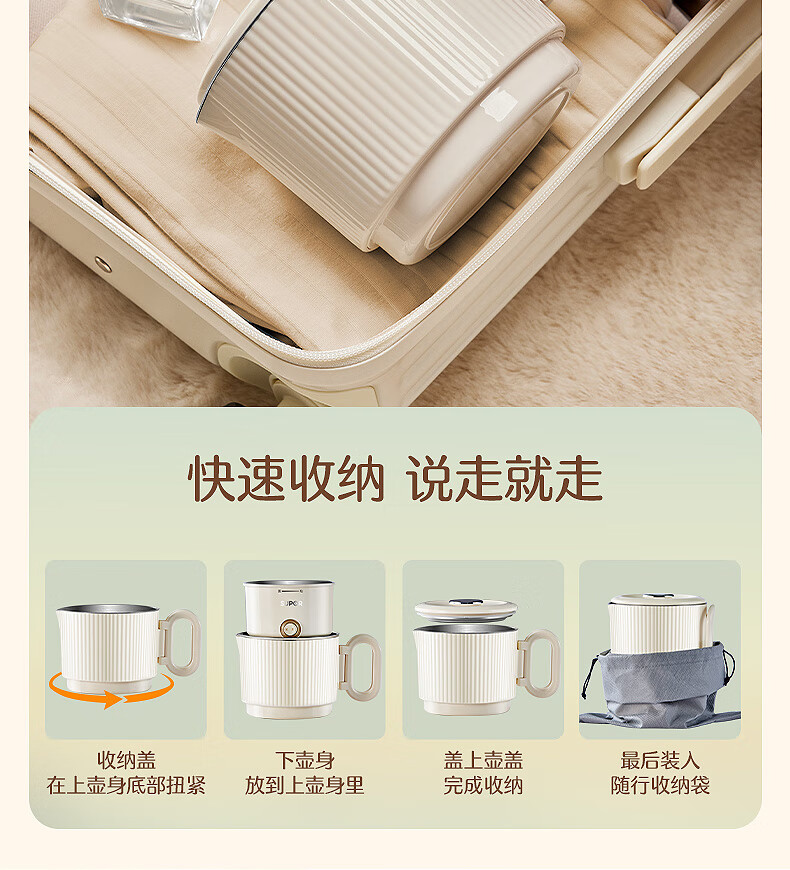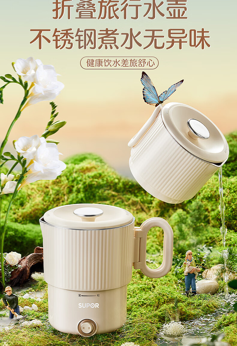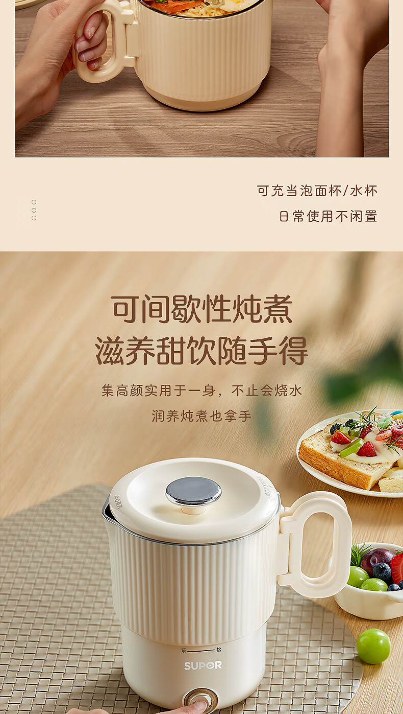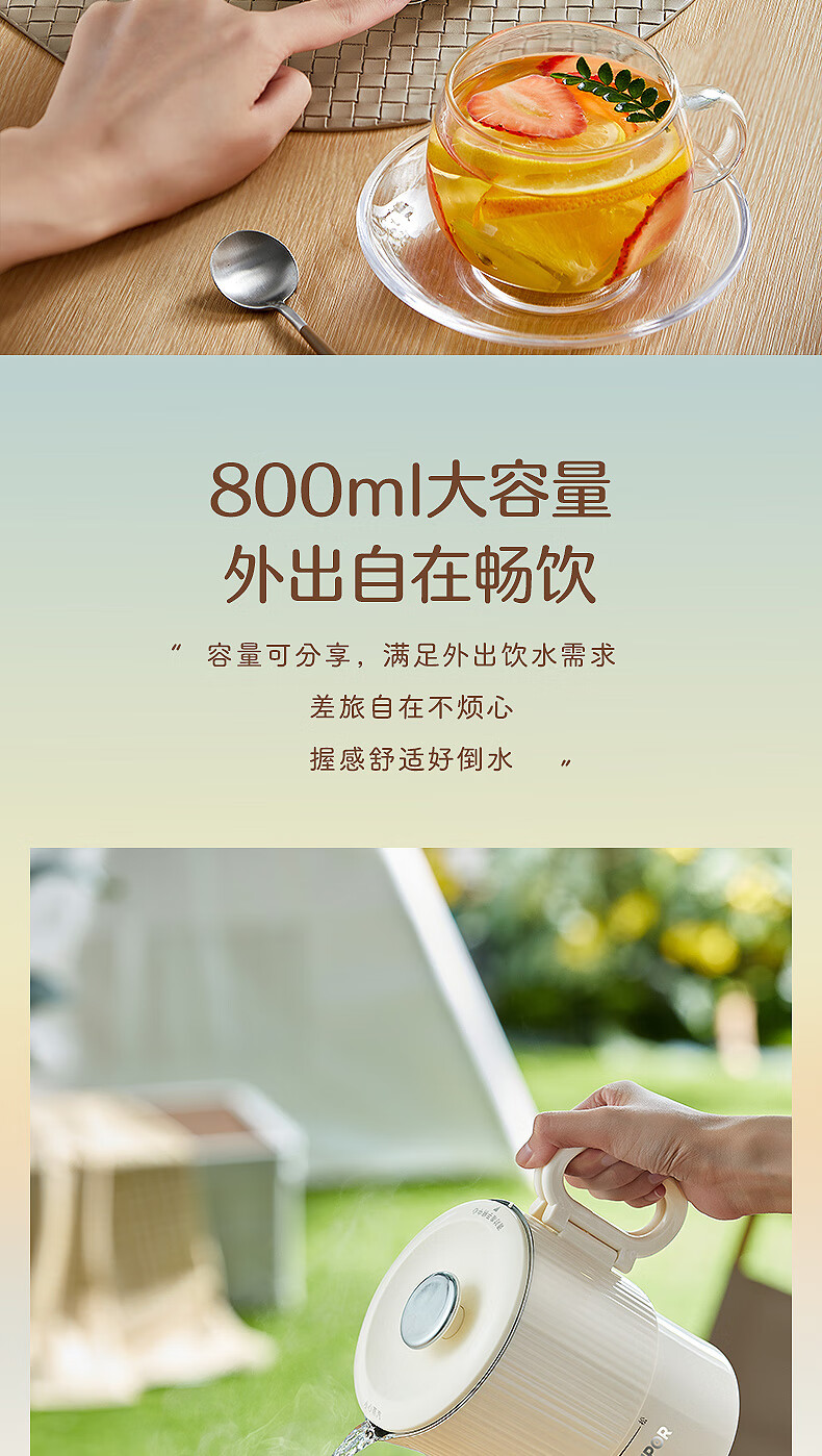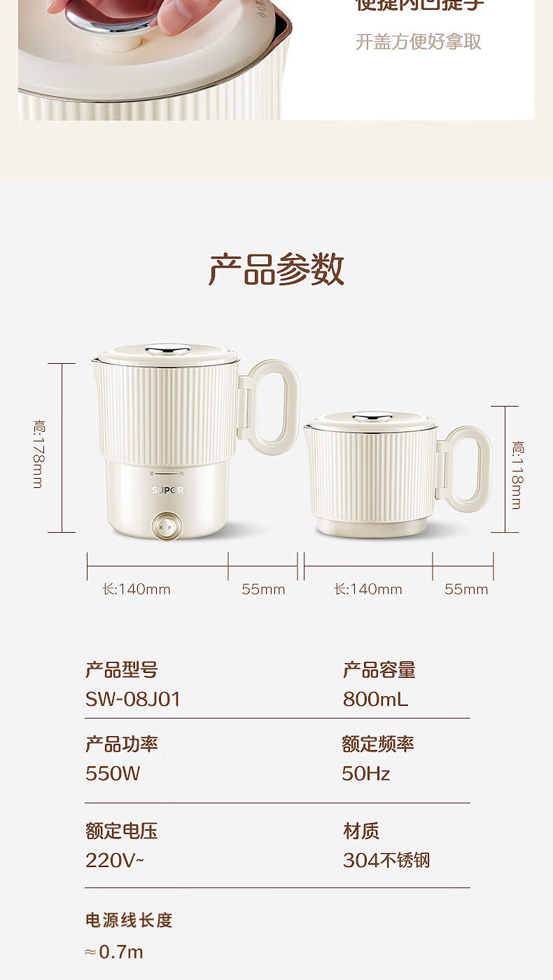 苏泊尔(SUPOR) SW-08J01 0.8L 便携式烧水壶 白色(单位:个)