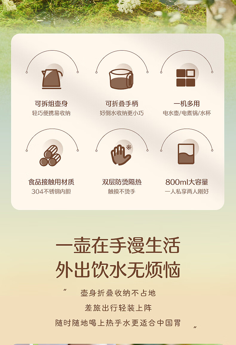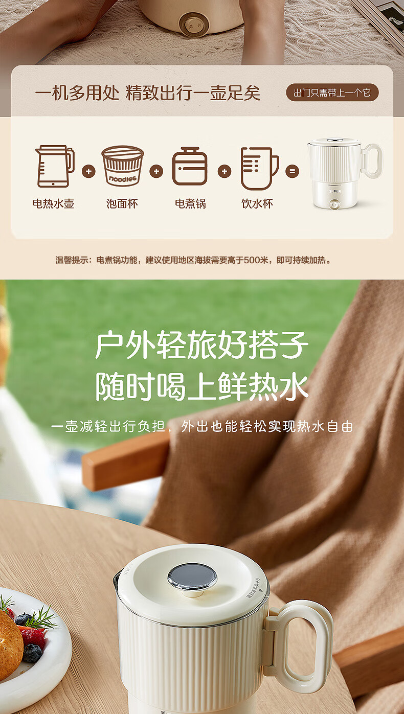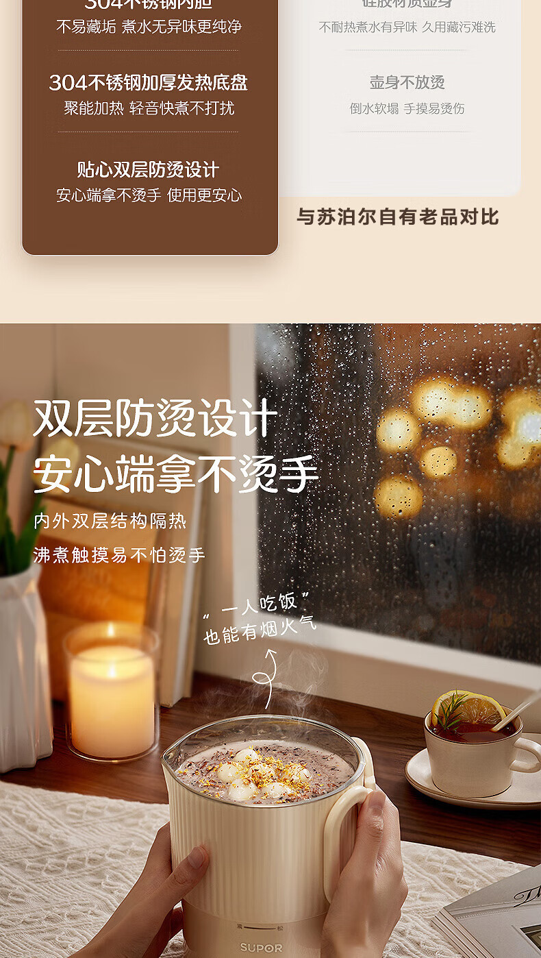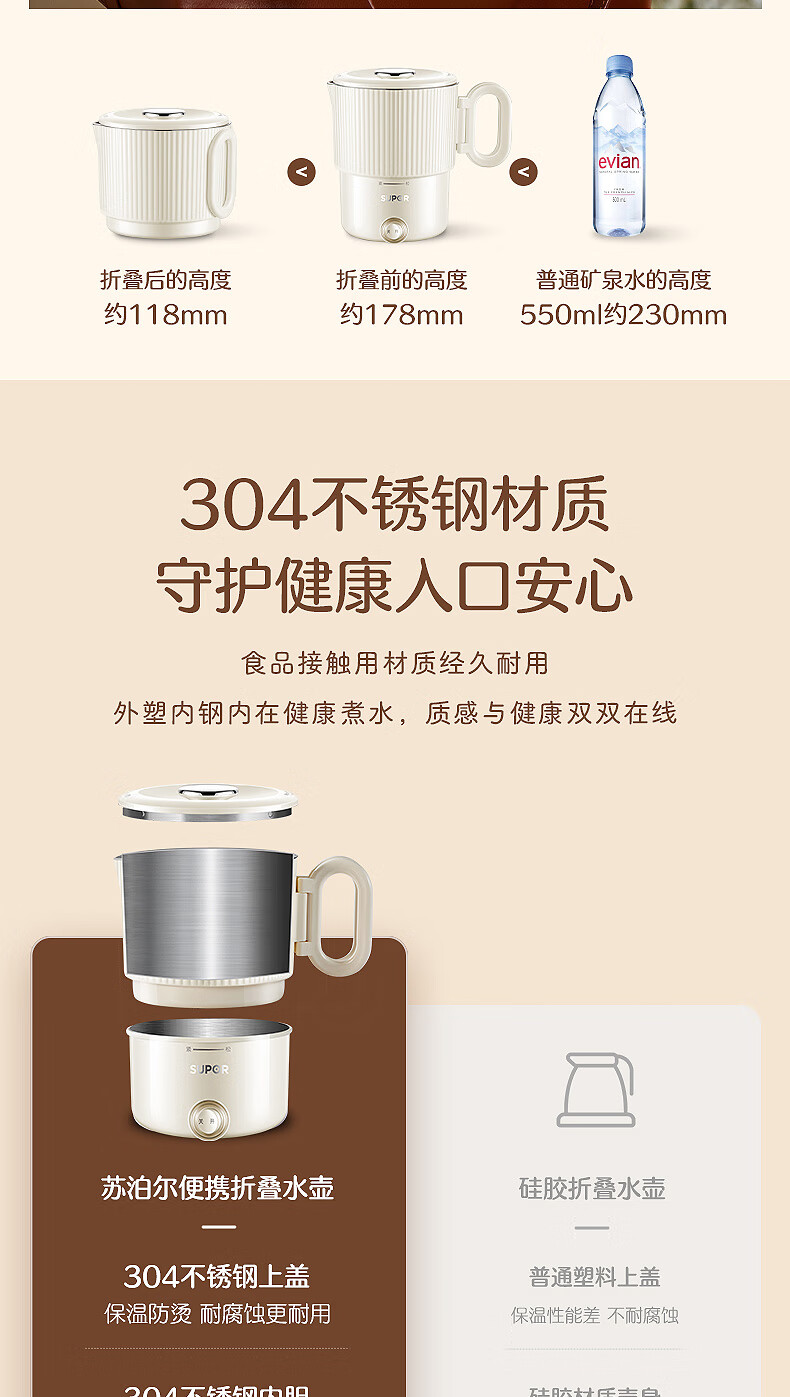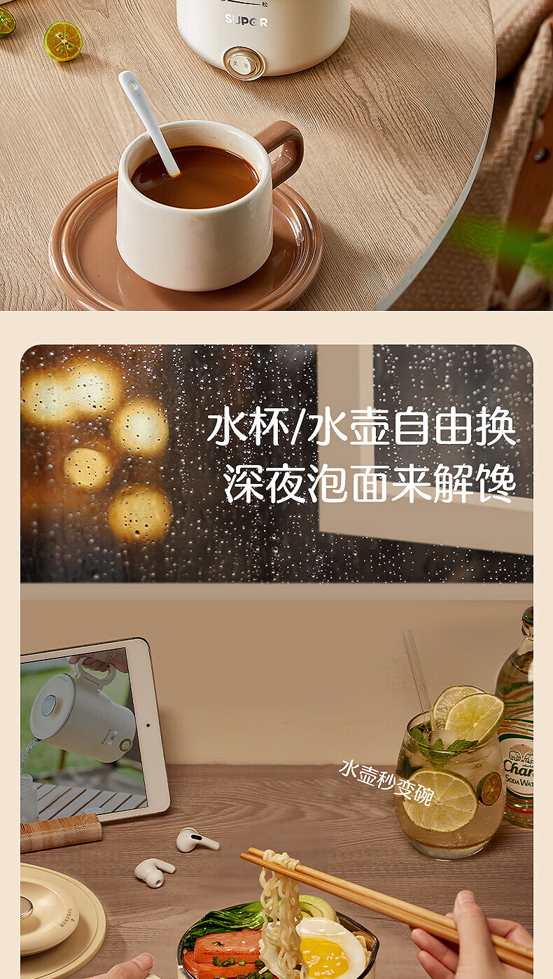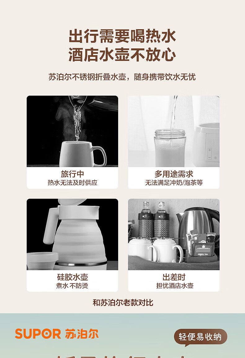 苏泊尔(SUPOR) SW-08J01 0.8L 便携式烧水壶 白色(单位:个)