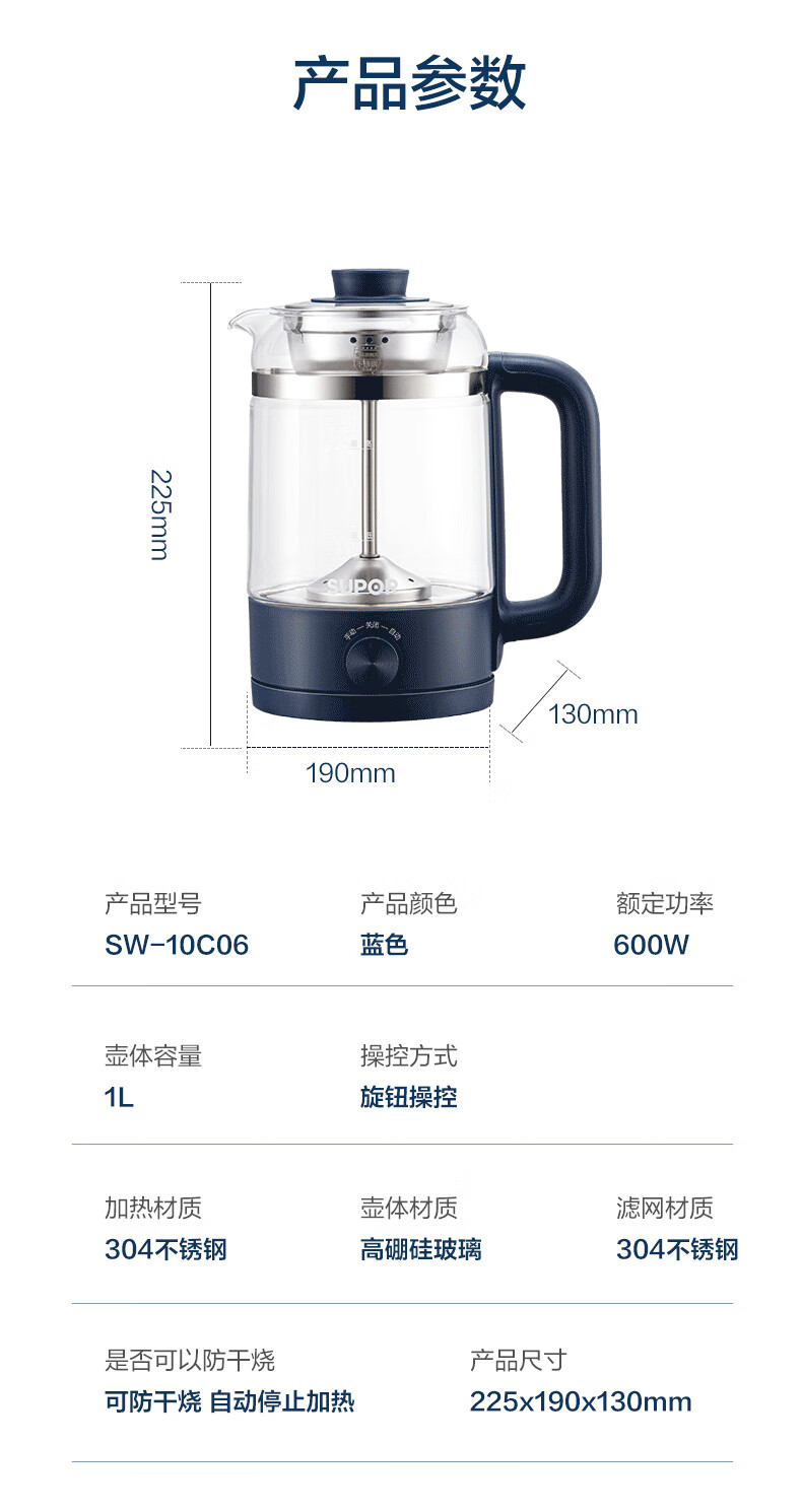苏泊尔(SUPOR) 煮茶器 SW-10C06 1L 蓝色(单位:个)