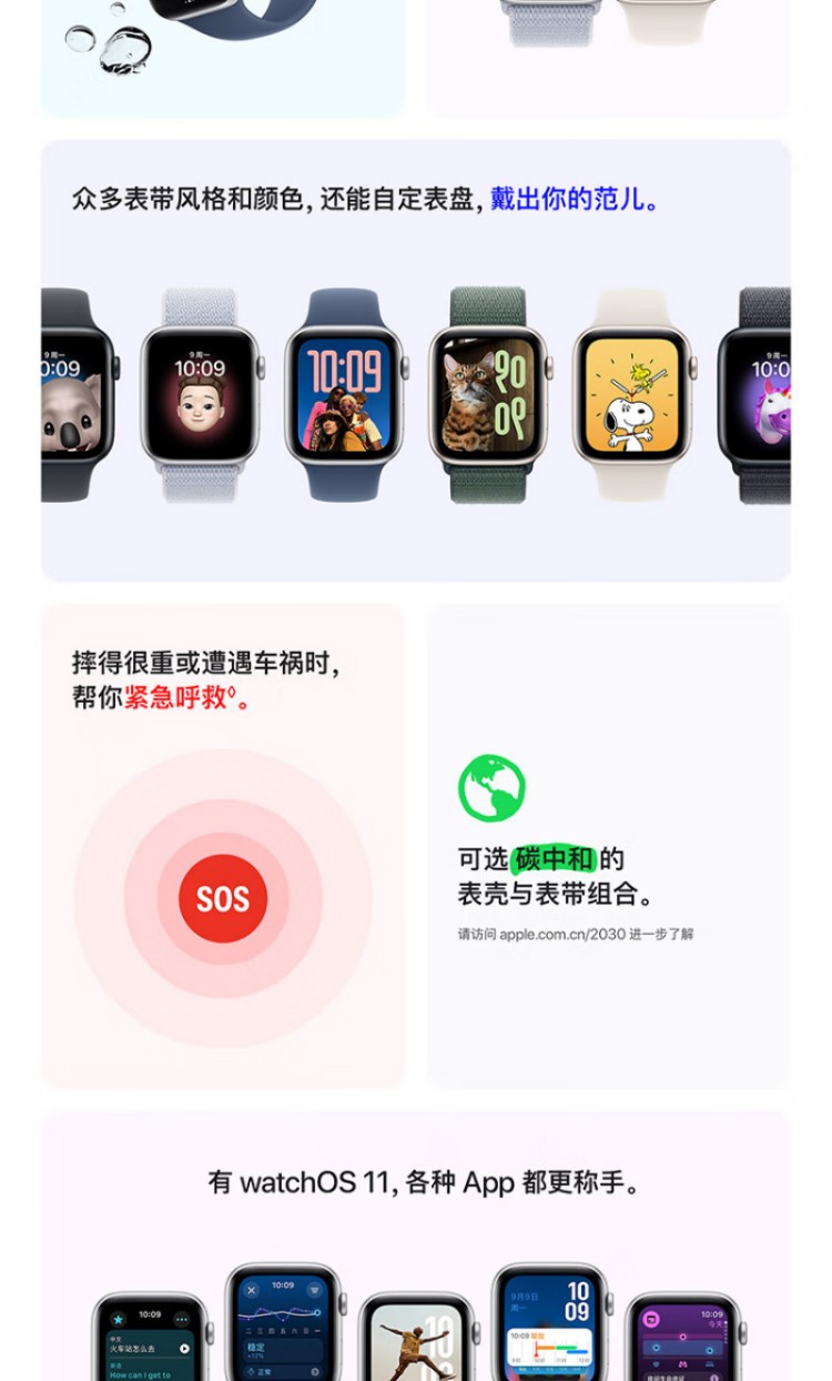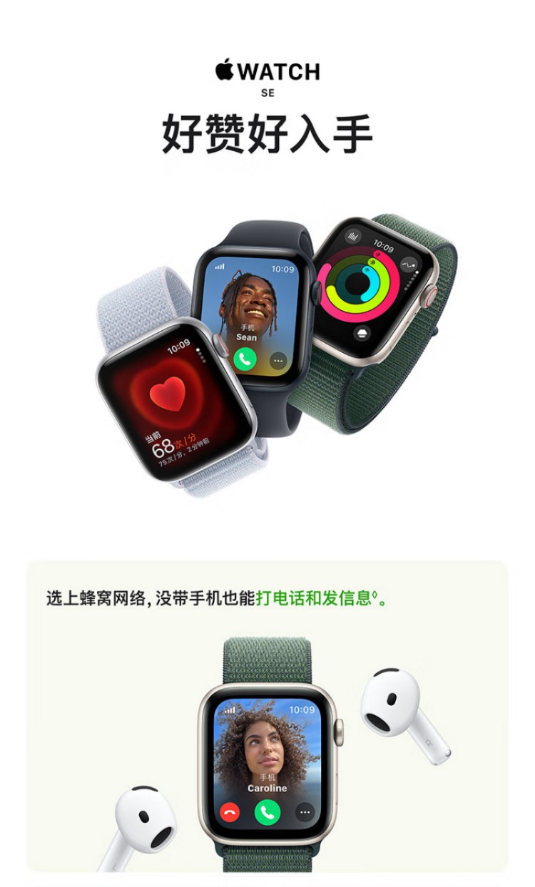 苹果(APPLE) Apple Watch SE 2024 S/M - MXHK3CH/B 智能手表 40毫米午夜色-蜂窝版(单位:台)