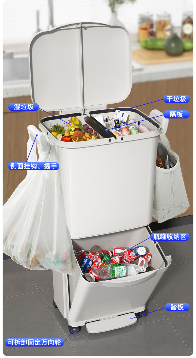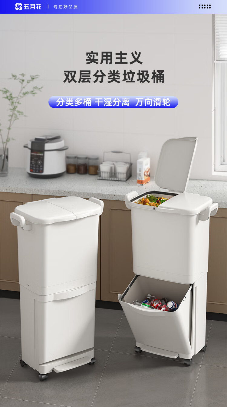 五月花(May Flower) WYH-GB1023 45L 双层超大容量垃圾桶 本白色(单位:个)