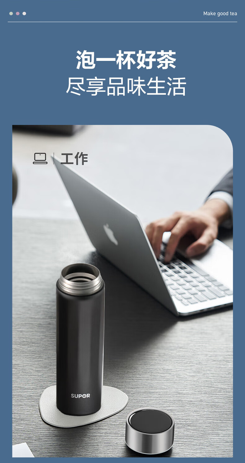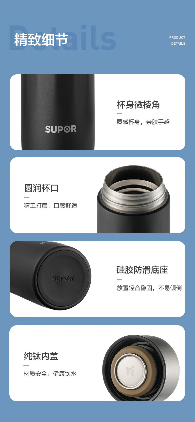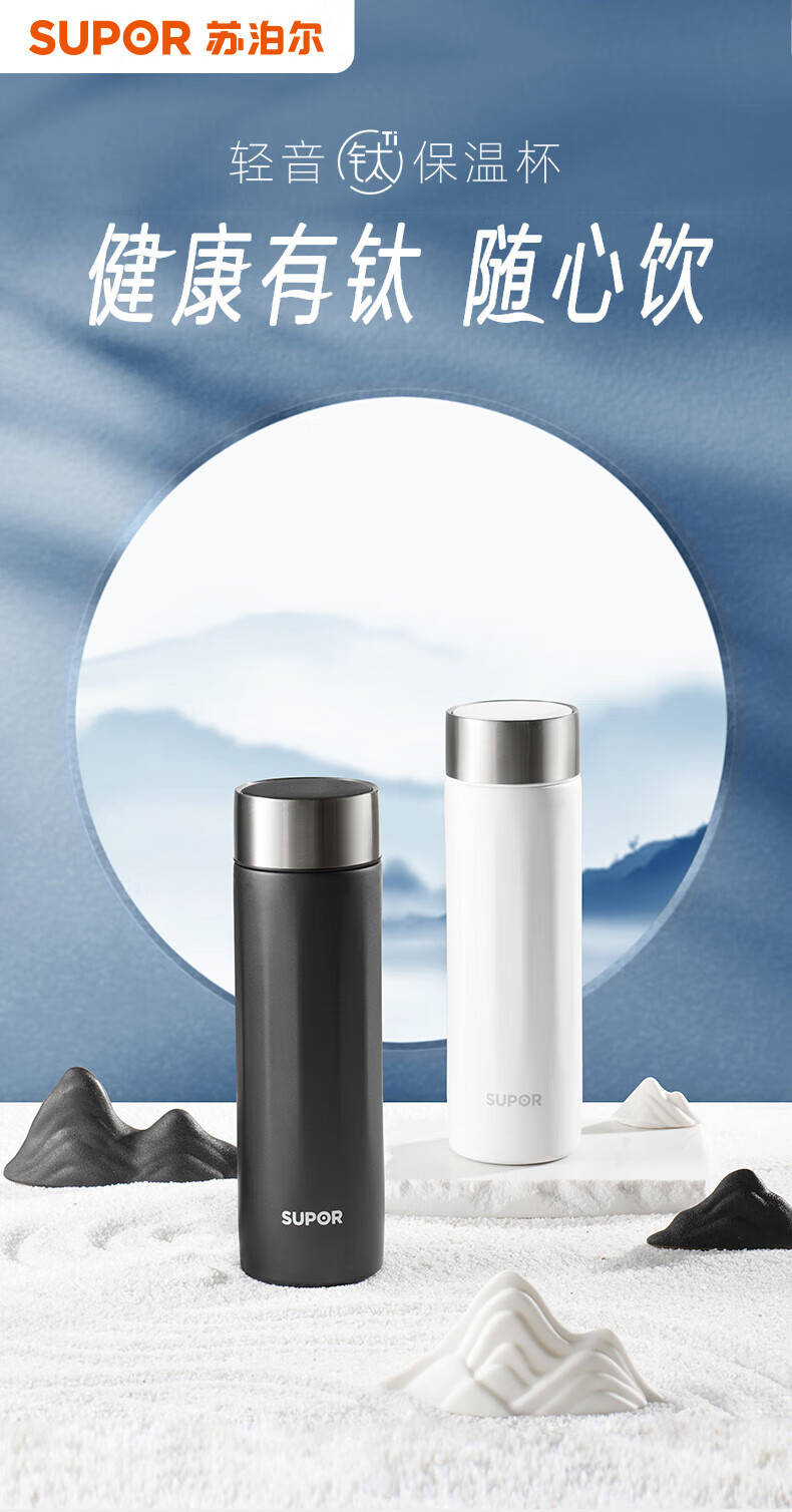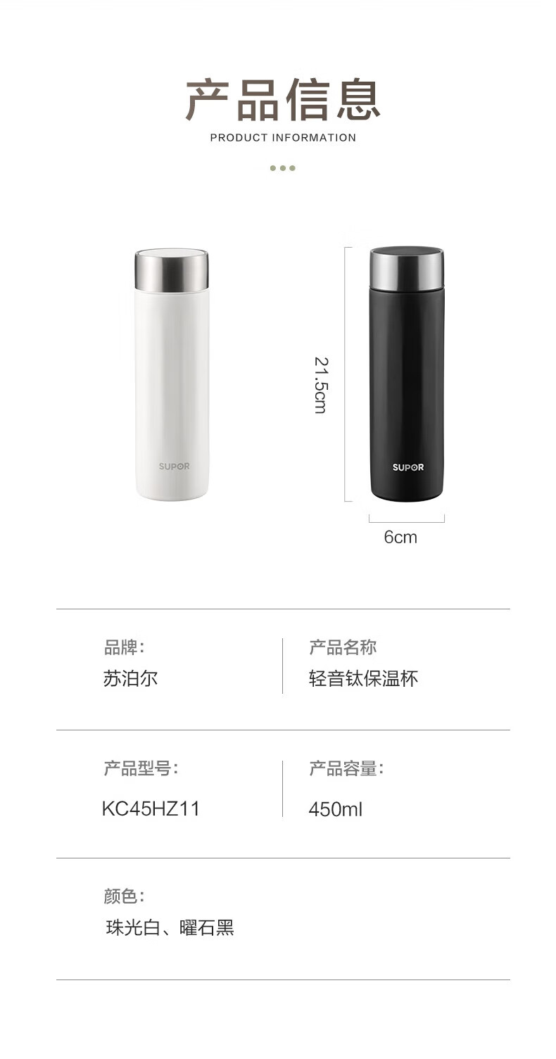 苏泊尔(SUPOR) 轻音钛保温杯 KC45HZ11 450ml 黑色(单位:个)