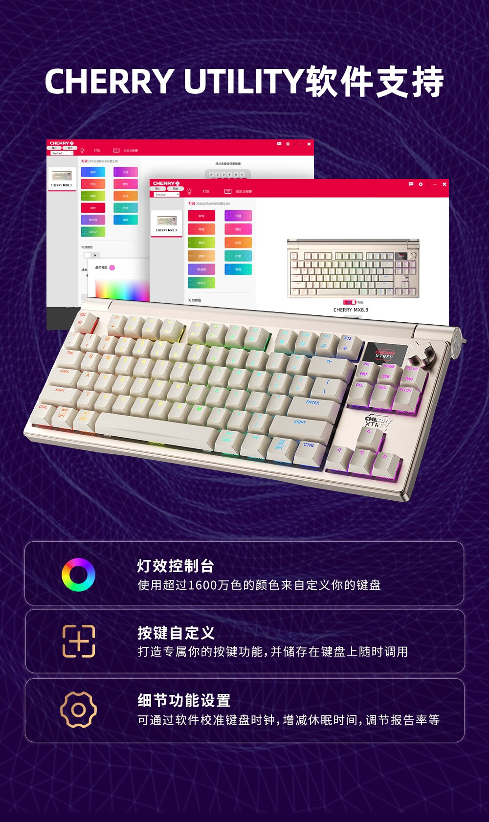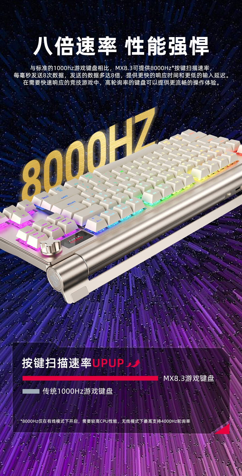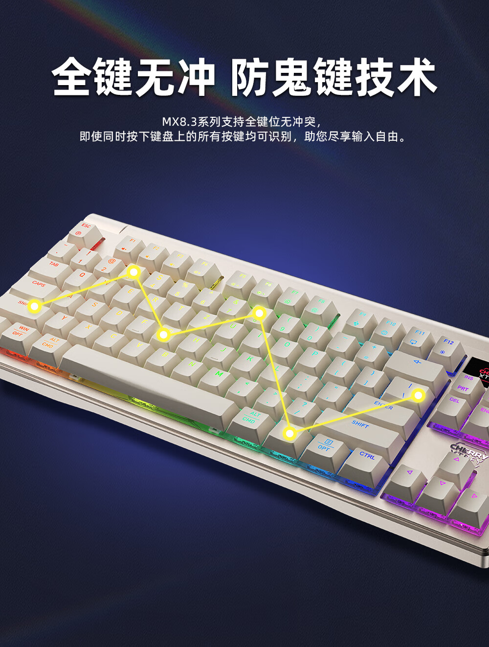 CHERRY MX 8.3 红轴 8K扫描率 铝合金机身 Gasket结构 热插拔 蓝牙三模 无线键盘 浅金色(单位:把)