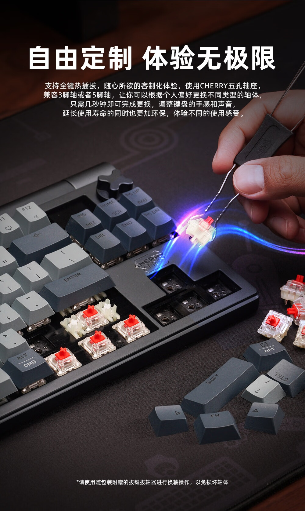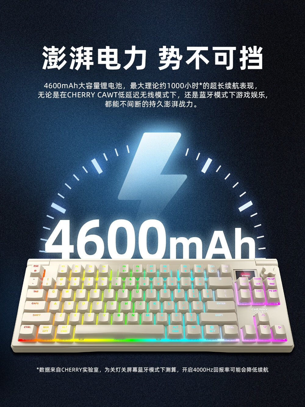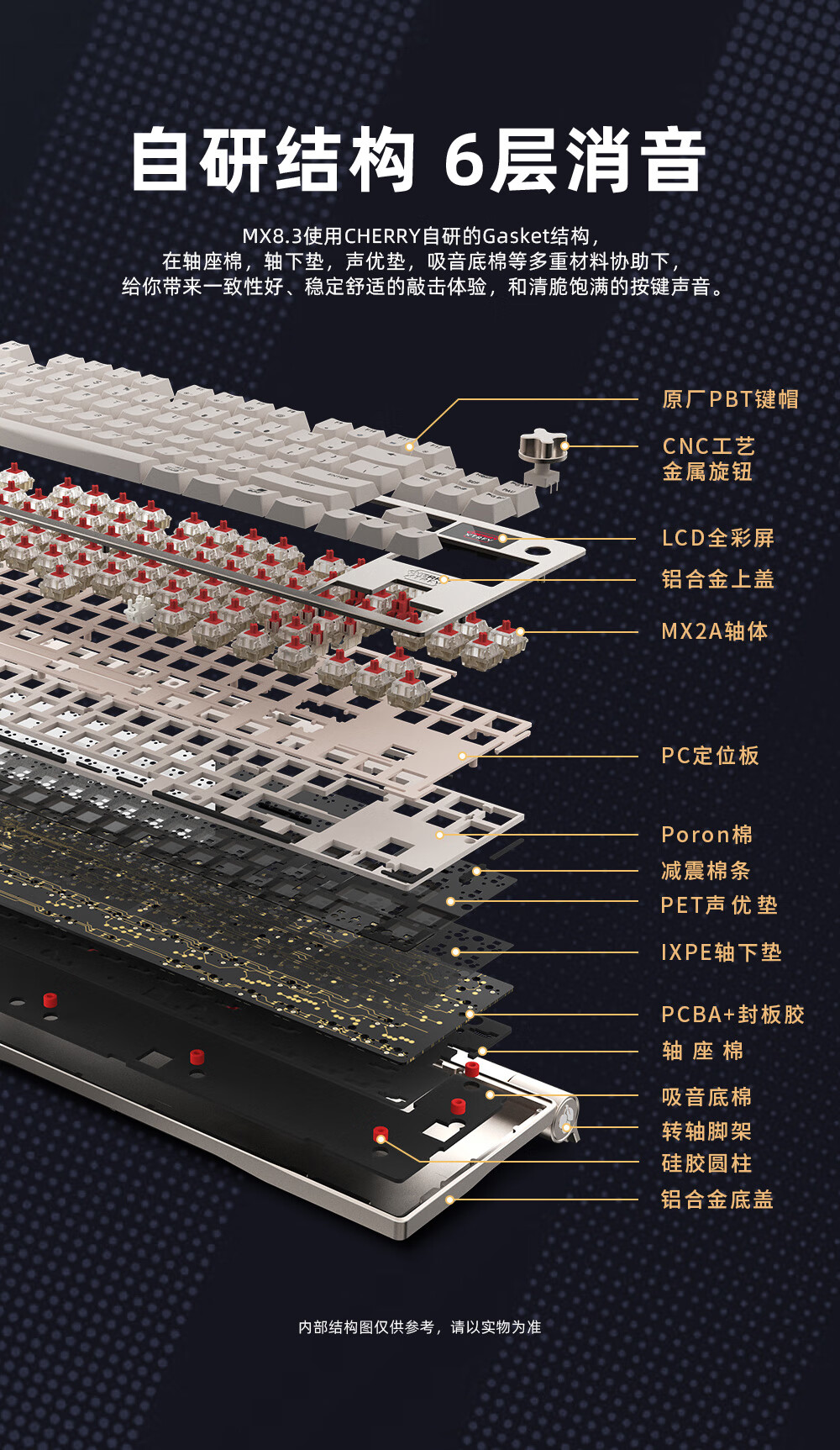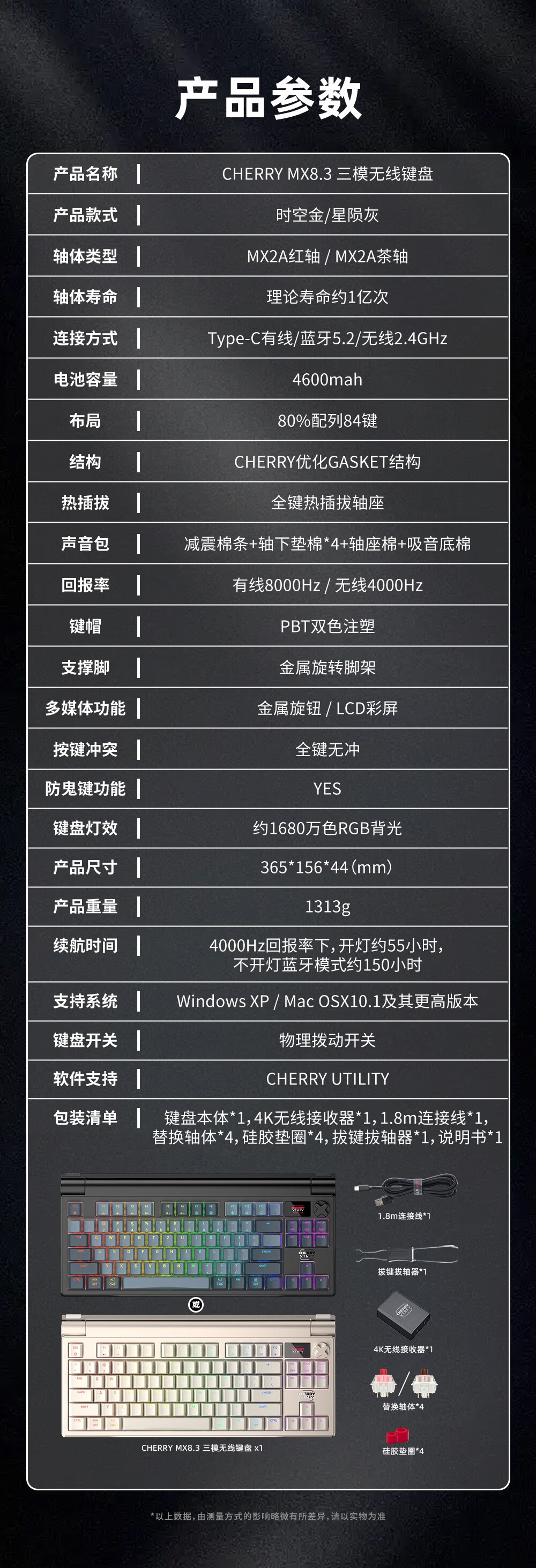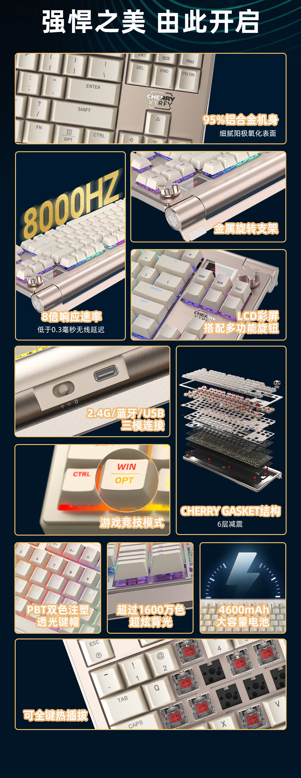 CHERRY MX 8.3 无线茶轴 8K扫描率 铝合金机身 Gasket结构 热插拔 蓝牙三模 无线键盘 深灰色(单位:把)