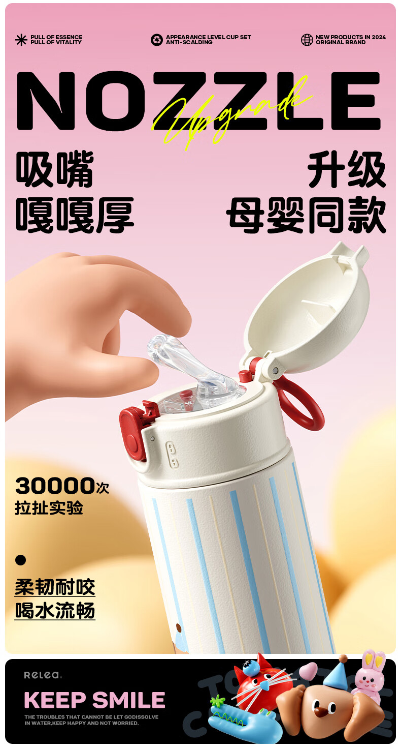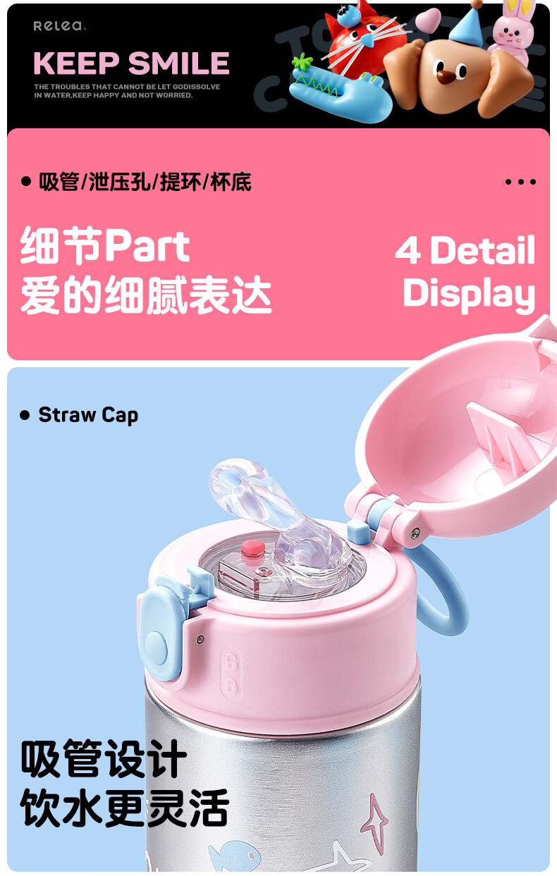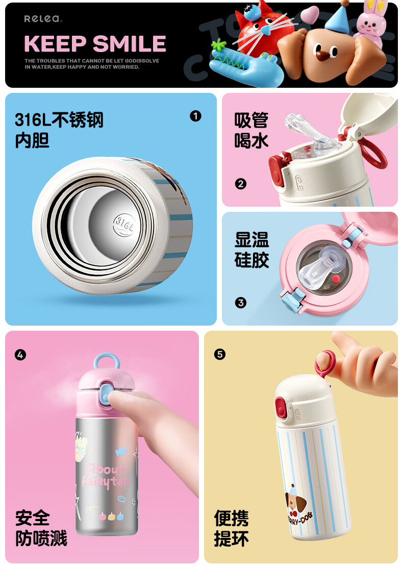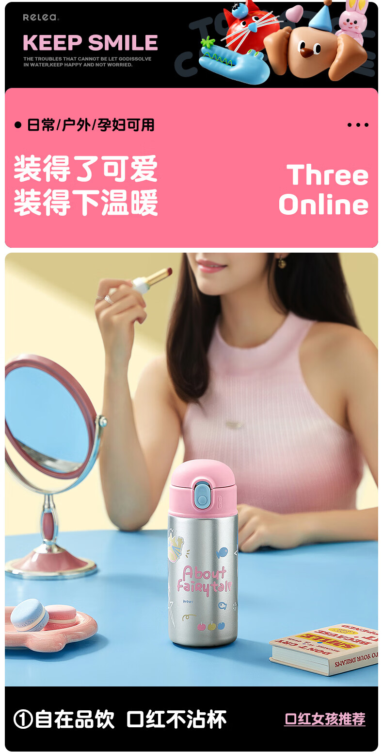 物生物(RELEA) 高颜值 550ml 保温杯女士水杯 白色(单位:个)