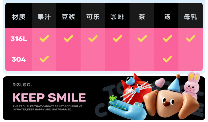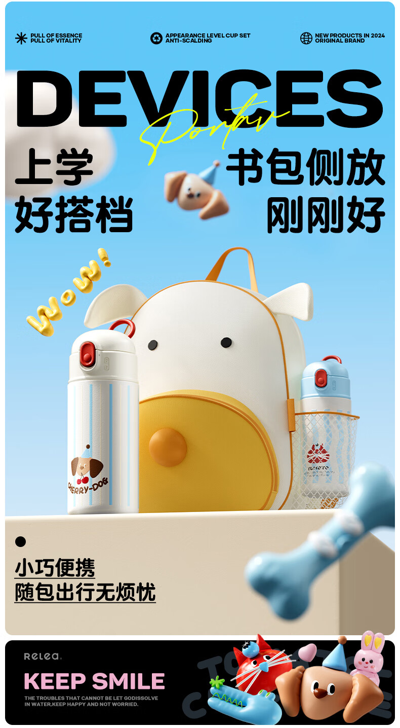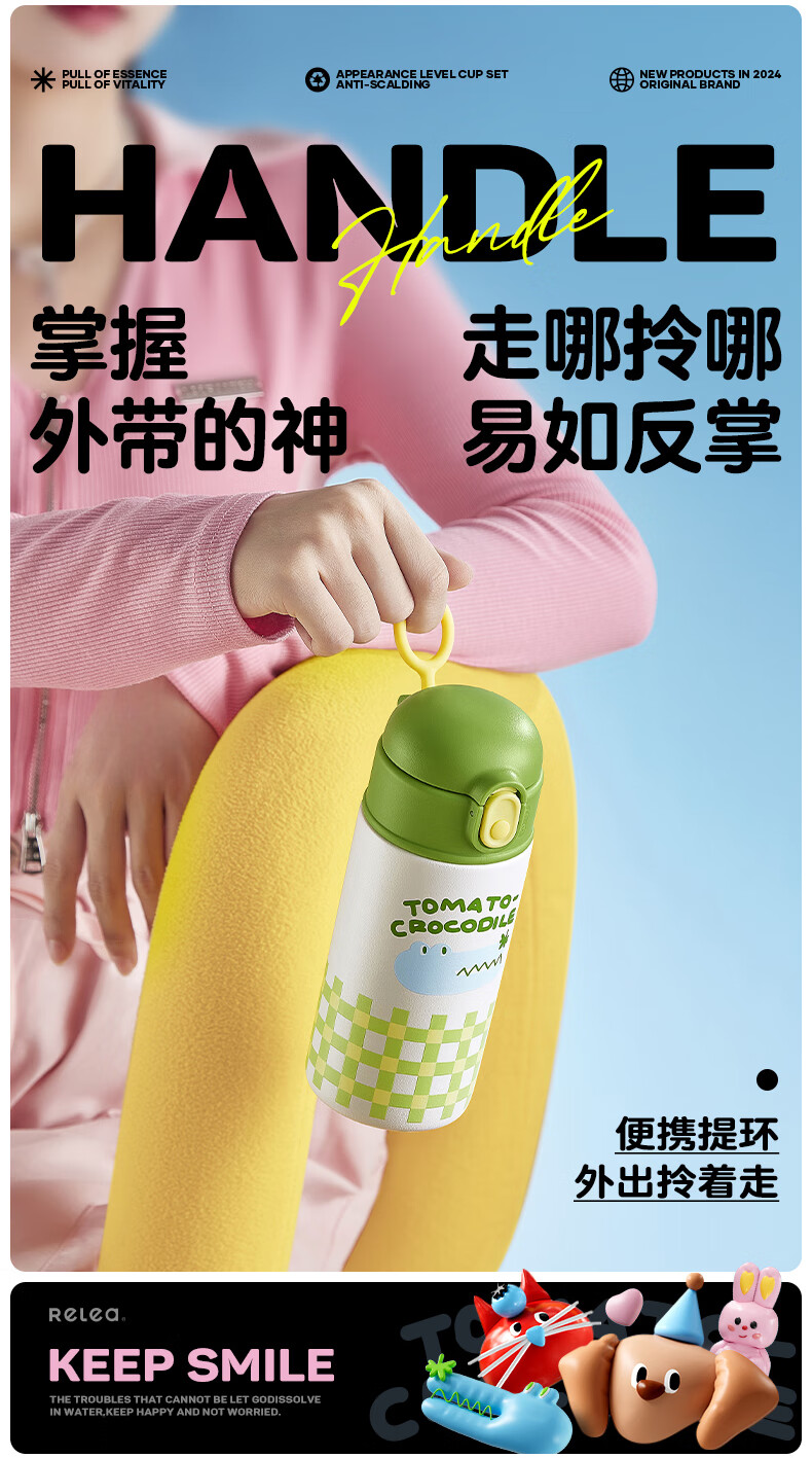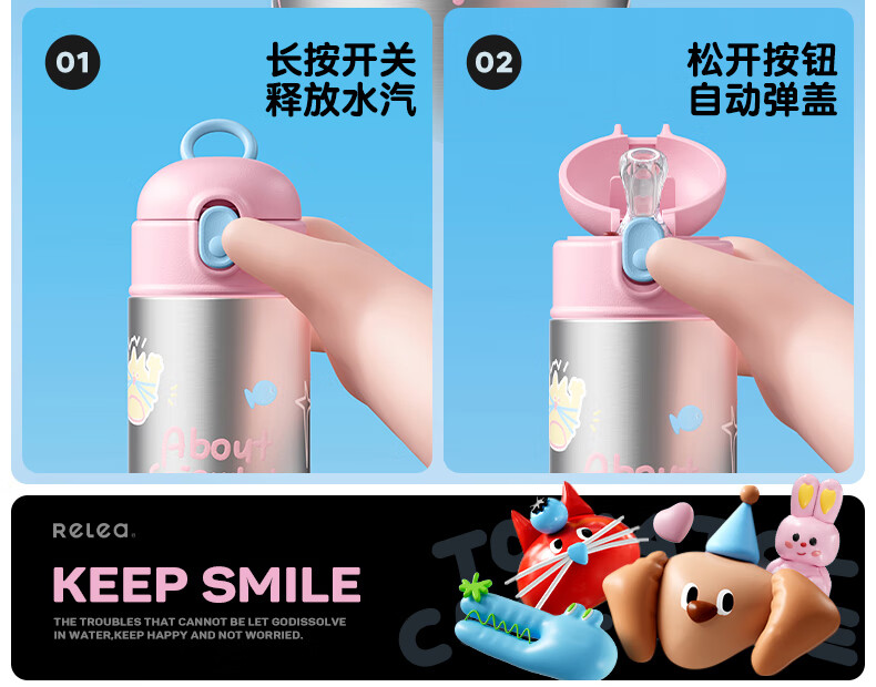 物生物(RELEA) 高颜值 550ml 保温杯女士水杯 白色(单位:个)