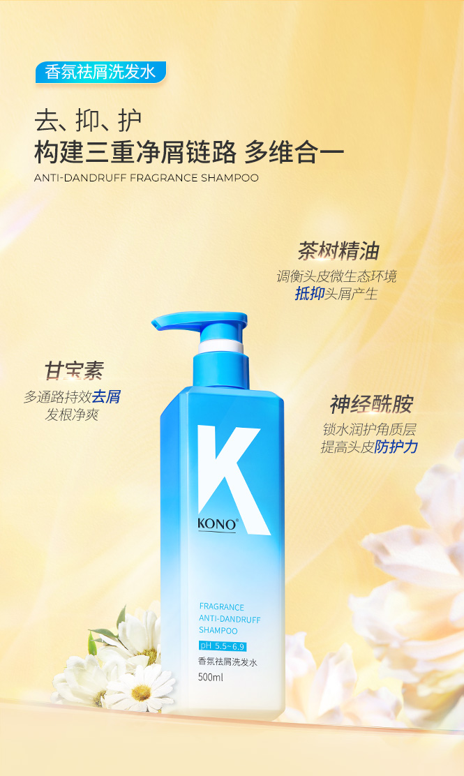KONO 卡厘香氛去屑洗发香乳 500ml 控油清爽净屑蓬松 蓝白(单位:瓶)
