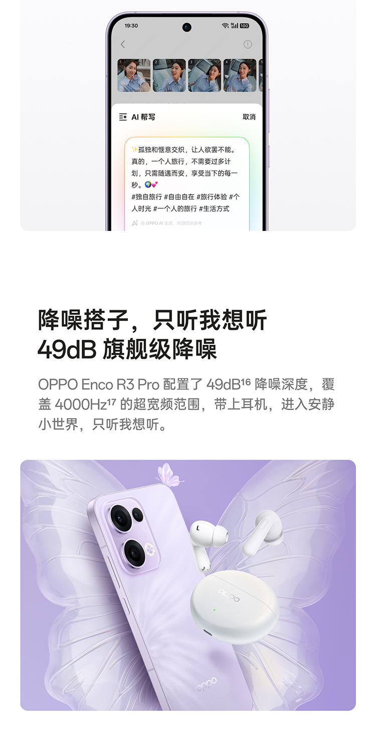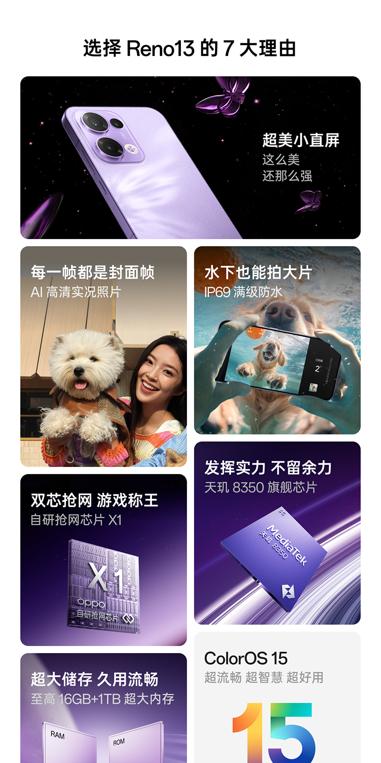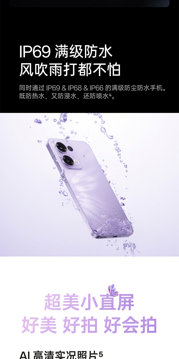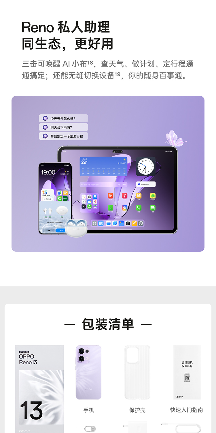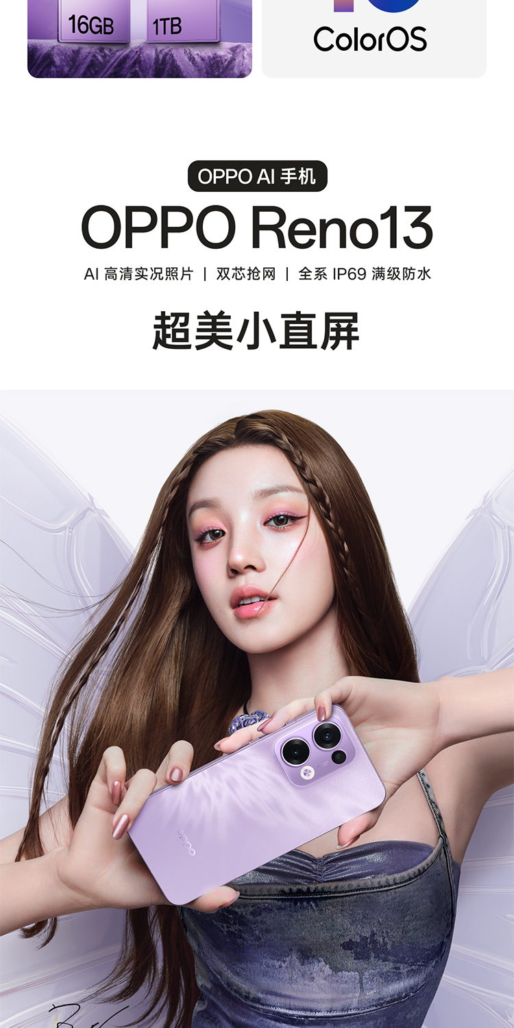 oppo Reno13 超美小直屏 5G智能拍照手机 12G+256G 蝶蝶紫(单位:台)