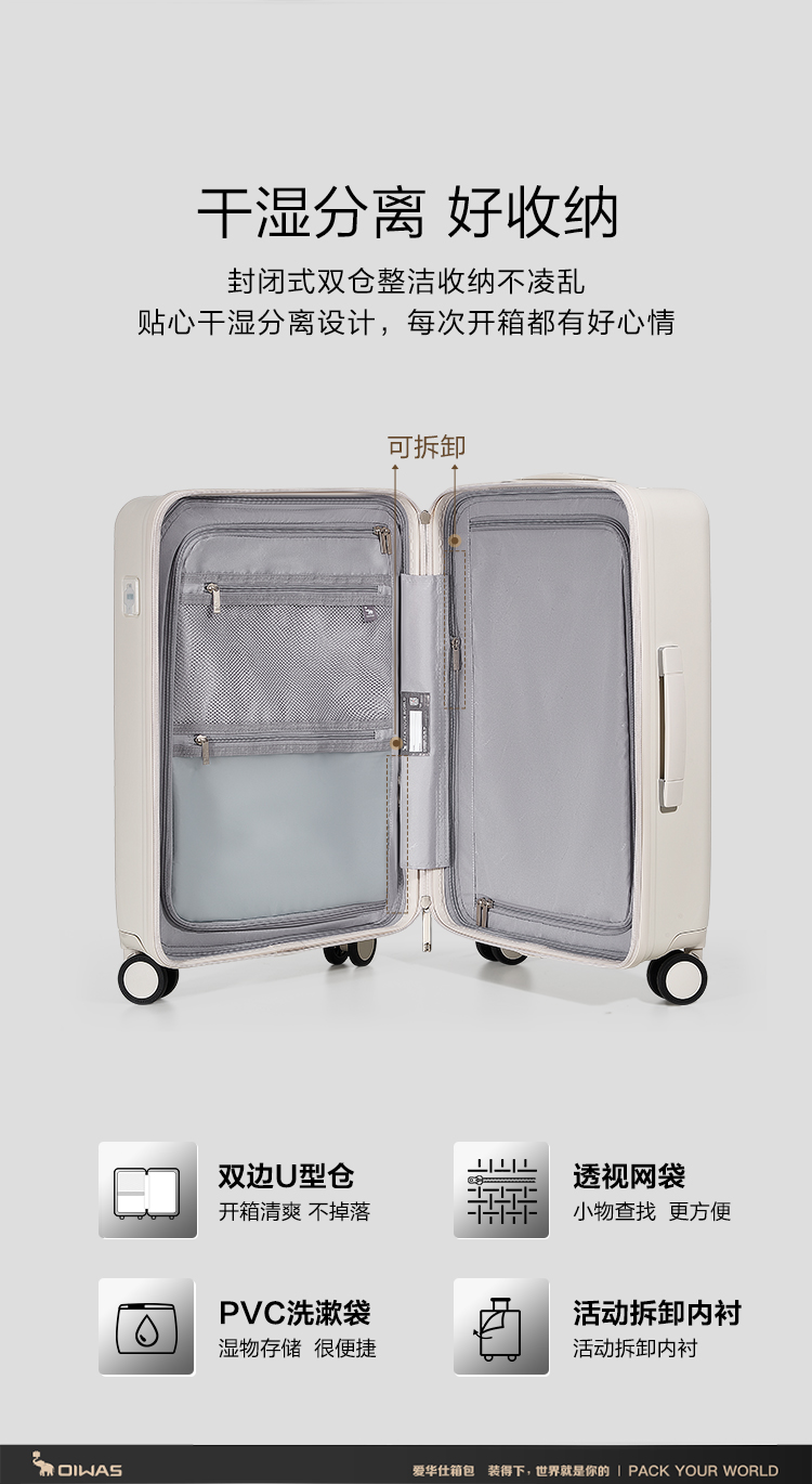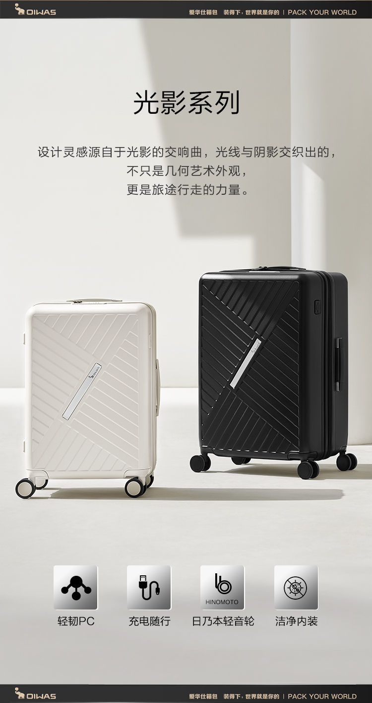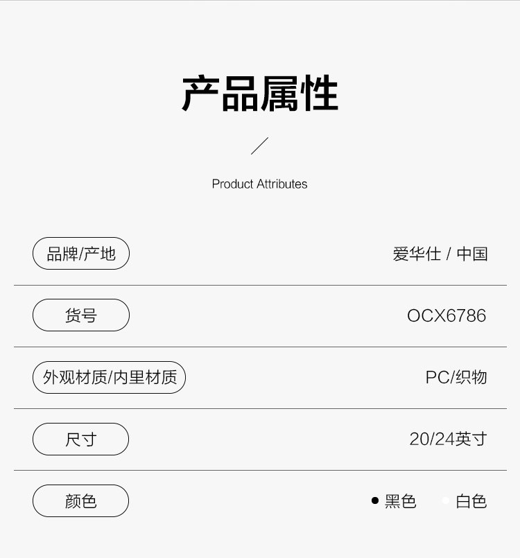 爱华仕(OIWAS) OCX6786-24 42*26*59cm 轻便商务旅行箱 24寸 白色(单位:个)