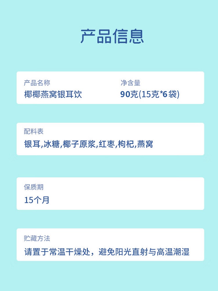 新养集 生椰燕窝银耳饮 15g*6包 椰椰燕窝银耳饮90g 青蓝色(单位:盒)