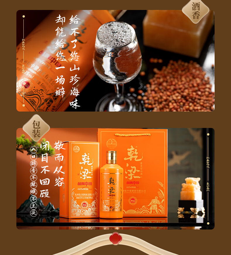 乾梁 乾梁珍品 53度酱香型白酒 500ml*6/箱 灰橙色(单位:箱)