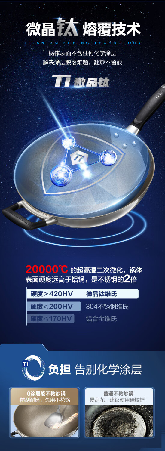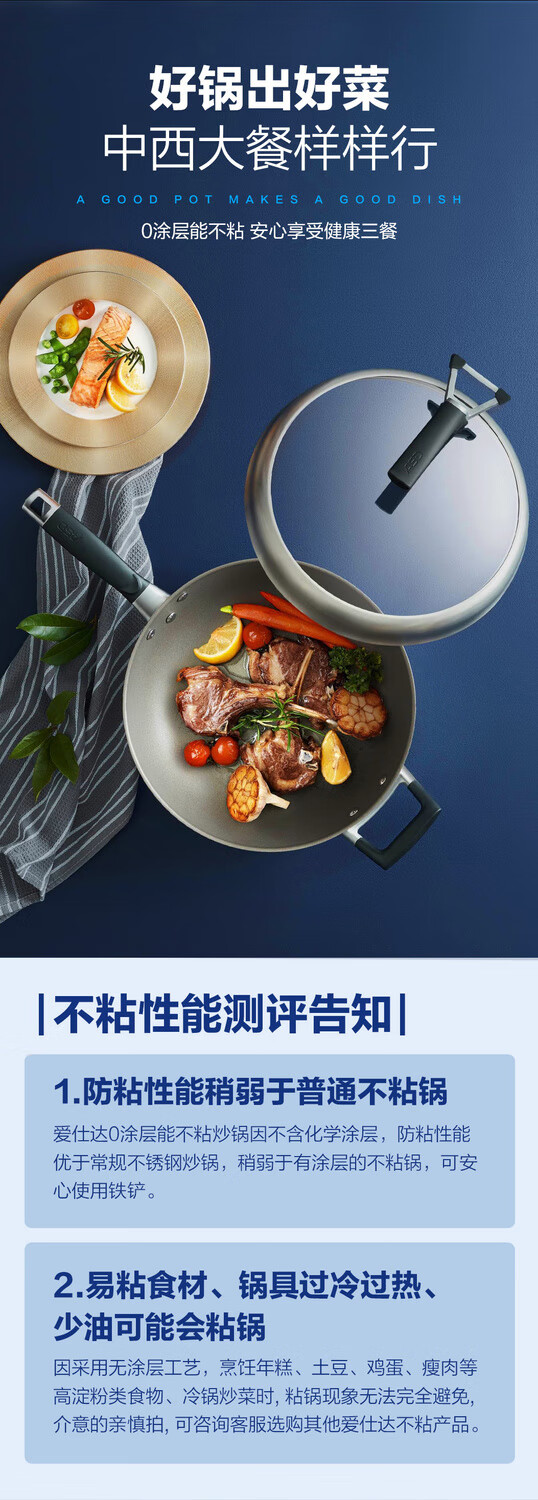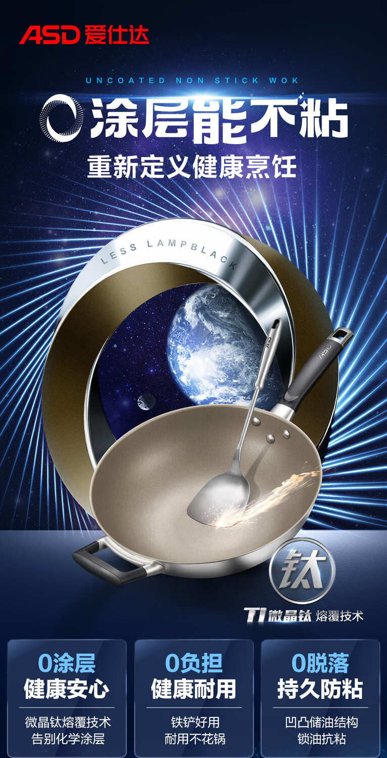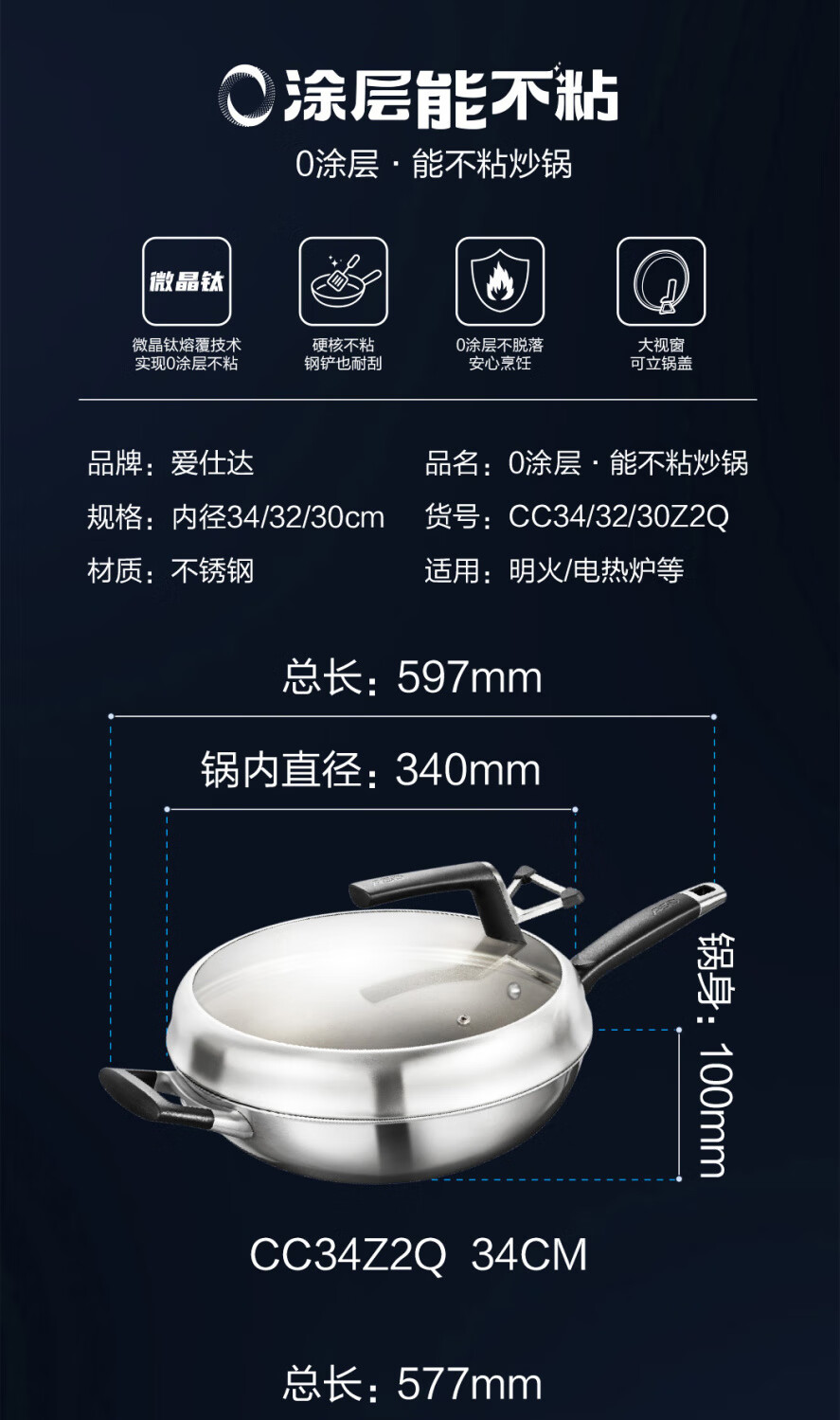 爱仕达(ASD) 0涂层▪ 能不粘炒锅 CC32Z2Q 5.3L 银色(单位:个)