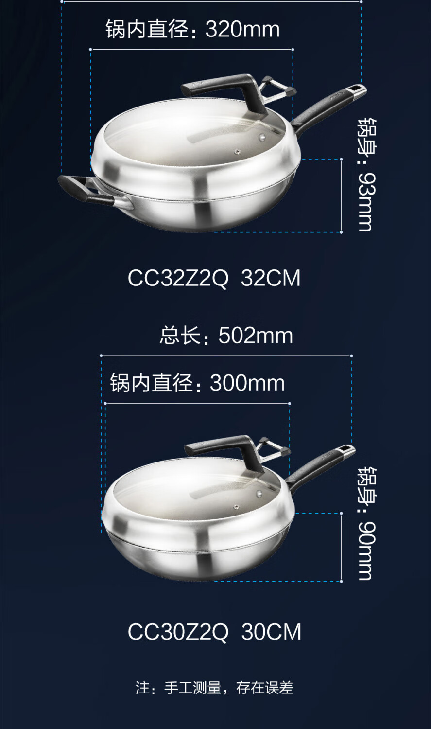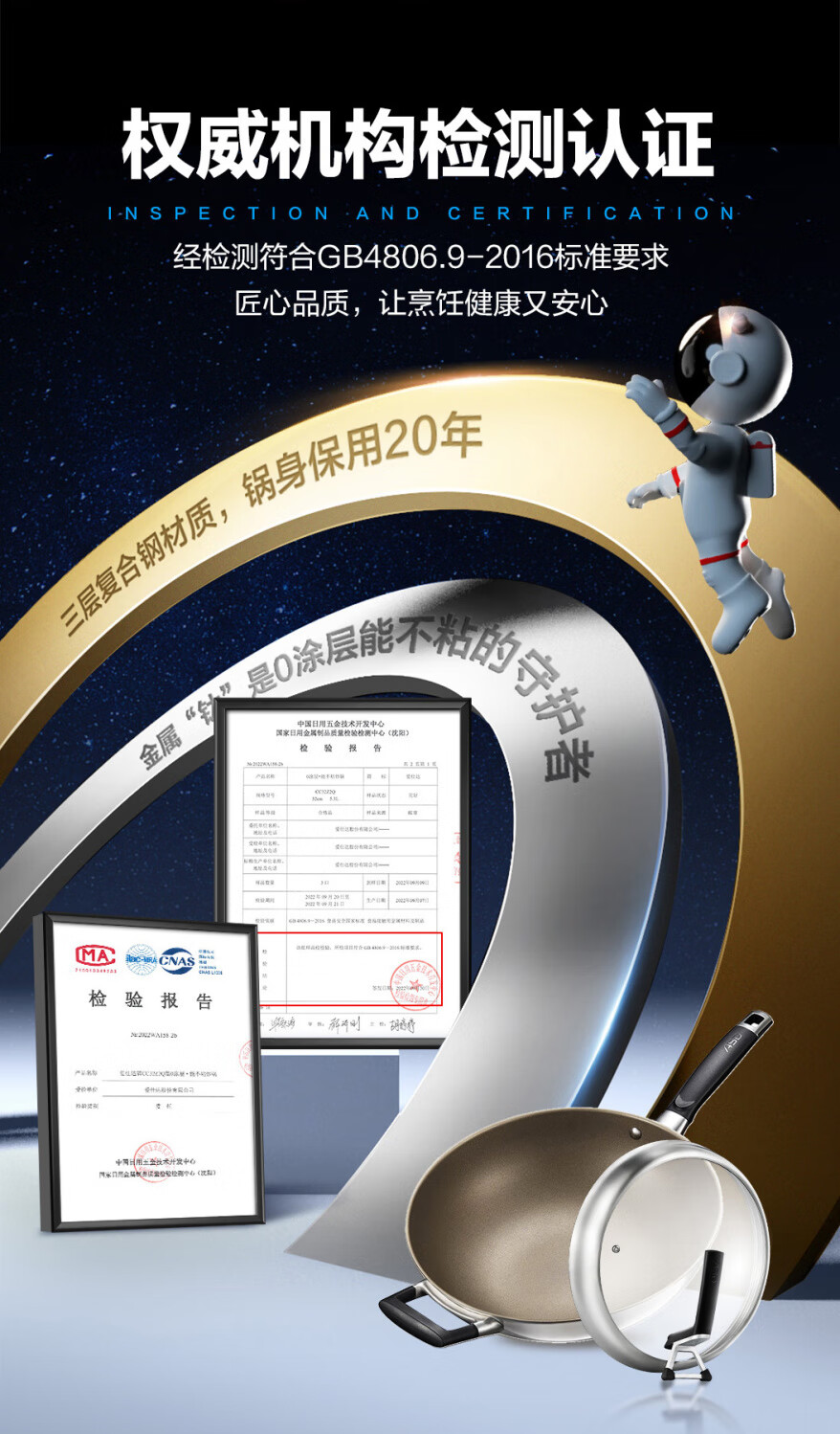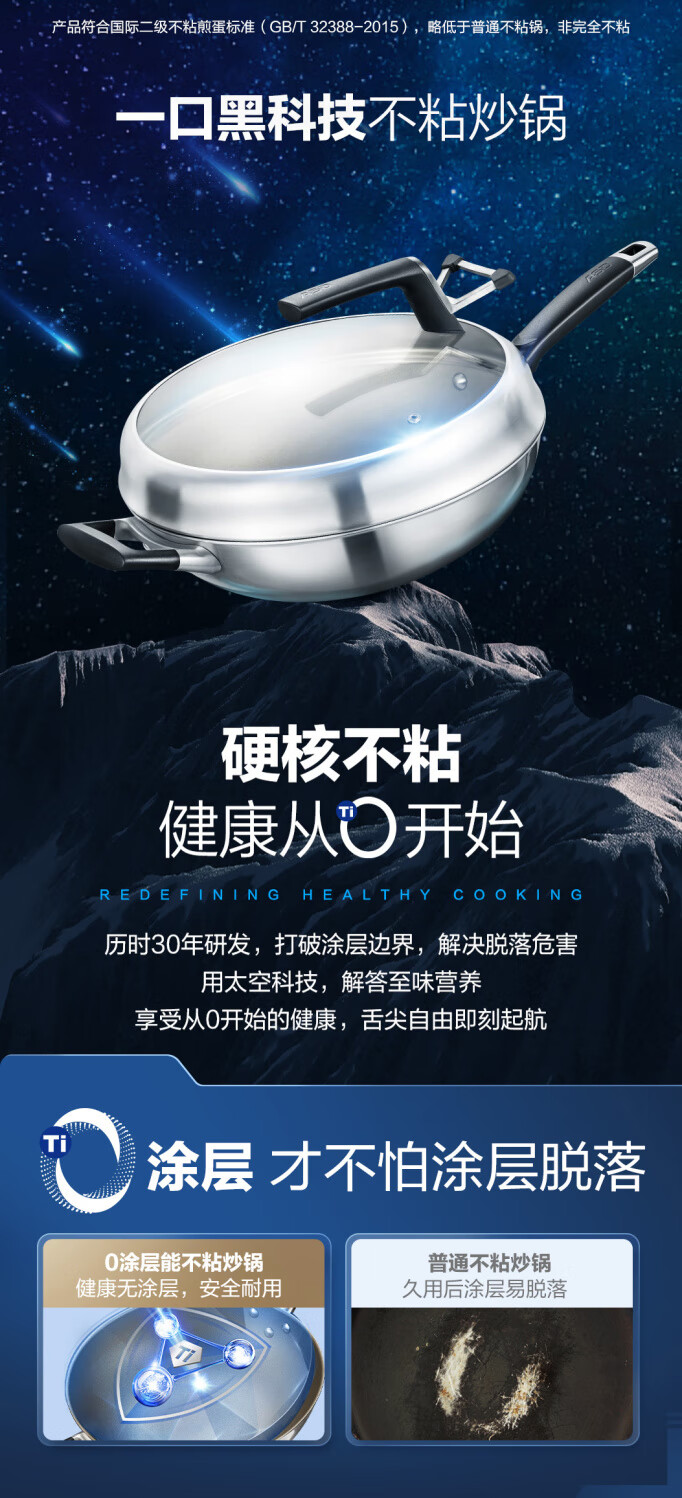 爱仕达(ASD) 0涂层▪ 能不粘炒锅 CC32Z2Q 5.3L 银色(单位:个)