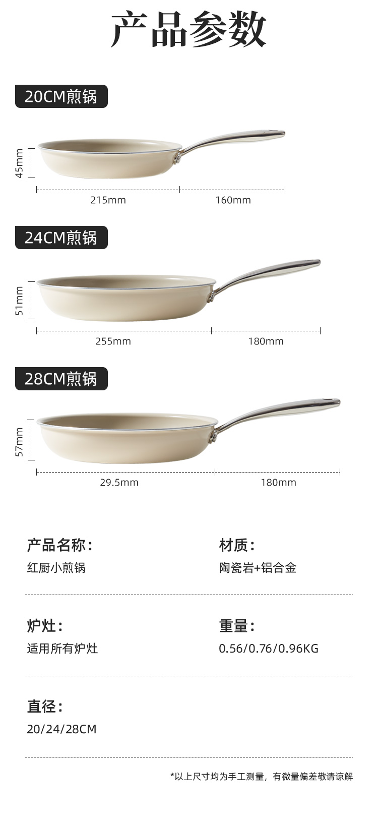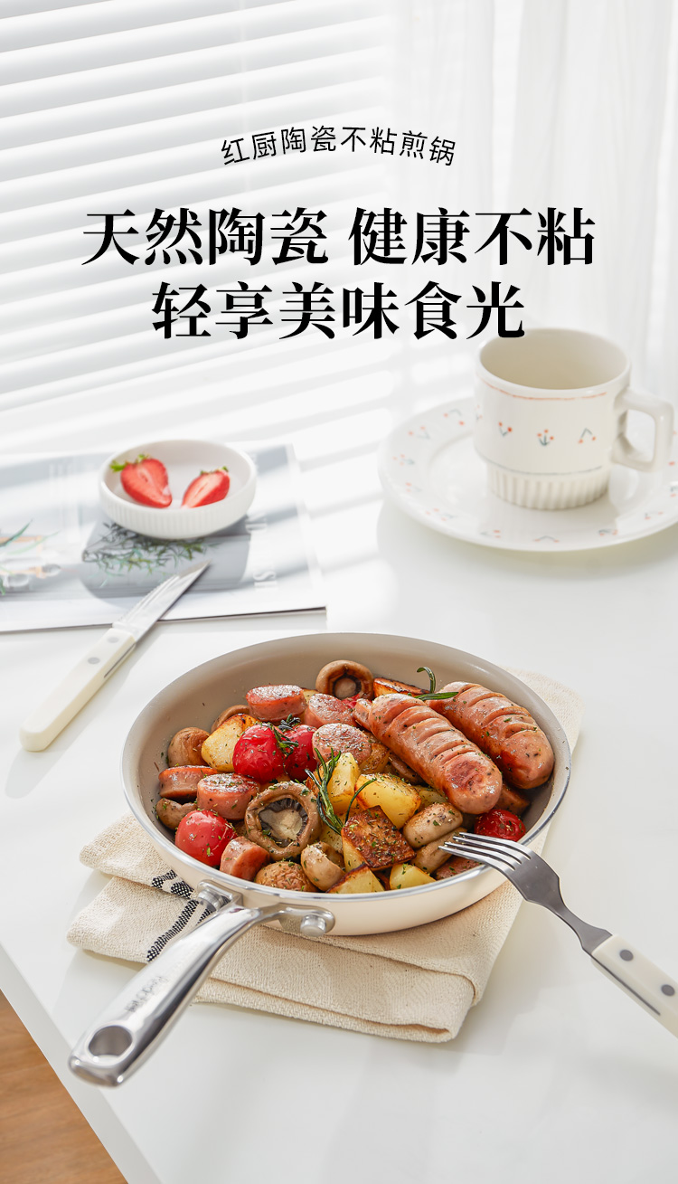 红厨Redchef 宝石系列煎锅 RJA24B224-WC 24cm 外白内咖(单位:个)