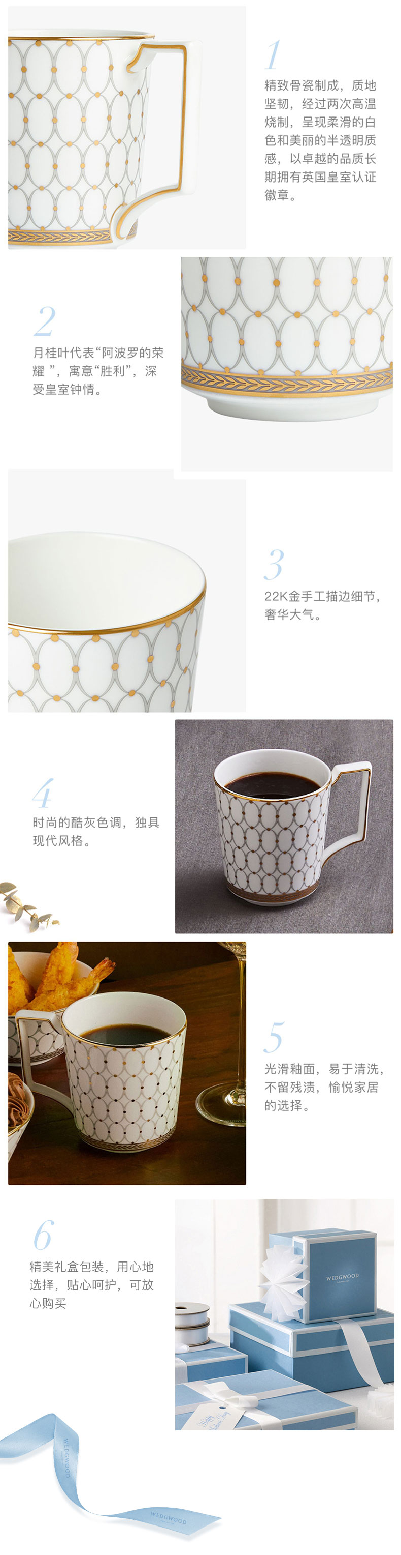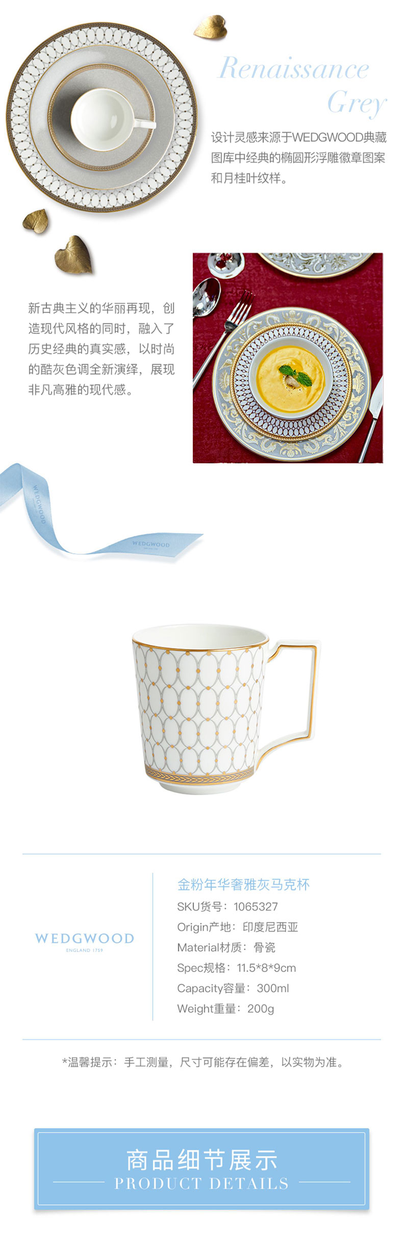 WEDGWOOD 威基伍德金粉年华奢雅灰马克杯 1065327 300ml*1 灰色(单位:个)