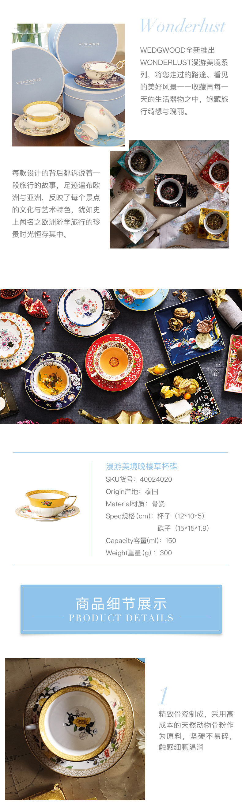 WEDGWOOD 威基伍德漫游美境晚樱草花茶杯碟组 40024020 150ml*1 橙色(单位:套)