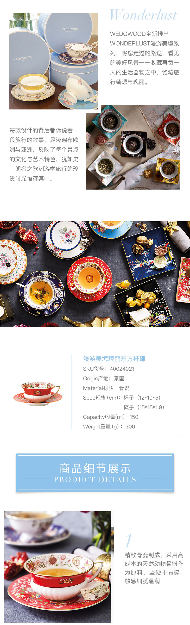 WEDGWOOD 威基伍德漫游美境瑰丽东方花茶杯碟 40024021 150ml*1 红色(单位:套 )