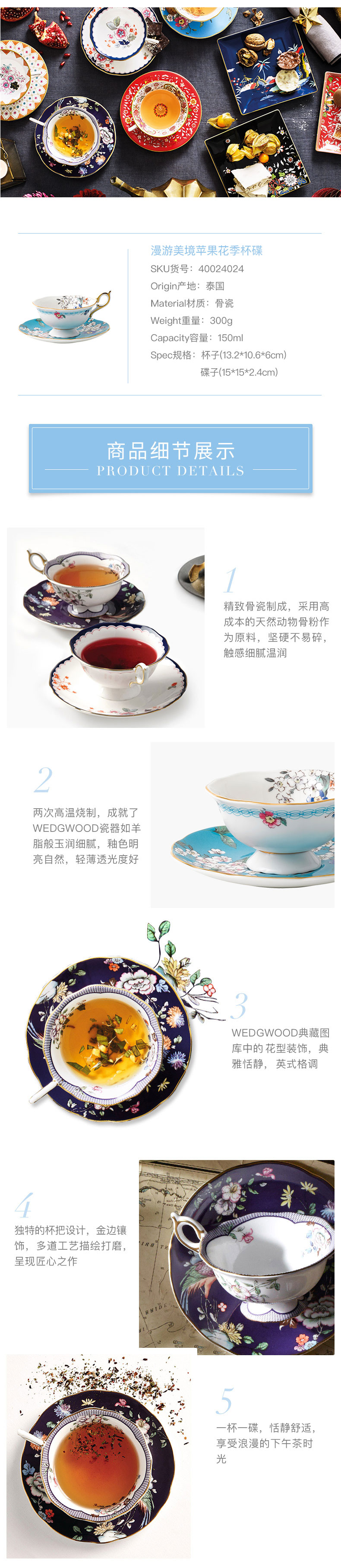 WEDGWOOD 威基伍德漫游美境苹果花季花茶杯碟组 40024024 150ml*1 水蓝色(单位:套)