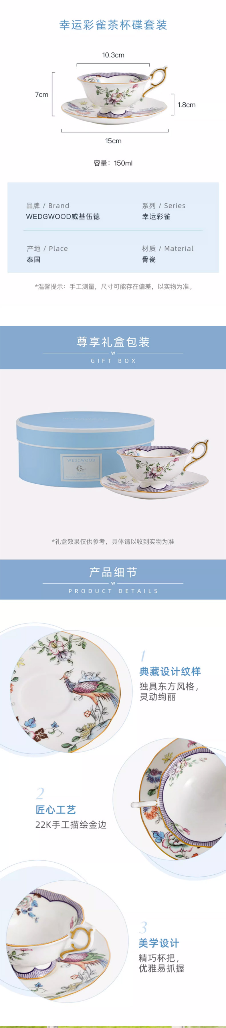 WEDGWOOD 威基伍德 幸运彩雀茶杯碟套装 1069365 150ML 彩雀(单位:套)