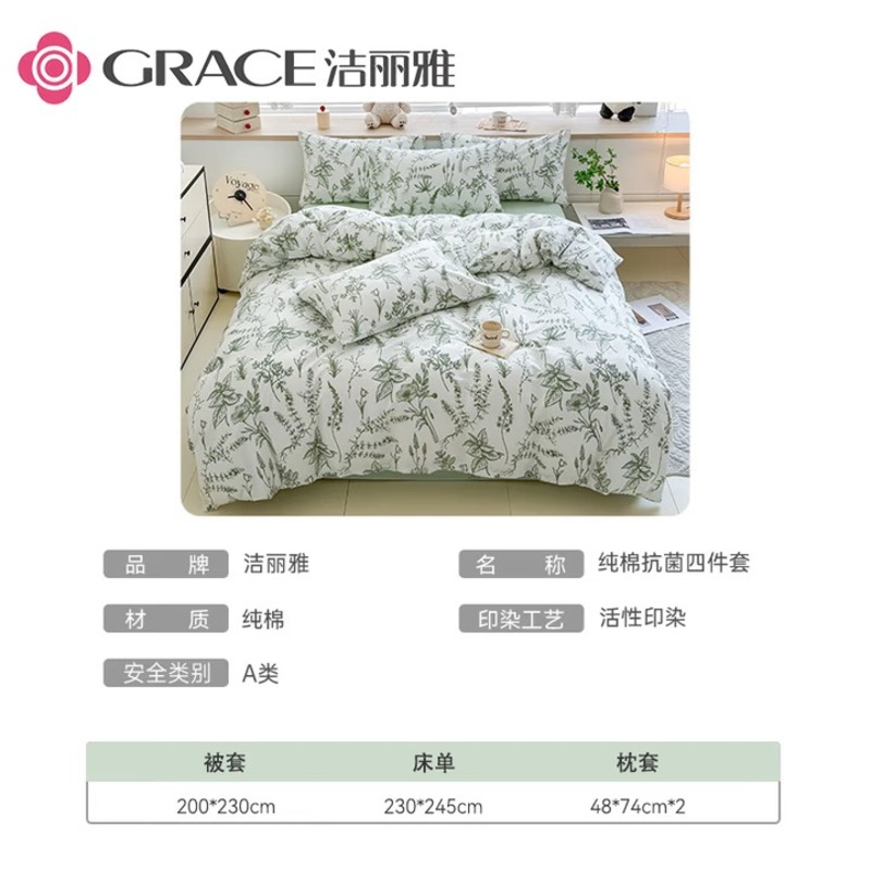 洁丽雅(Grace) 如茉纯棉四件套 CP1395 商品尺寸被套:200*230cm 混色(单位:套)