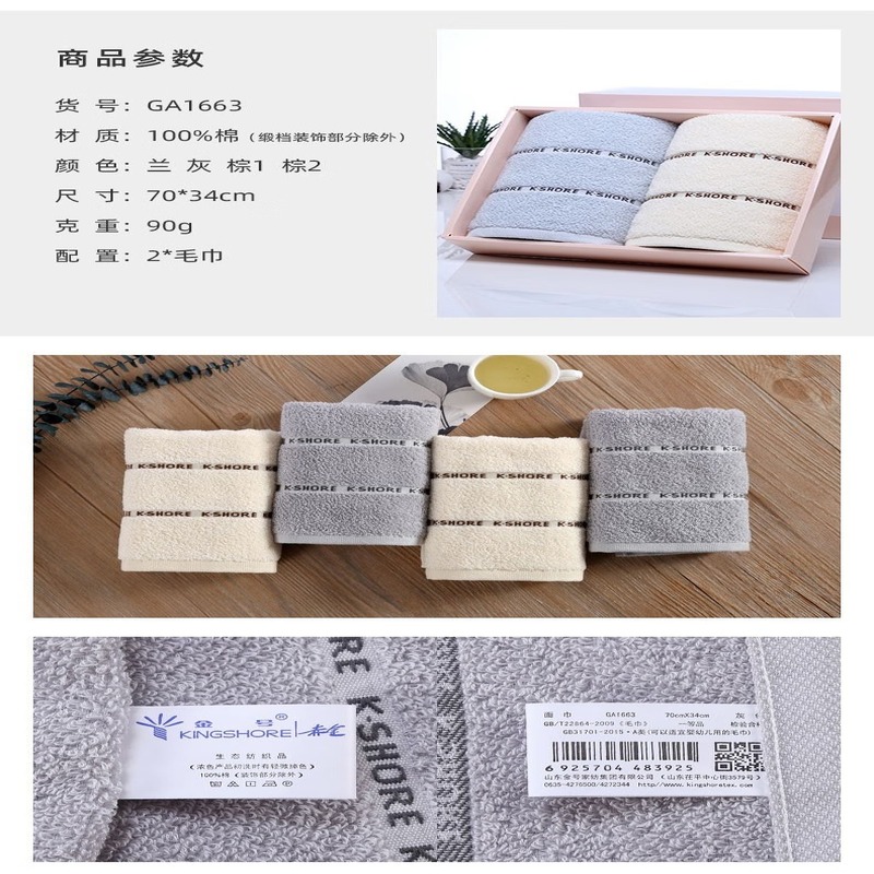 金号(KING SHORE) 纯棉柔软吸水大毛巾礼盒 GA1663 70*34cm/条*2 混色(单位:盒)