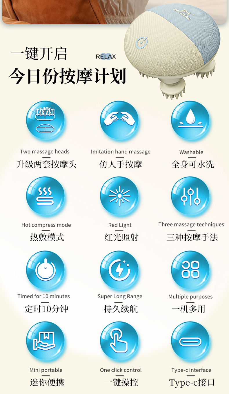 和正(HEZHENG) 头部按摩器 洗头干湿两用 HZ-HEAD-7 产品净重:≈200g 蓝色(单位:个)