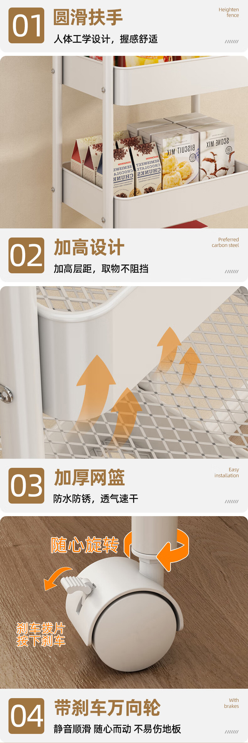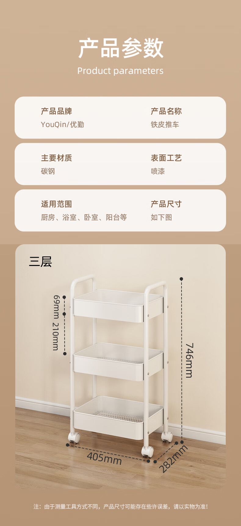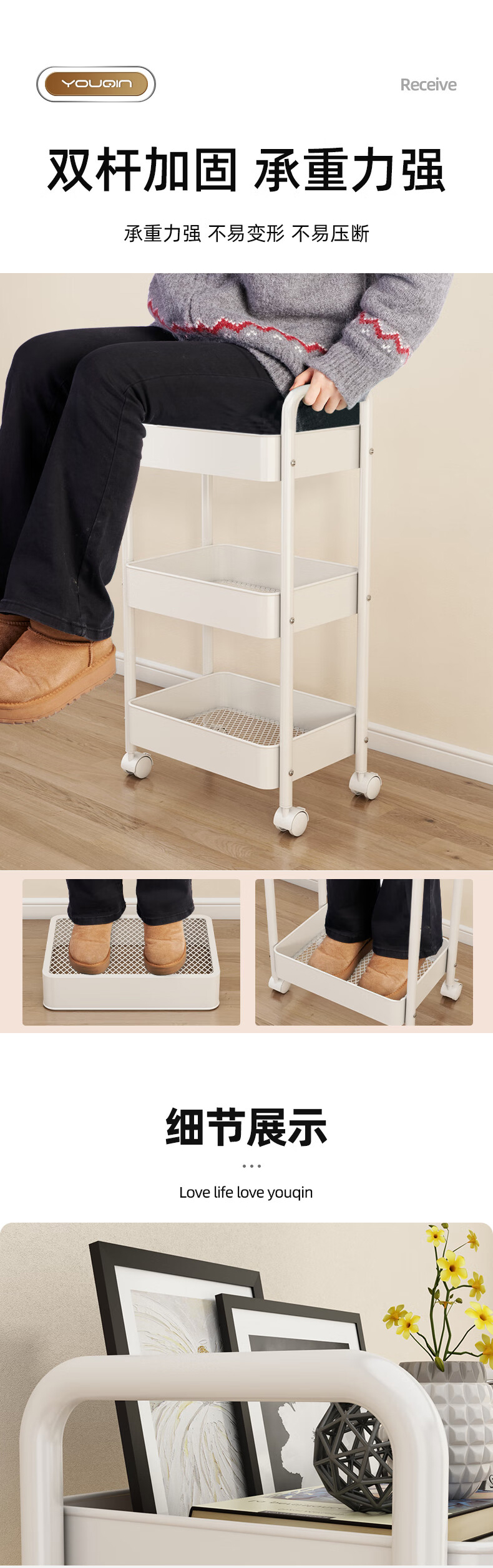 优勤(YOUQIN) 铁皮推车螺丝款 278-8 40.5*28.2*74.6cm/3层 白色(单位:个)