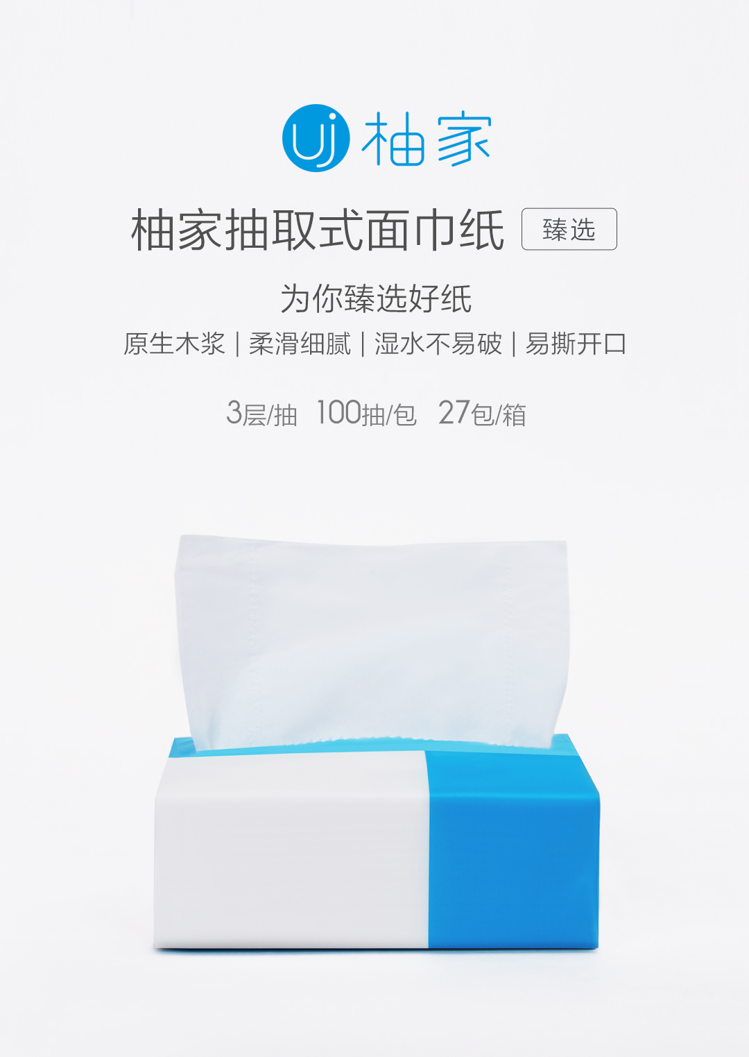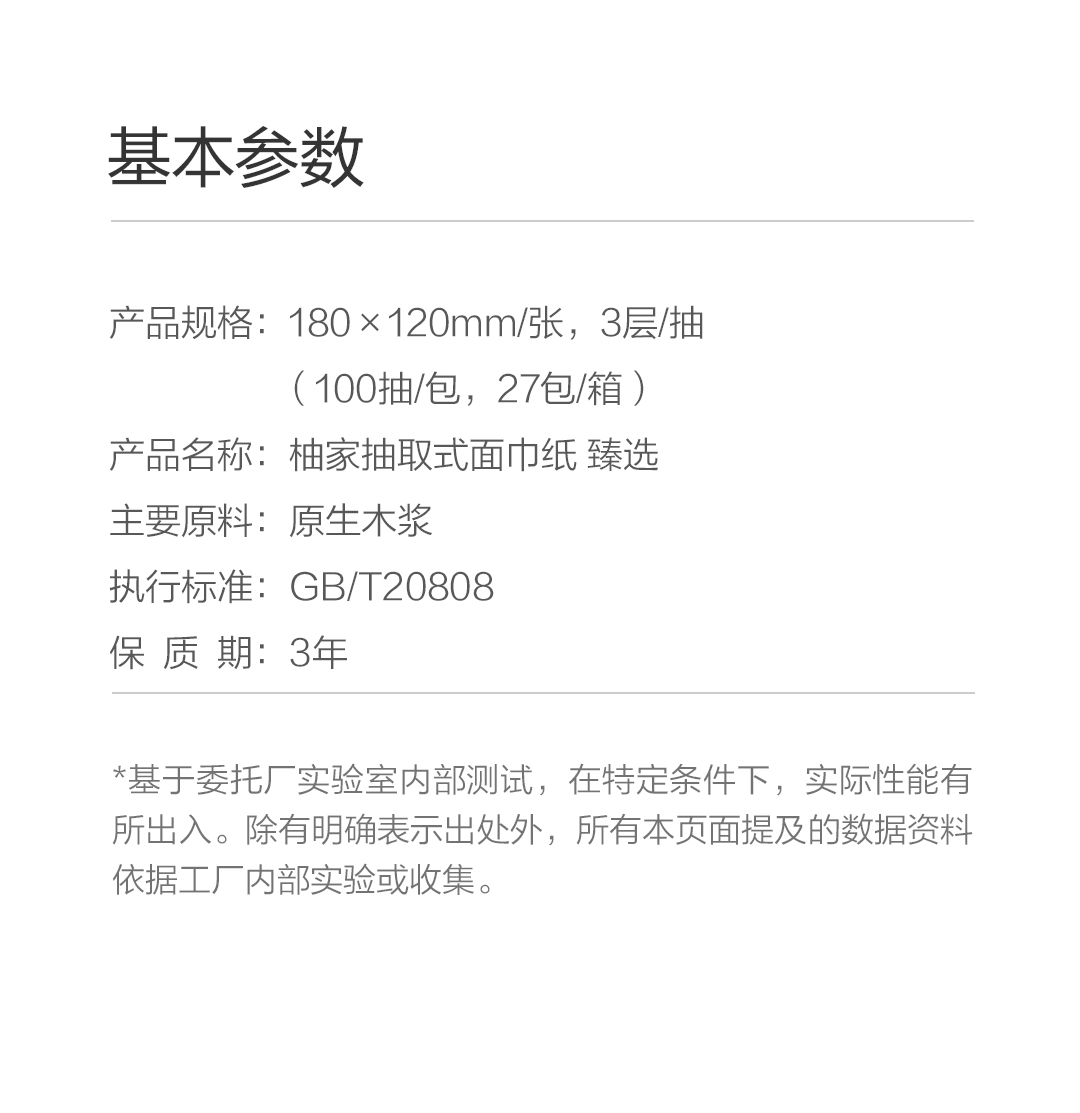 柚家 抽纸(臻选版)3层100抽 66427 1箱27包 白色(单位:箱)