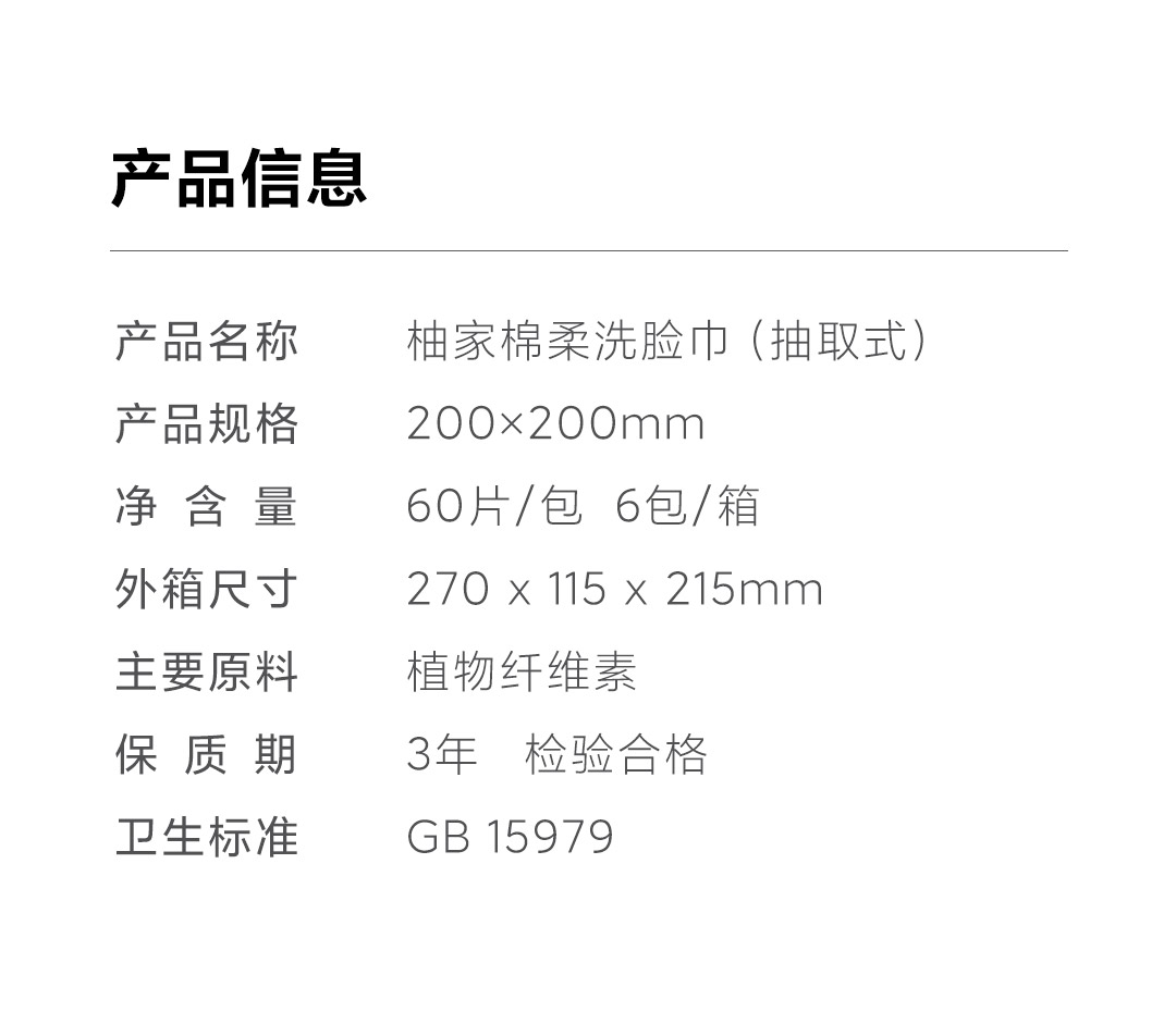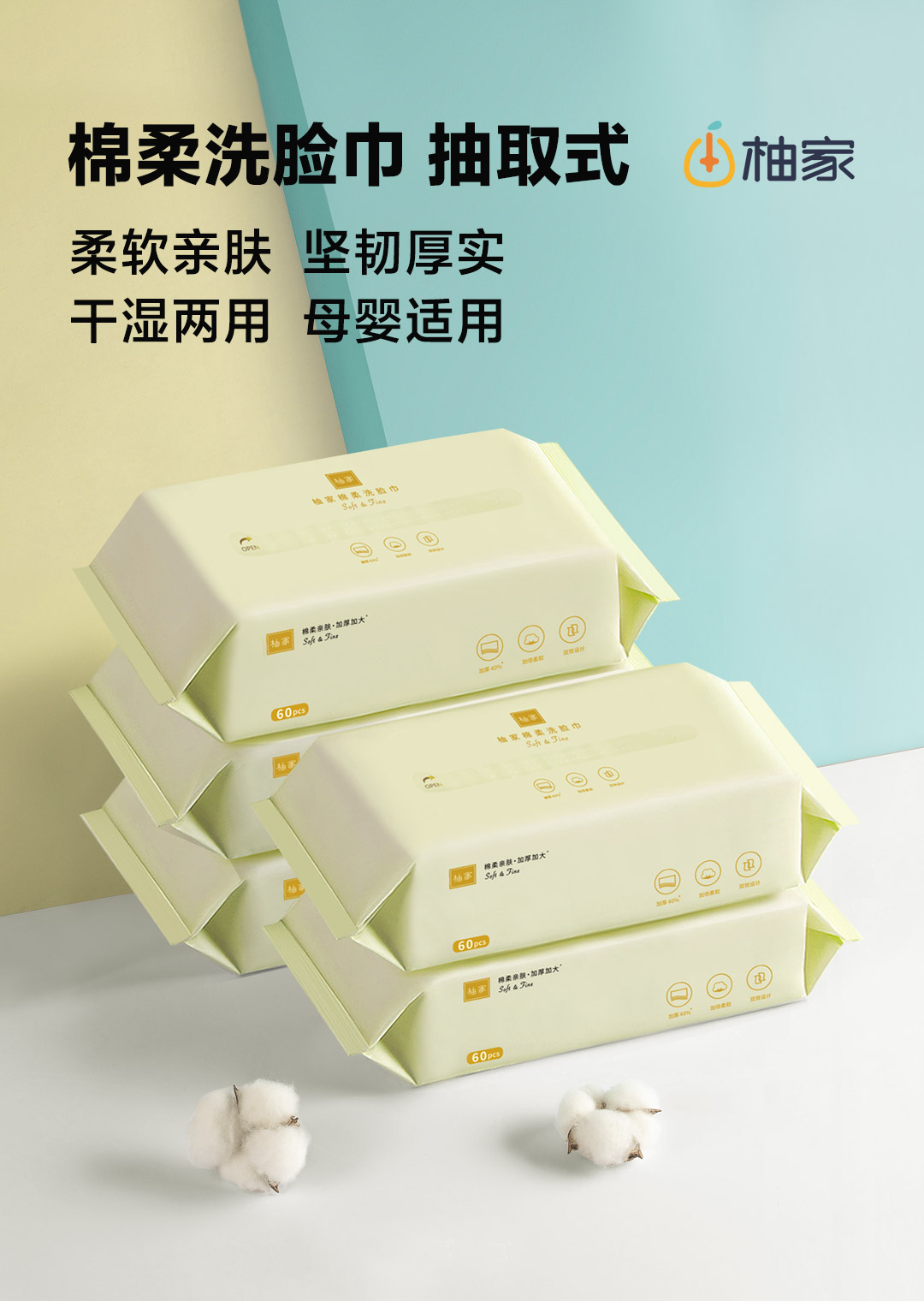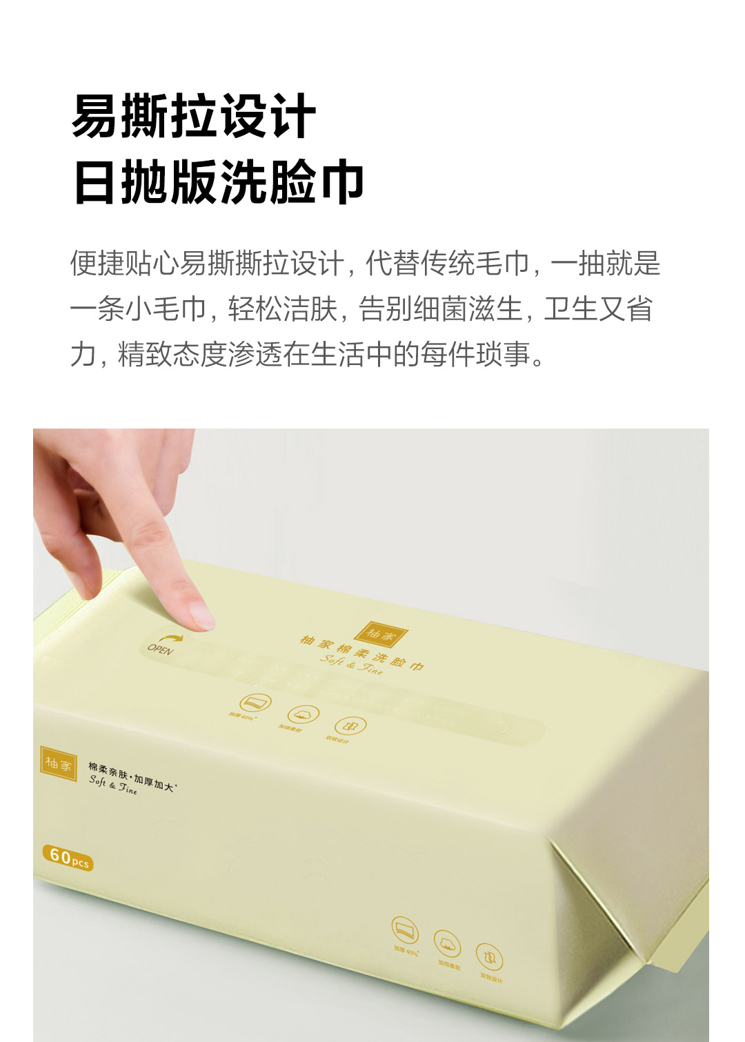 柚家 抽取式棉柔洗脸巾 302975 6包装 白色(单位:箱)