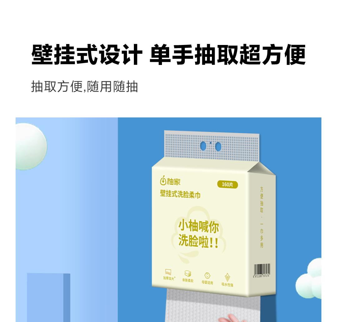 柚家 壁挂式洗脸柔巾 302899-3 3提装 白色(单位:提)