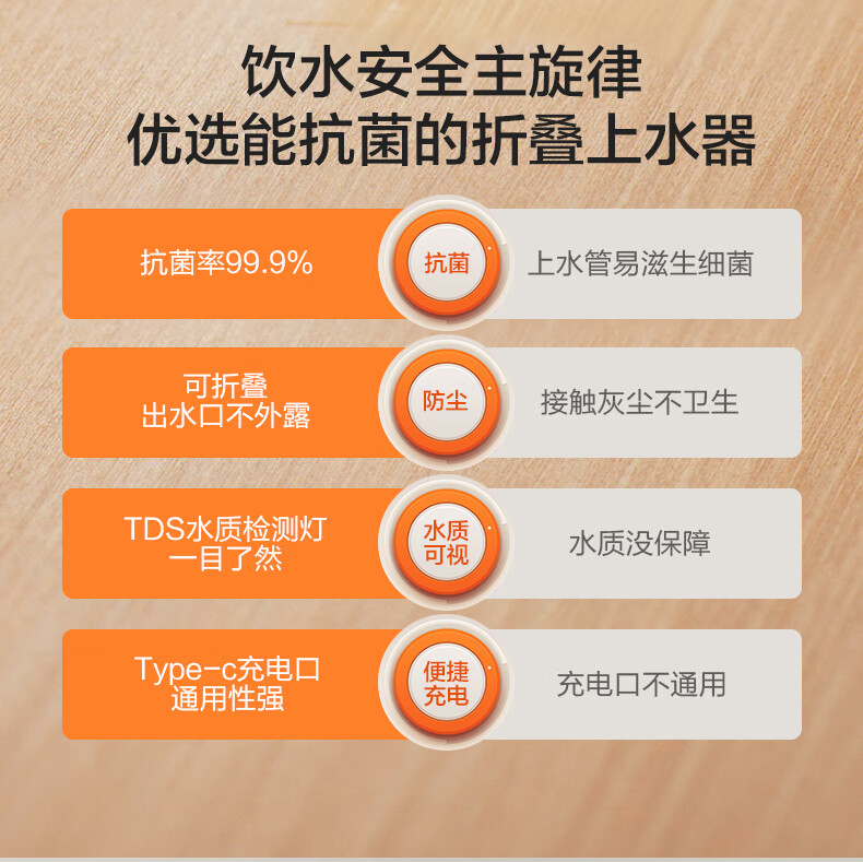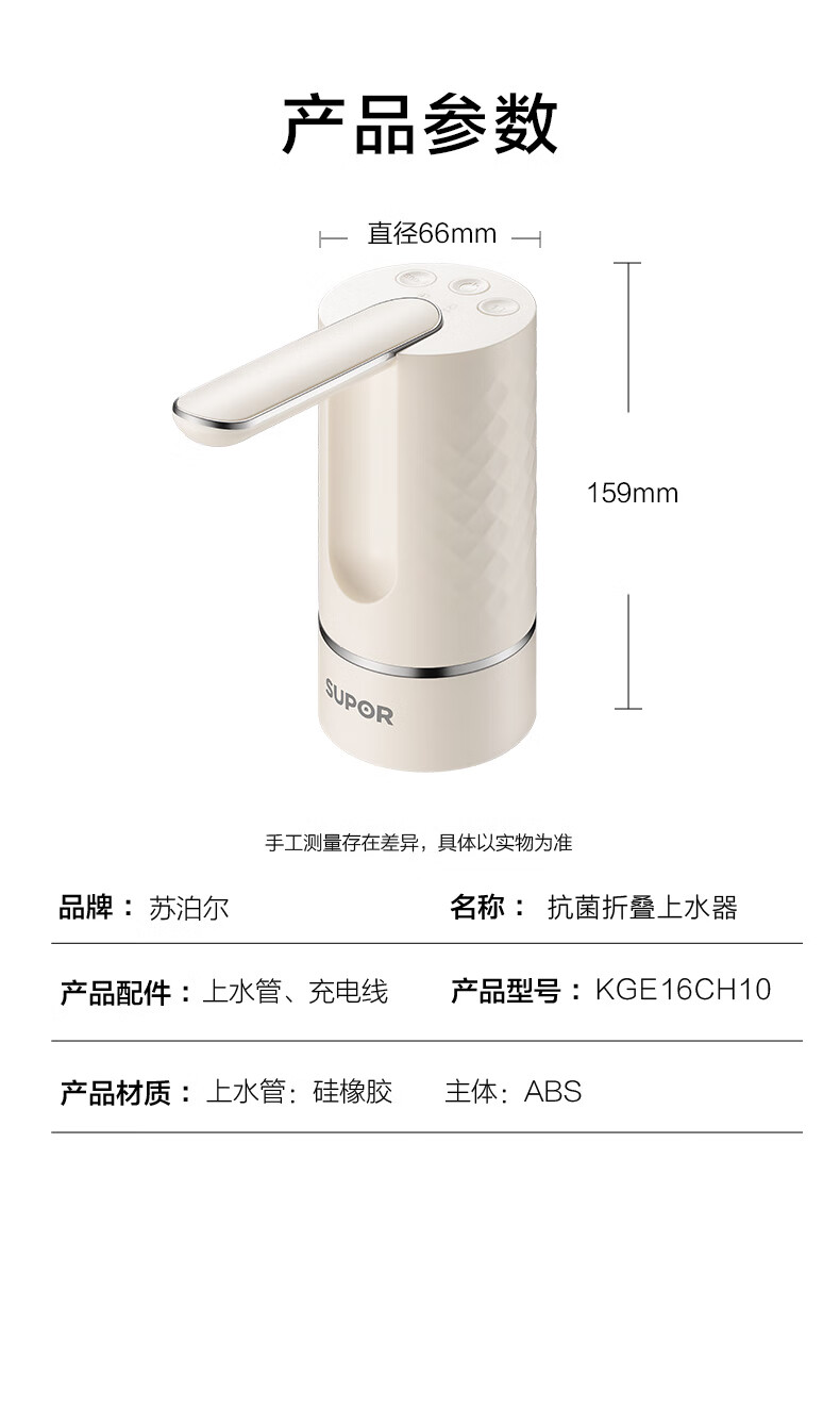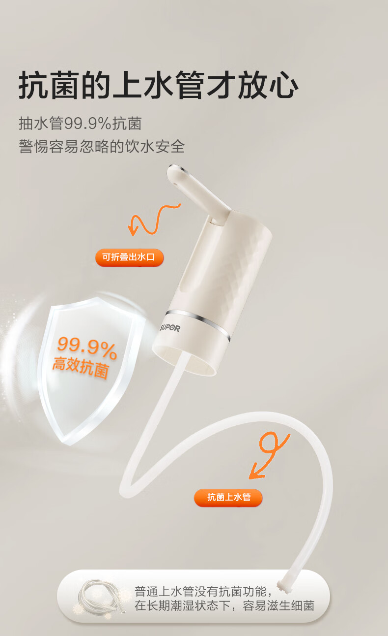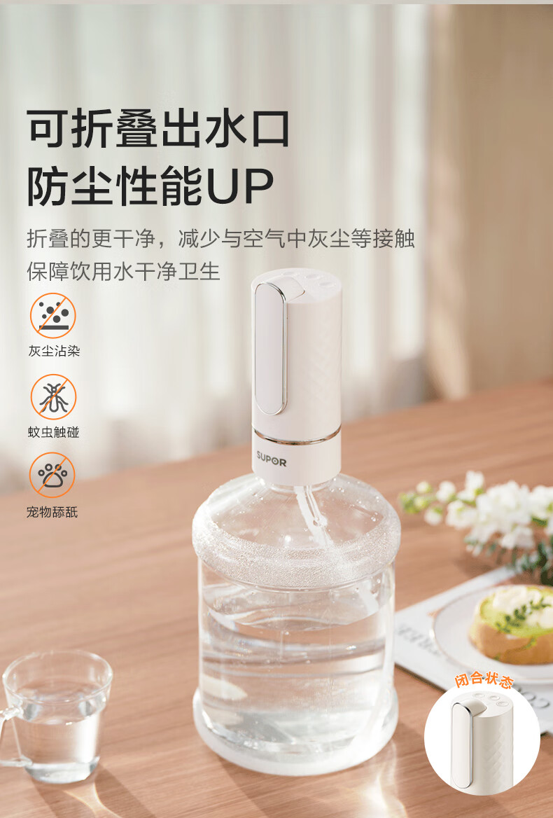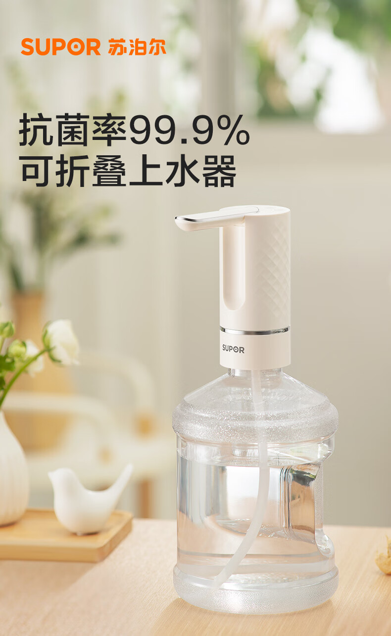 苏泊尔(SUPOR) 桶装水抗菌折叠上水器 KGE16CH10 12000mAh 米黄色(单位:个)