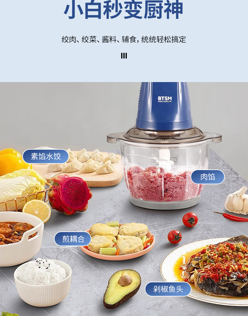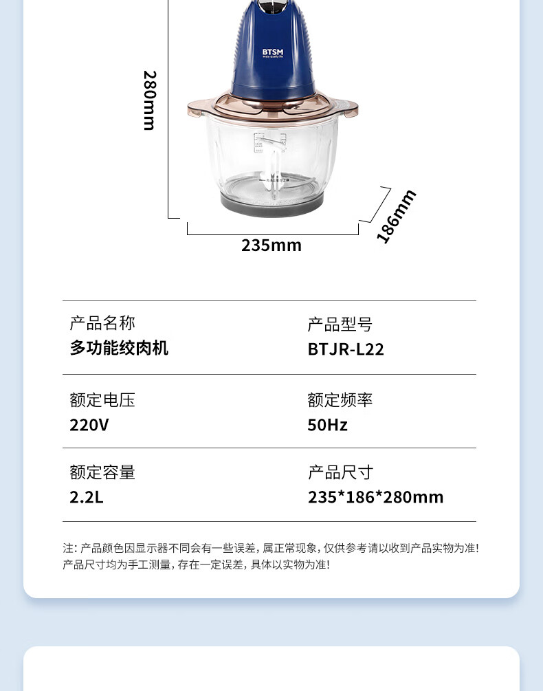 BTSM 多功能绞肉机 BTJR-L22 2.2L 蓝色(单位:台)