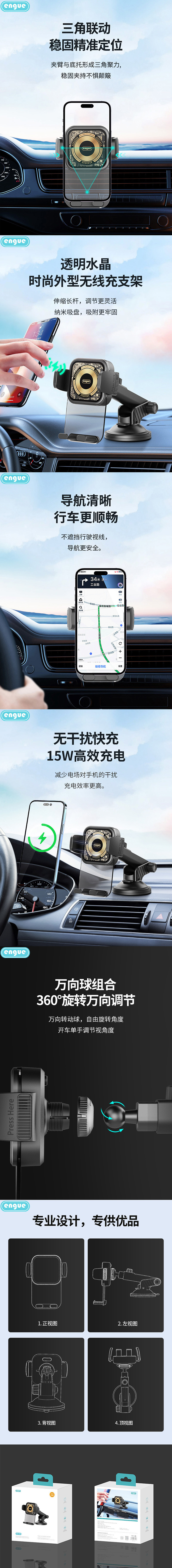 恩谷(ENGUE) 车载水晶无线充手机支架 EG-C05 80*175*117 mm 黑色(单位:个)