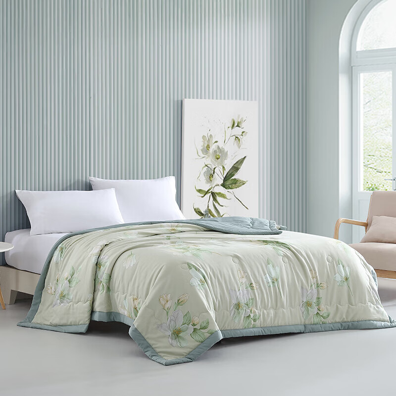 博洋宝贝(Beyond Kids) 可水洗亲肤七孔夏凉被 BYXW221-300步生青莲 150*200cm 绿色(单位:床)