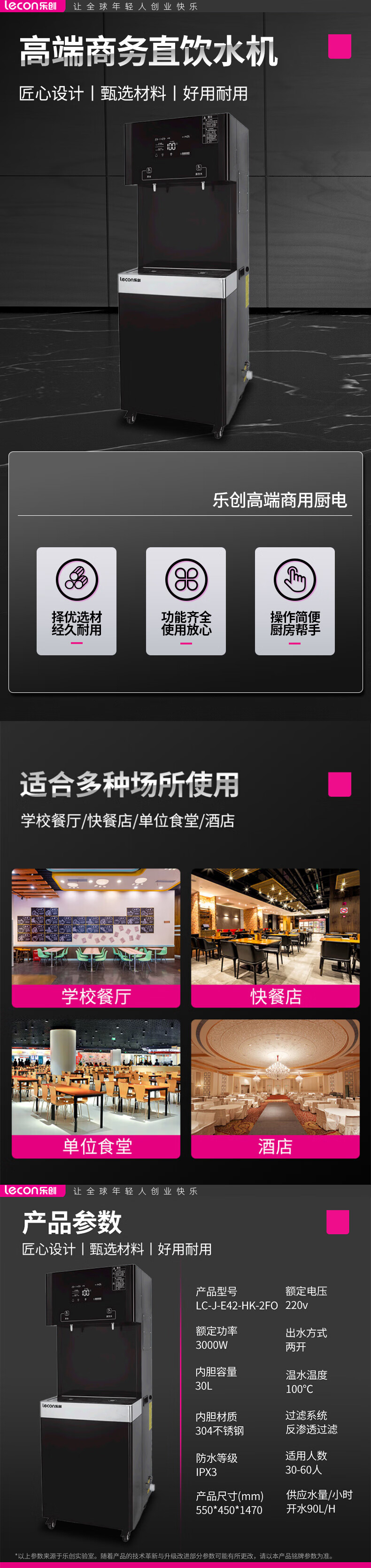 乐创(lecon) 乐创直饮水机 商用饮水机 LC-J-E42-HK-2FO 550*450*1470mm 曜石黑(单位:台)