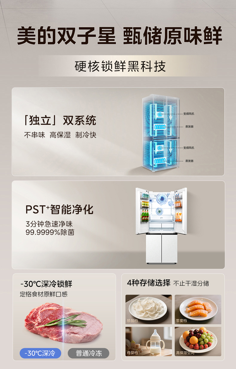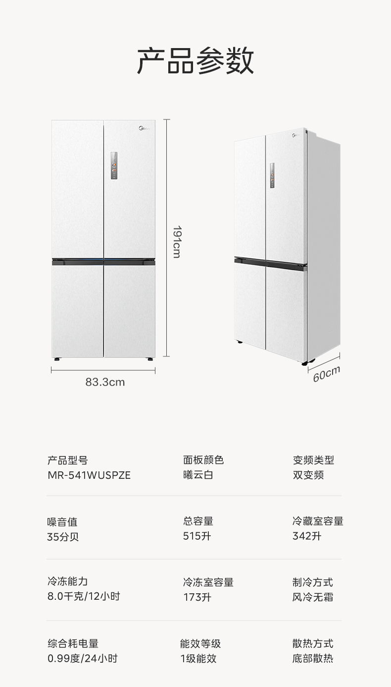 美的(Midea) 冰箱 MR-541WUSPZE 515L 曦云白(单位:台)