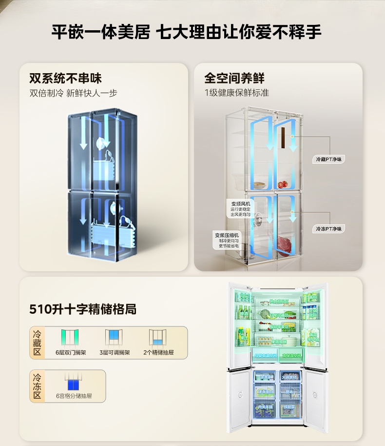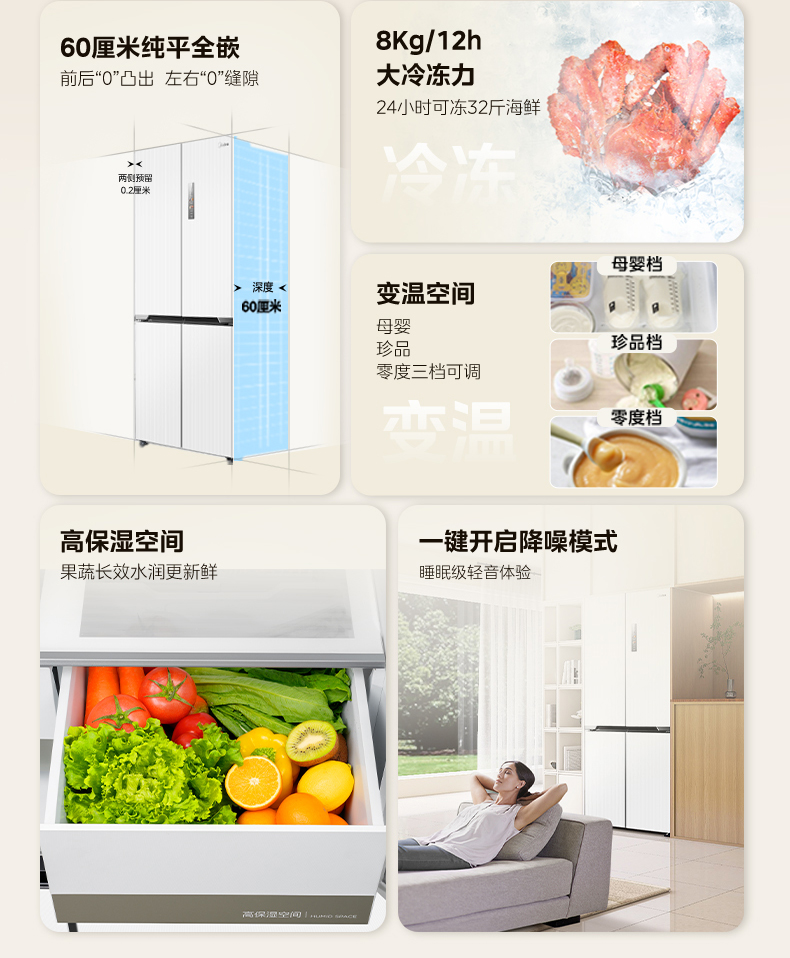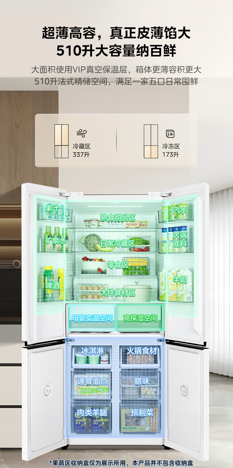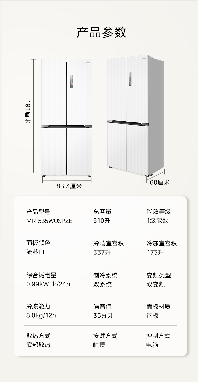美的(Midea) 冰箱 MR-535WUSPZE 510L 流苏白(单位:台)