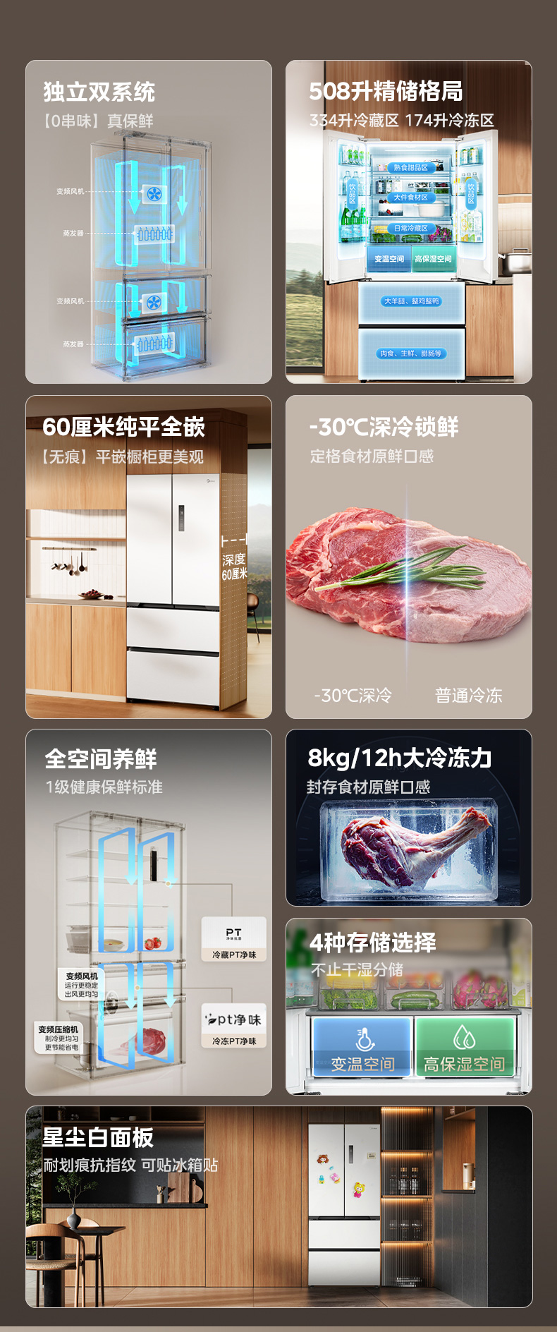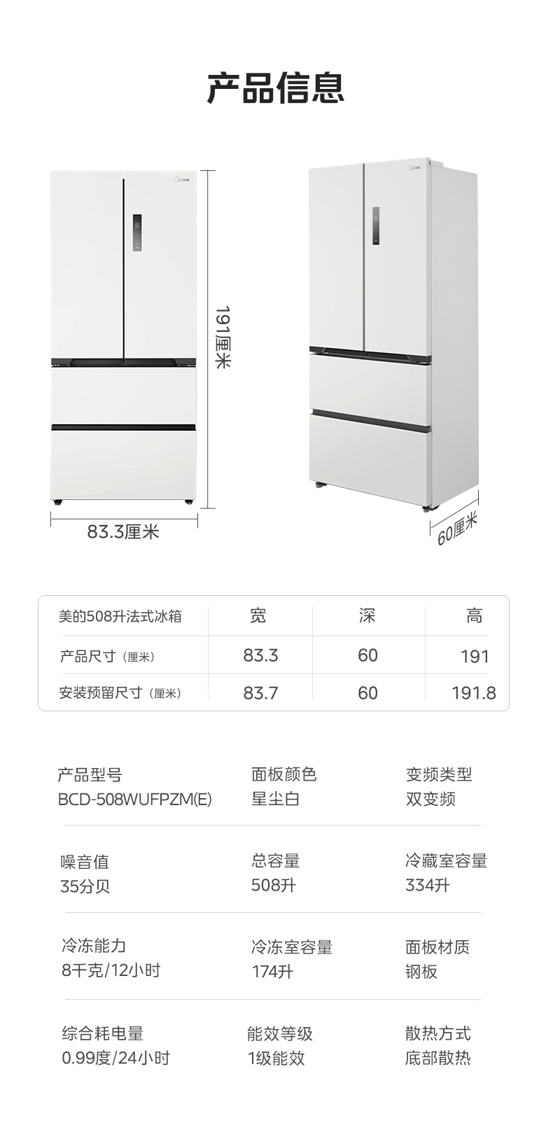 美的(Midea) 冰箱 BCD-508WUFPZM(E) 508L 尘白(单位:台)