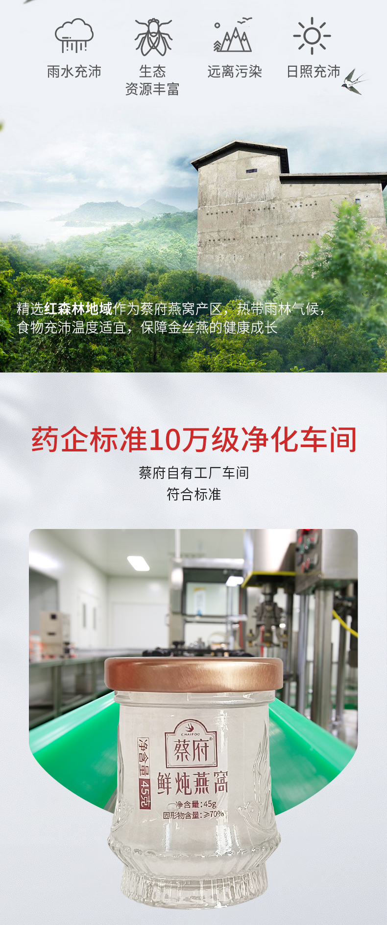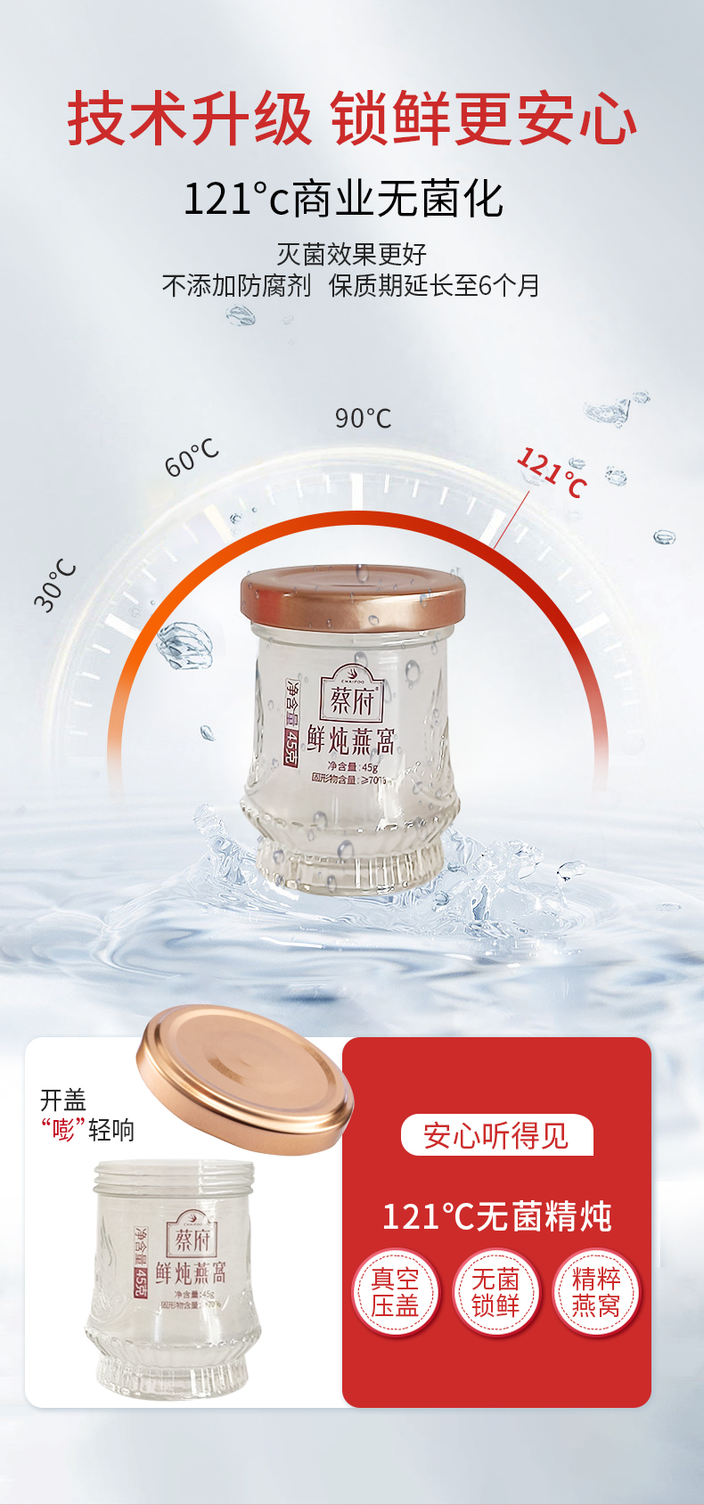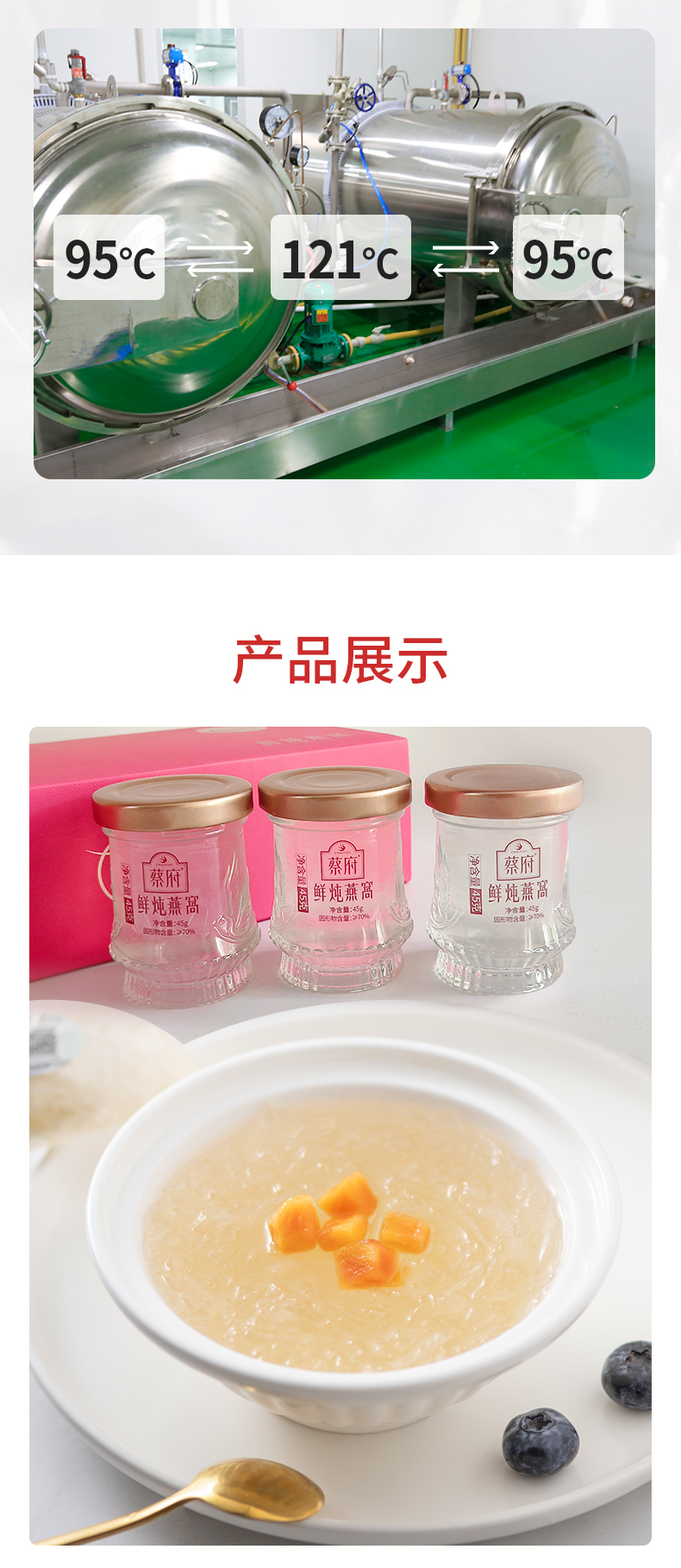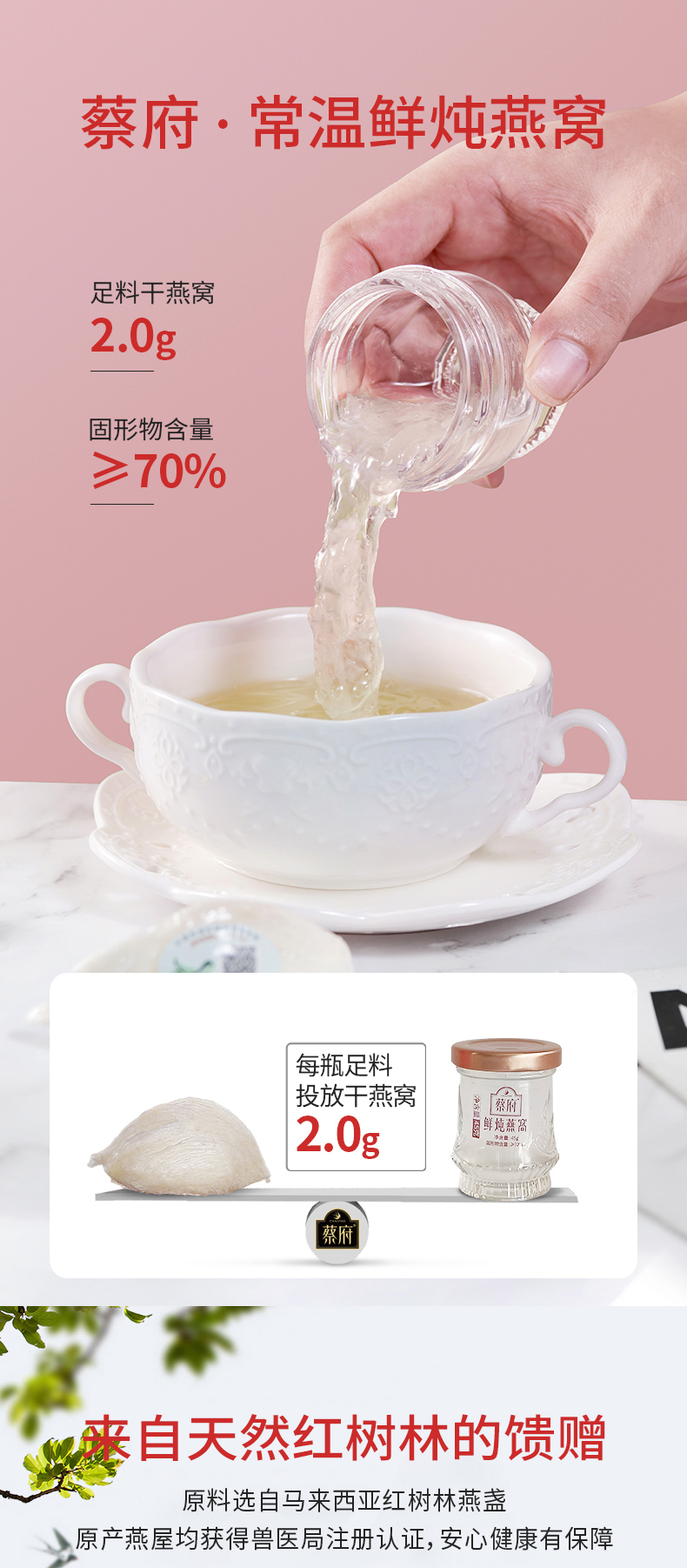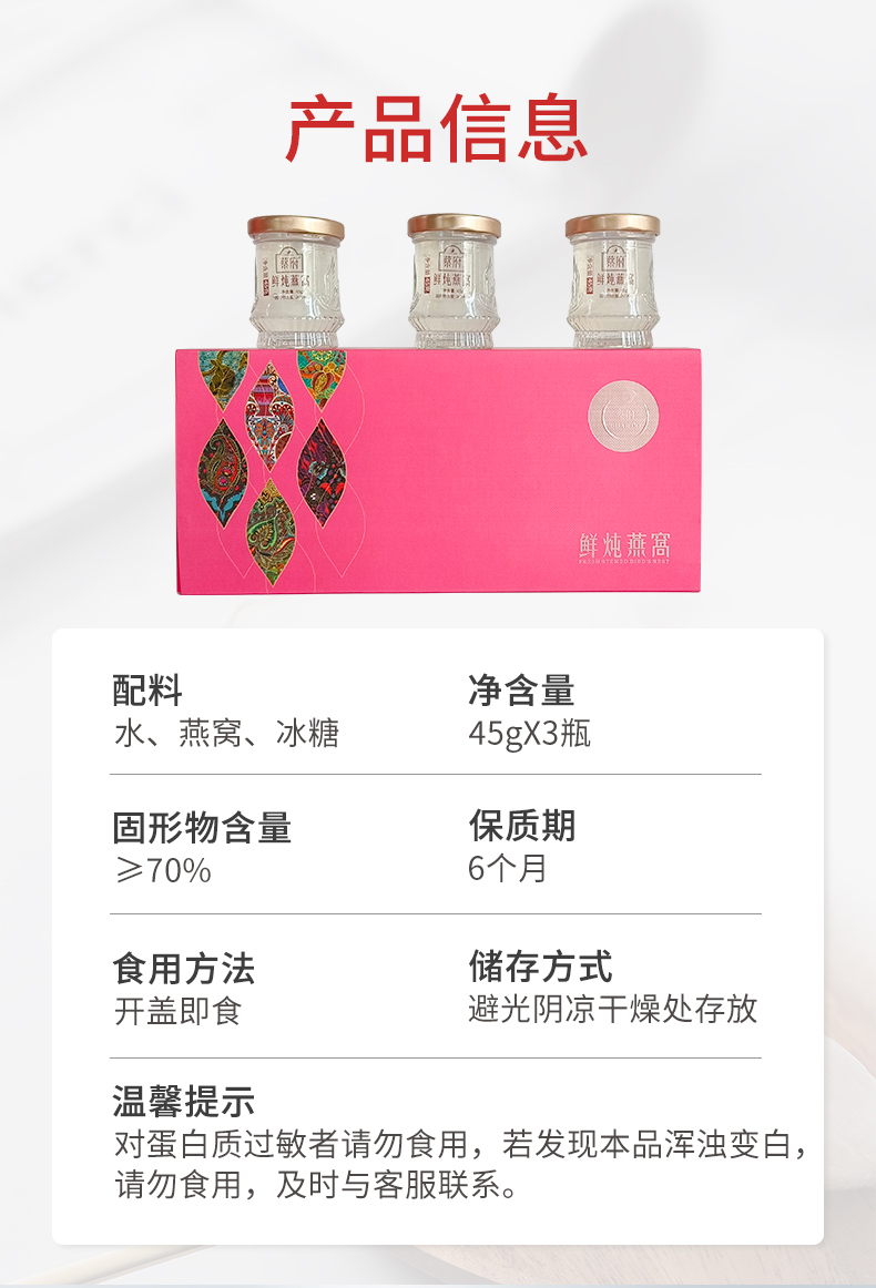 蔡府(CHAIFOO) 常温鲜炖滋补 即食燕窝 135g(45g*3瓶) 红色(单位:盒)