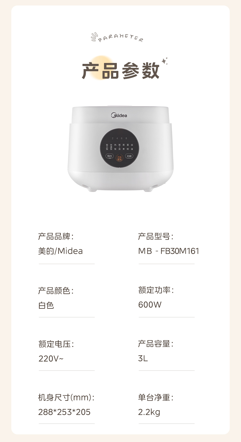 美的(Midea) 电饭煲 MB-FB30M161 容量3L 白色(单位:台)