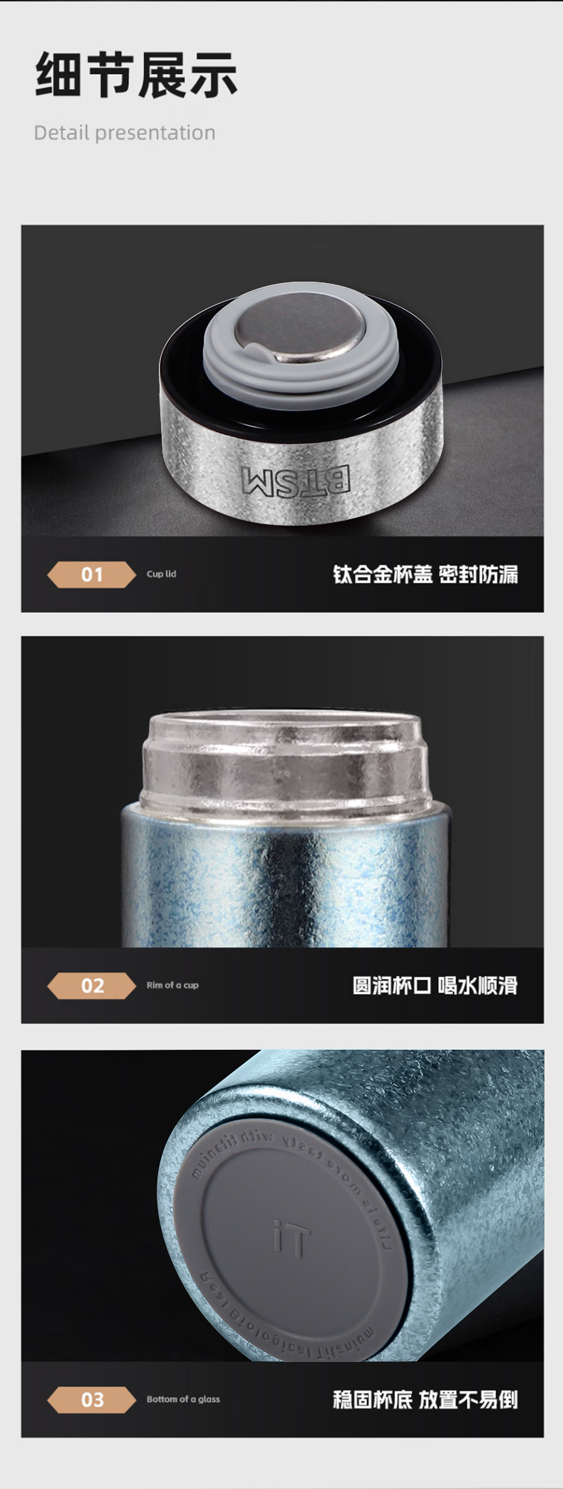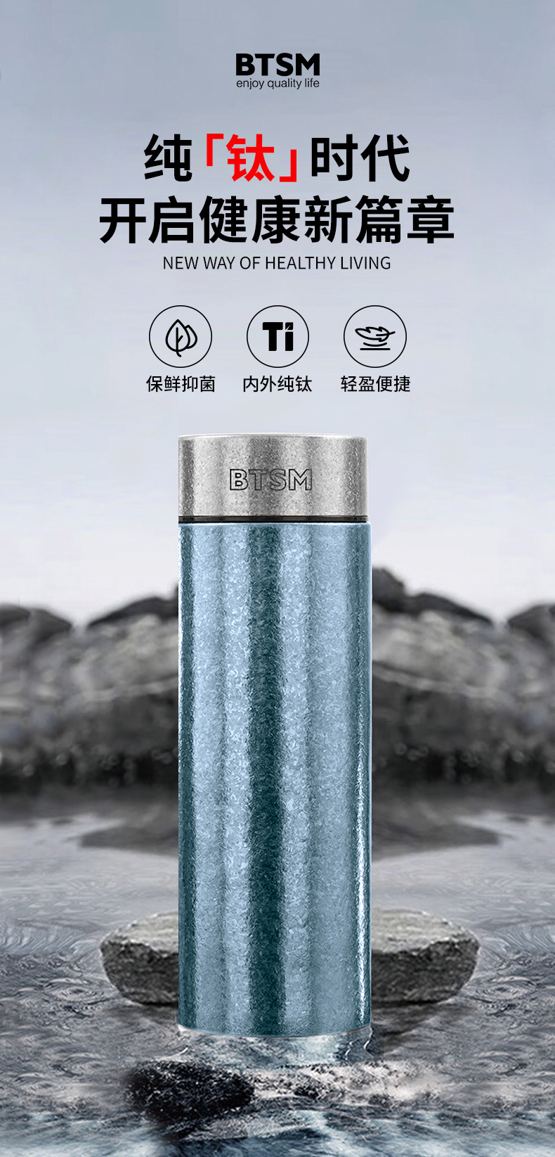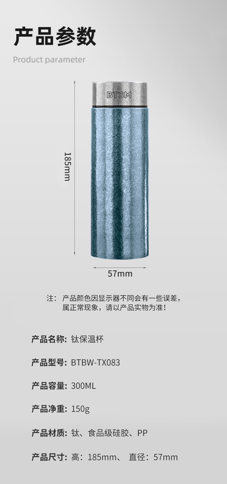 BTSM 钛保温杯小冰花 BTBW-TX083 300ml 蓝色(单位:个)