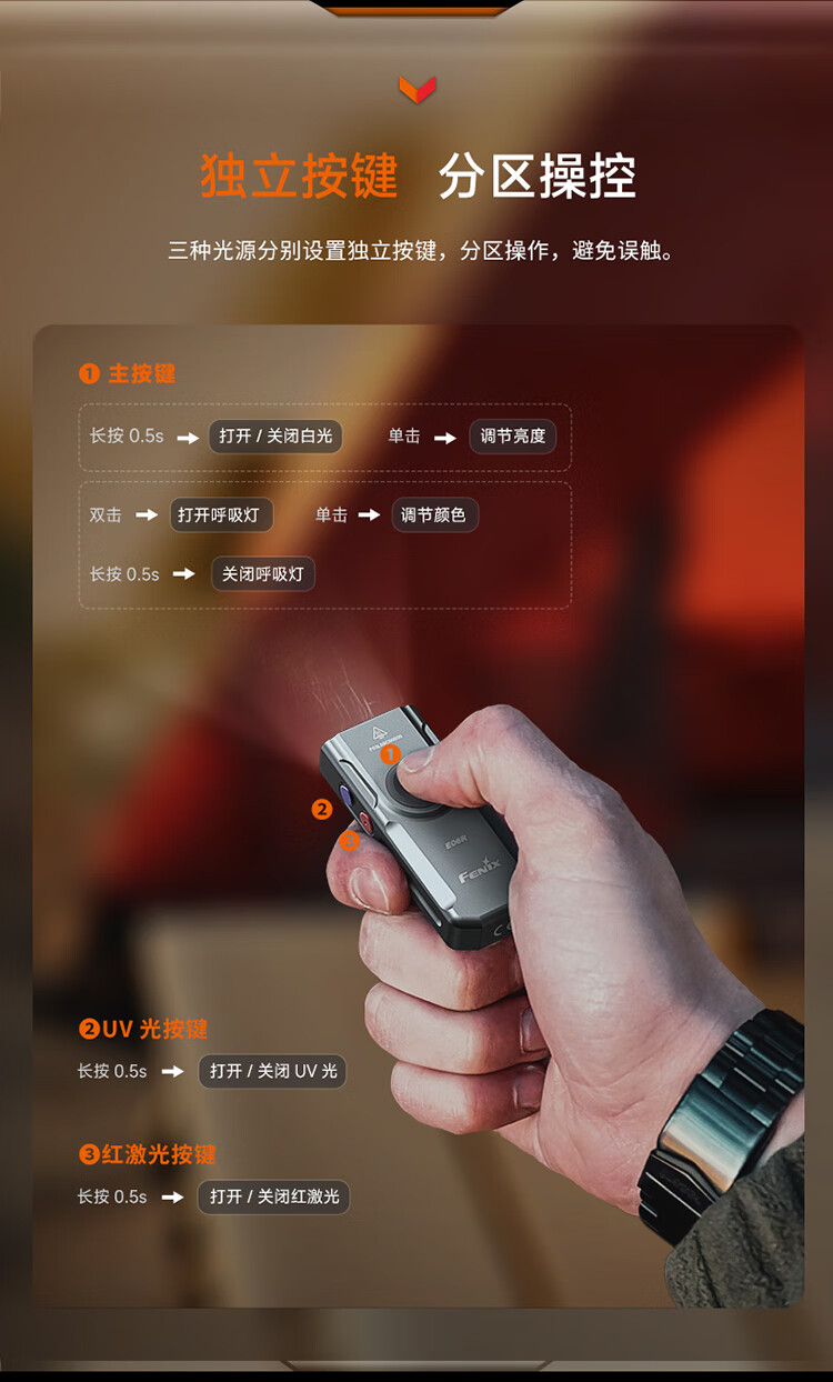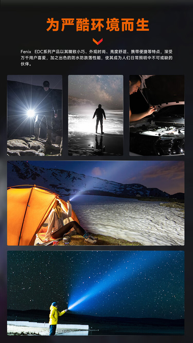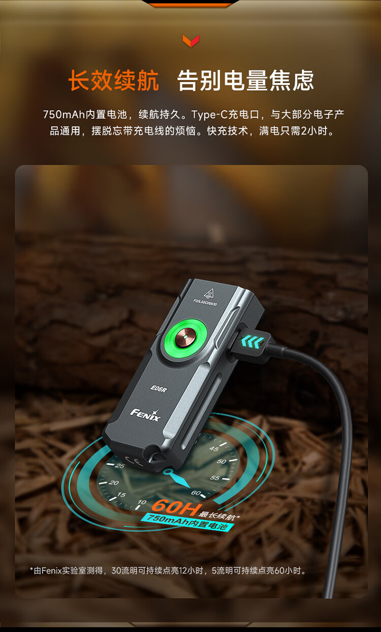 FENIX 强光钥匙扣手电筒多彩呼吸灯金属多光源手电 E06R 69*29*16mm 军绿色(单位:支)